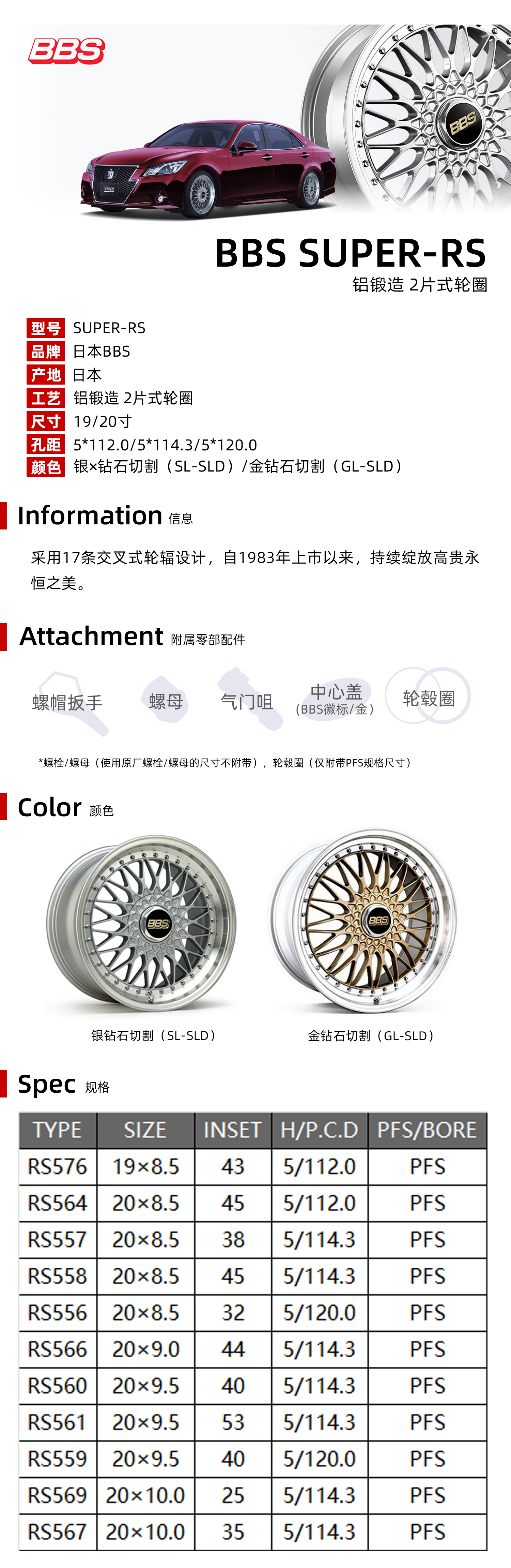 BBS SUPER-RS型号 两片式铝锻造轮圈 19/20寸 5*120/114.3/120