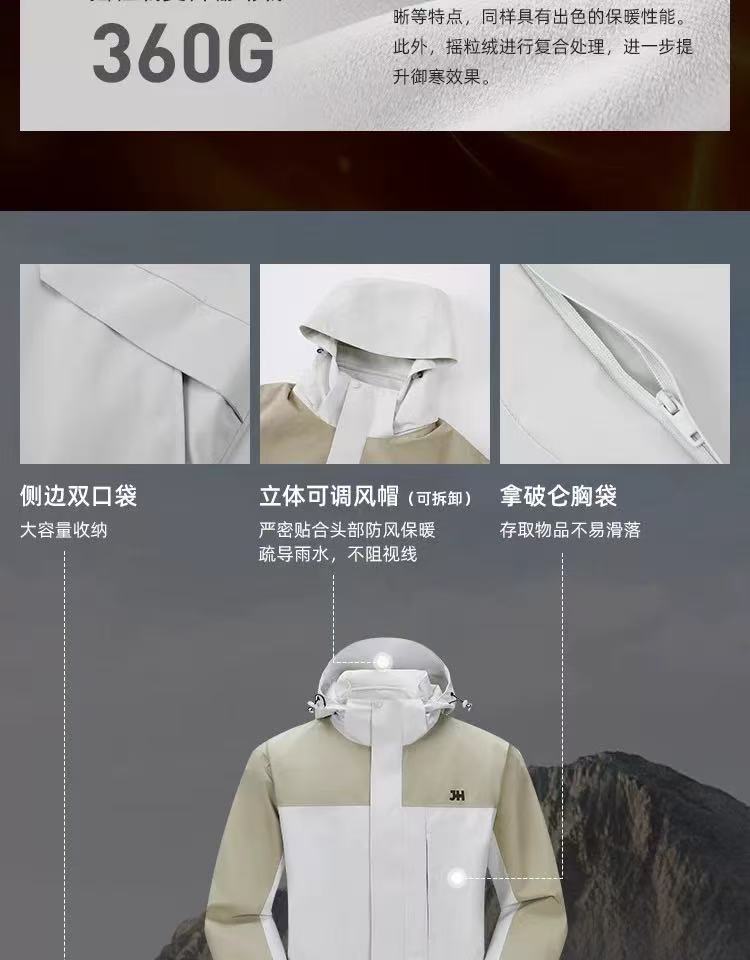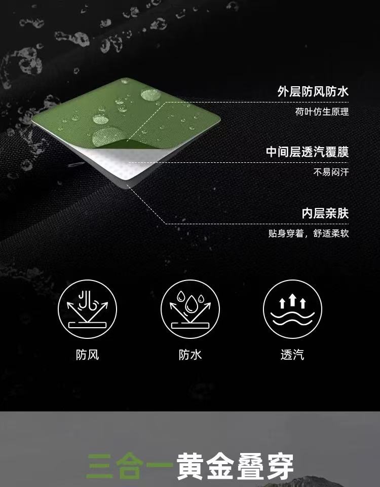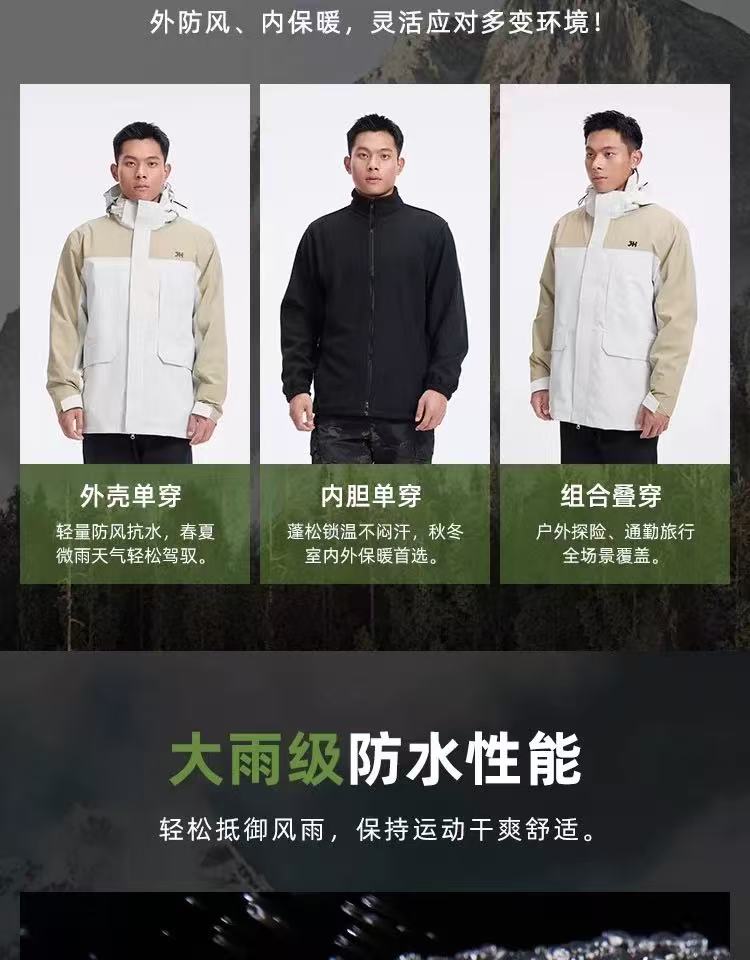 JH0XF244214 际华春秋新款可拆卸三合一冲锋衣男运动户外登山防风防水保暖外套