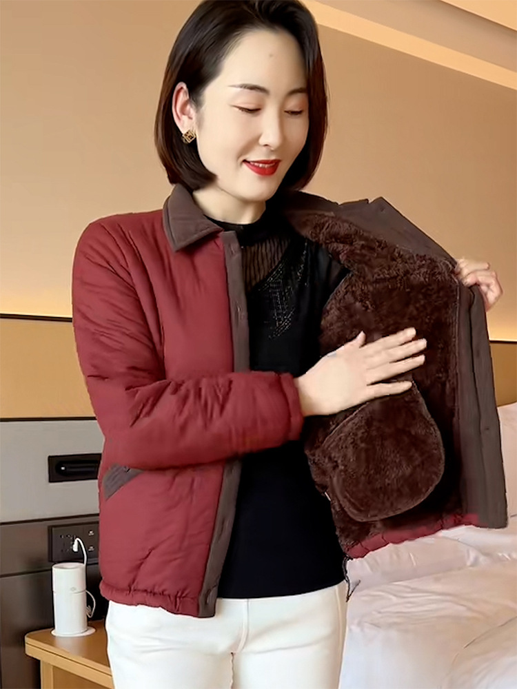 妈妈装冬季2024新款纯色休闲百搭棉服X时尚减龄加绒加厚短款外套