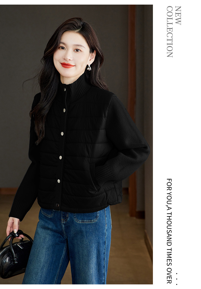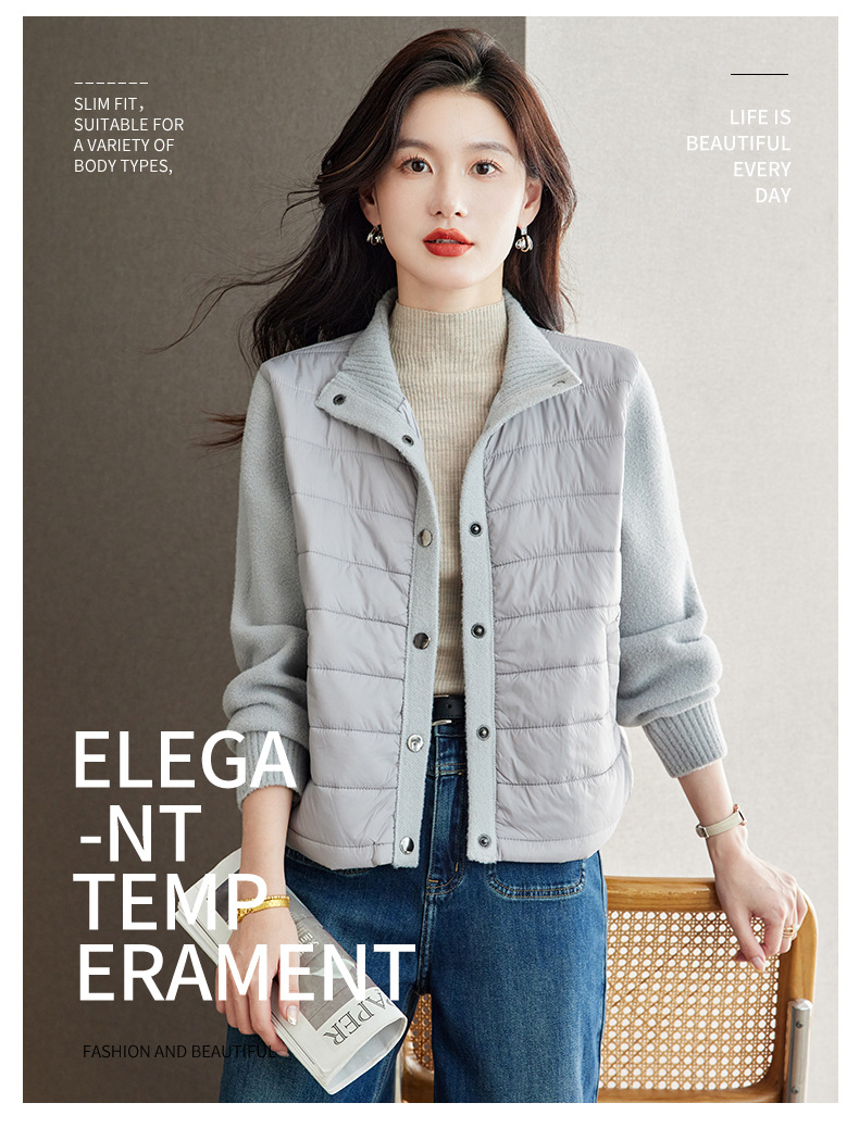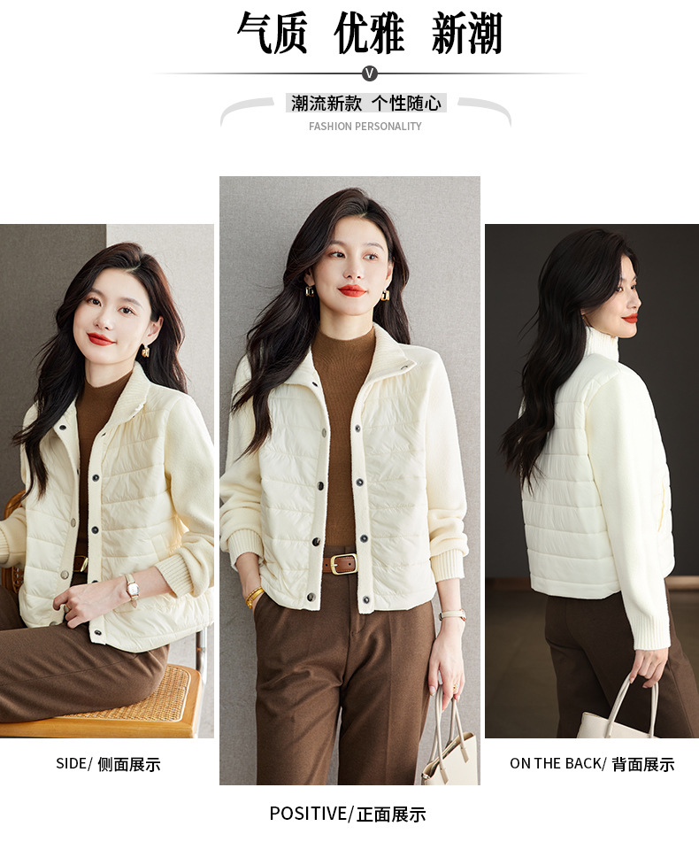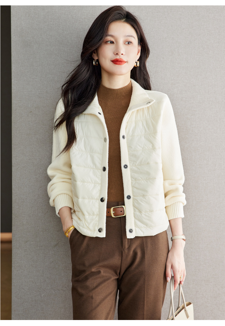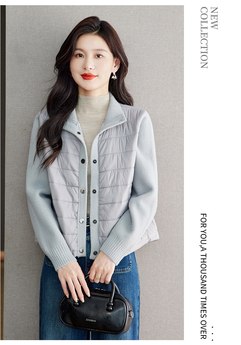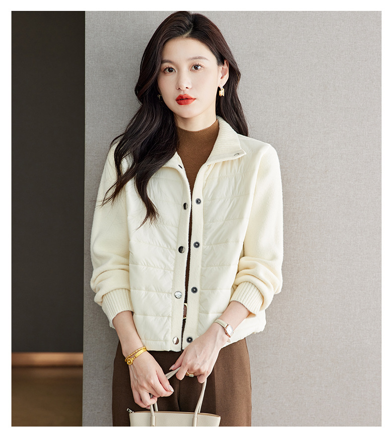 XFY-3128拼接外套女2025新款气质轻奢高级感上衣宽松休闲时尚毛呢开衫翻领
