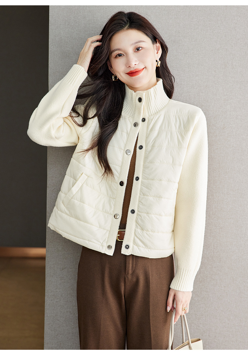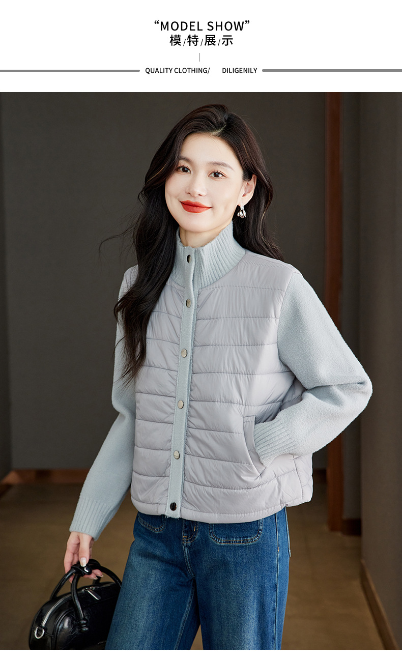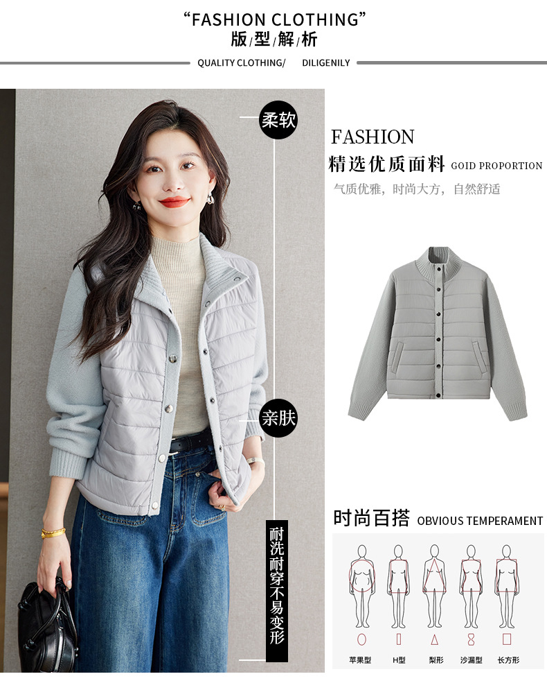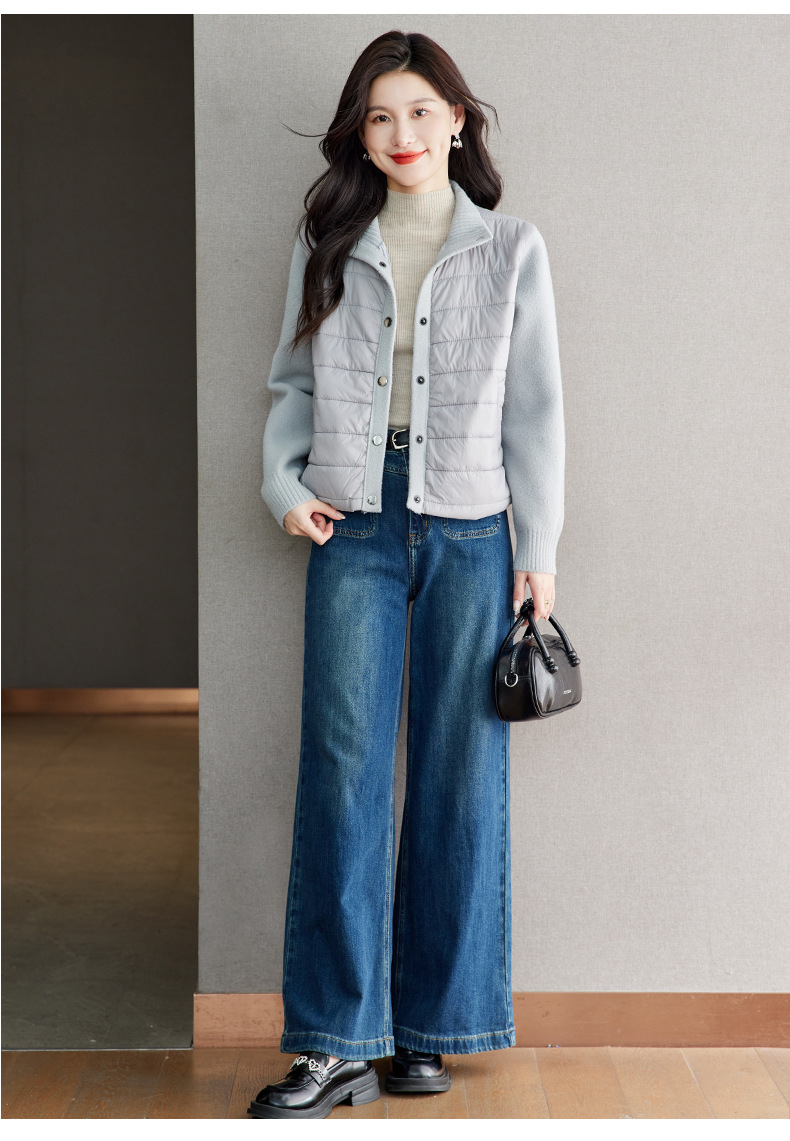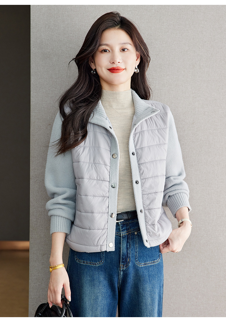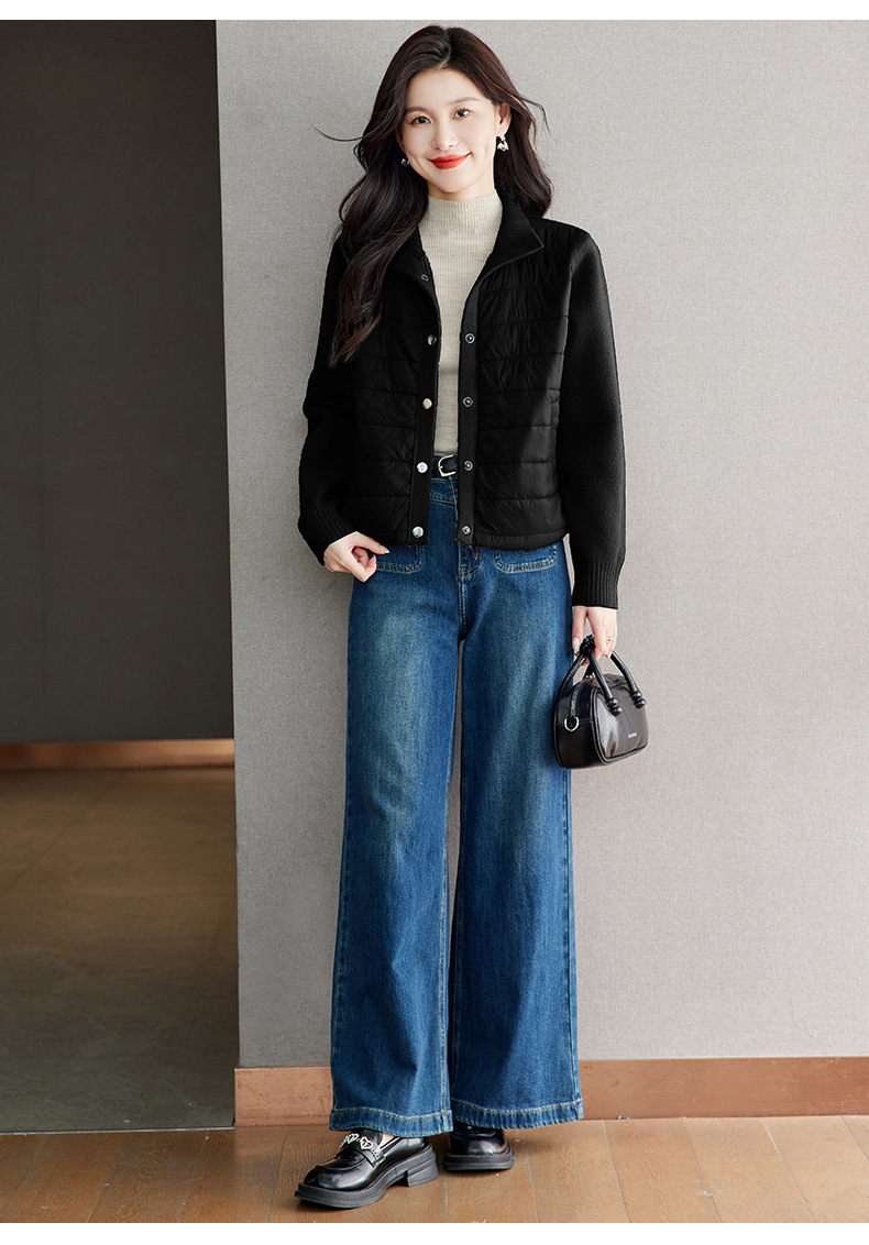 XFY-3128拼接外套女2025新款气质轻奢高级感上衣宽松休闲时尚毛呢开衫翻领
