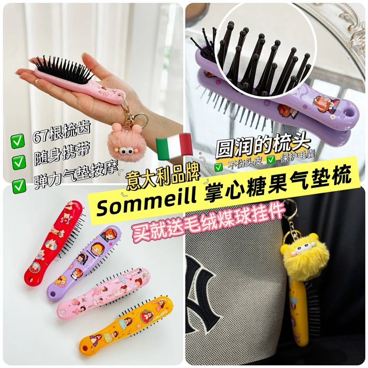 出口意大利 Sommeill⚠️绝版39.9❗️❗【原价19美刀💰的掌心糖果气垫梳】买就送萌萌毛绒煤球挂件!保证正品!每分钱都花在刀刃上❗️头皮SPA级享受!梳头=养发!可挂包包/钥匙!可爱又实用!