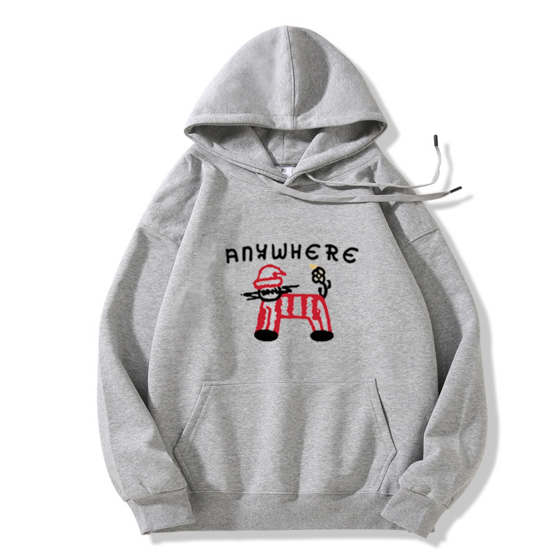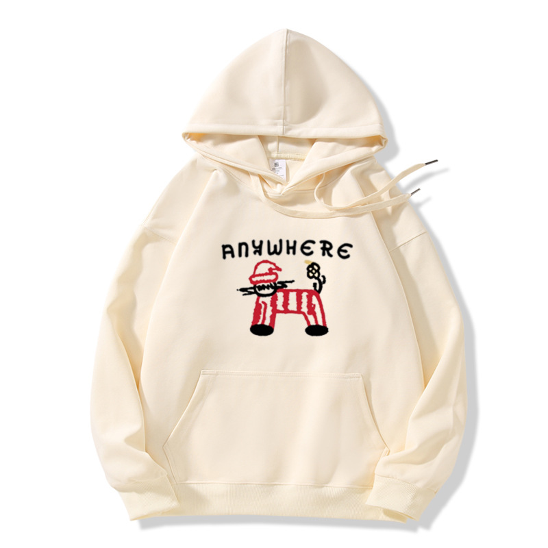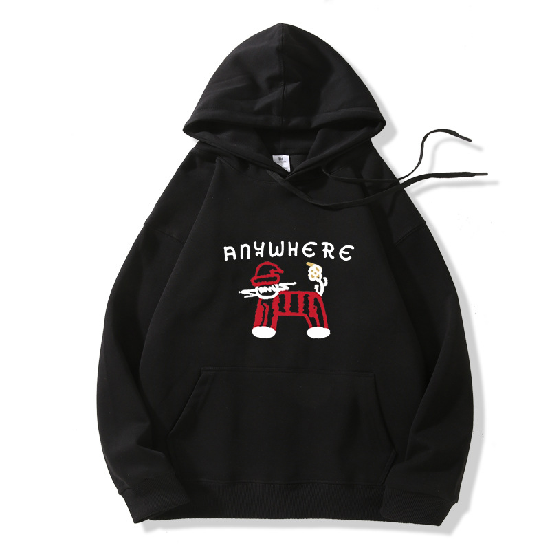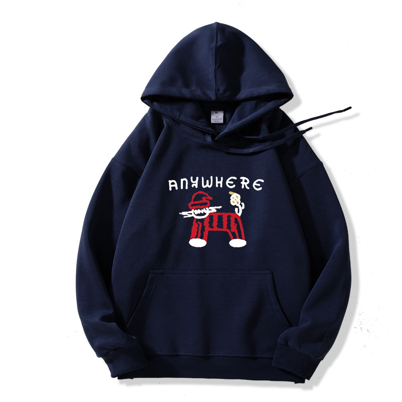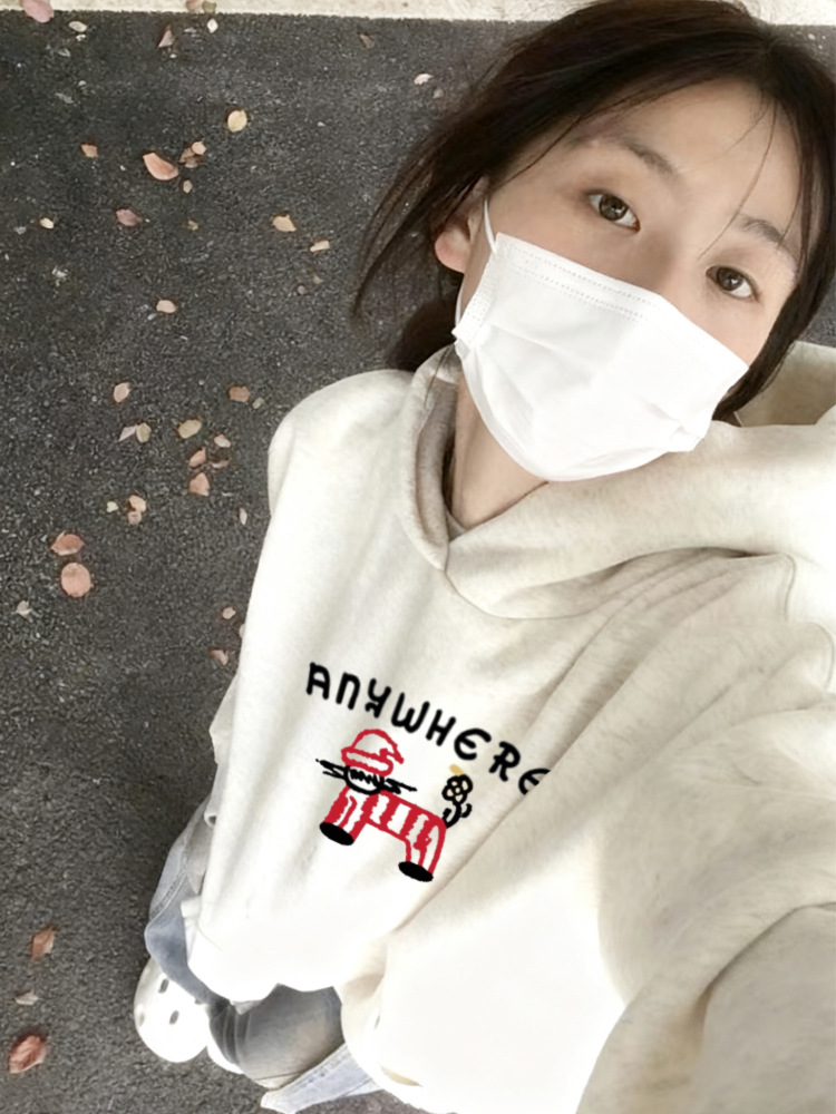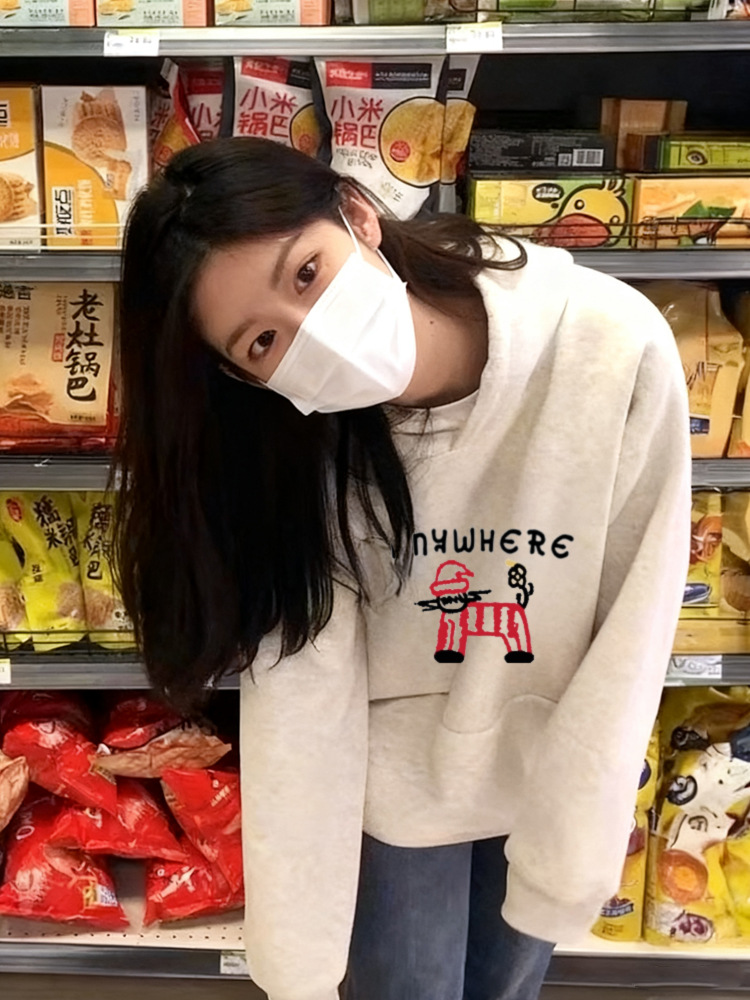 雀说藏青色连帽卫衣外套女秋冬新款美式卡通百搭加绒加厚宽松长袖上衣ALW1-886
