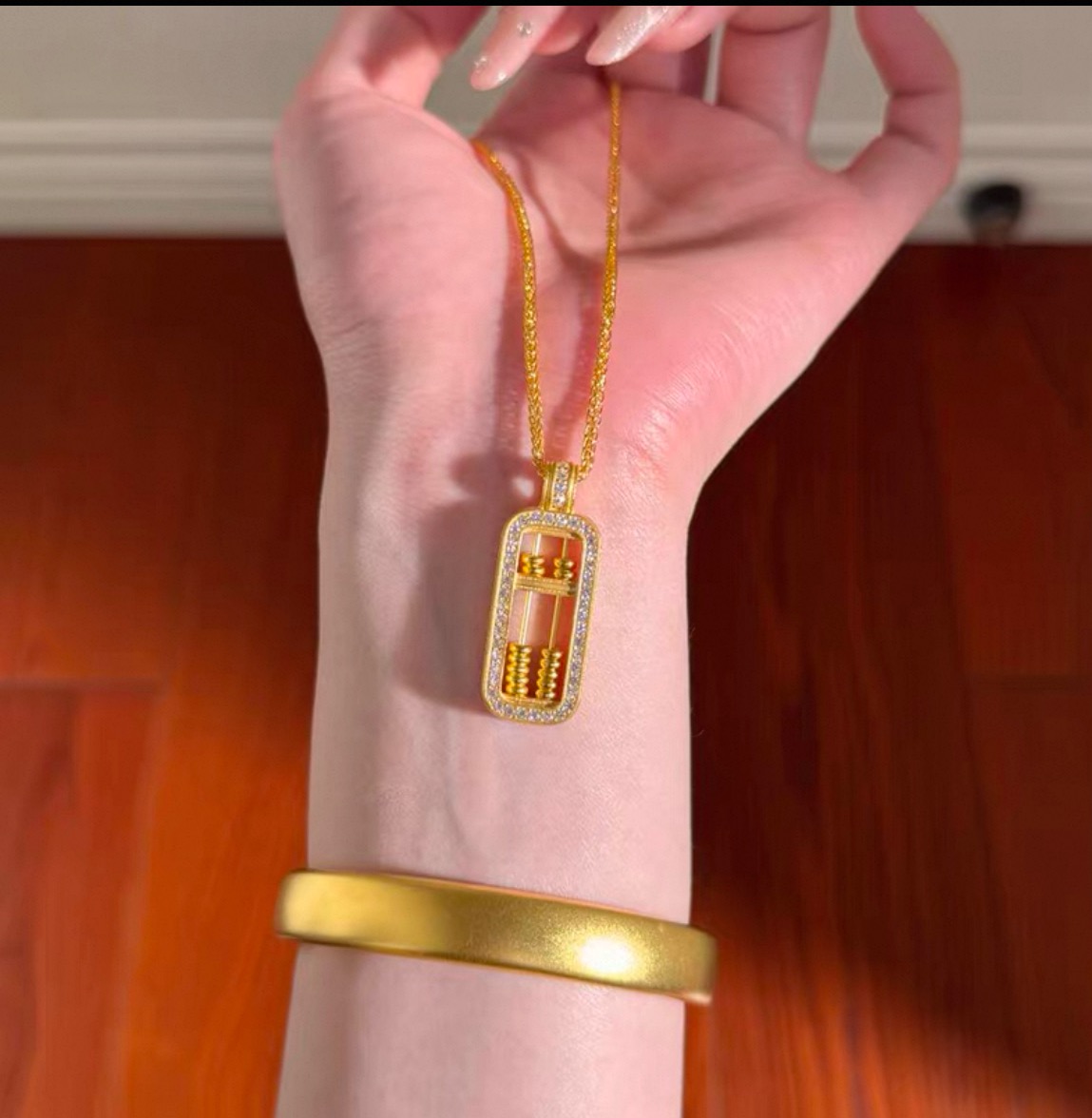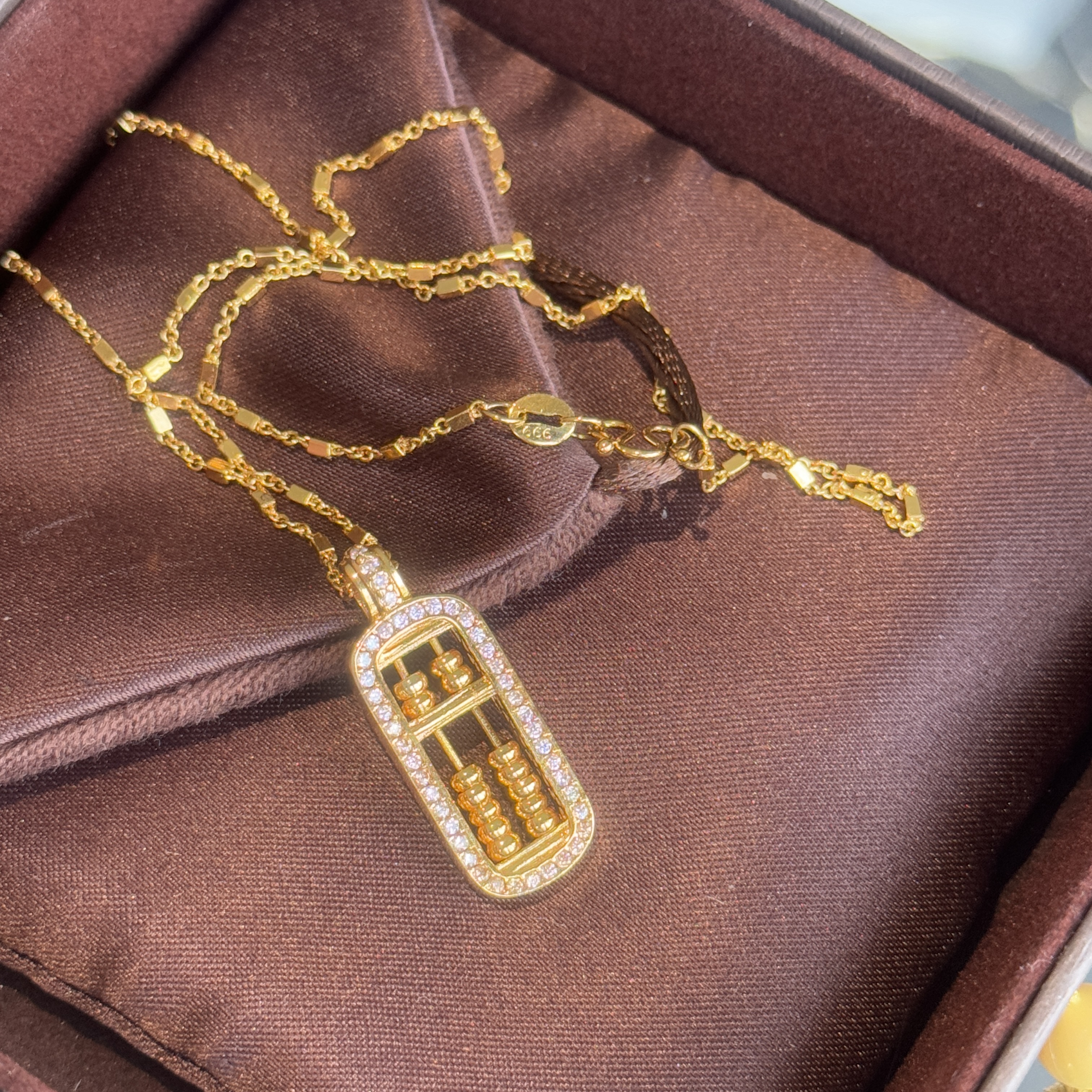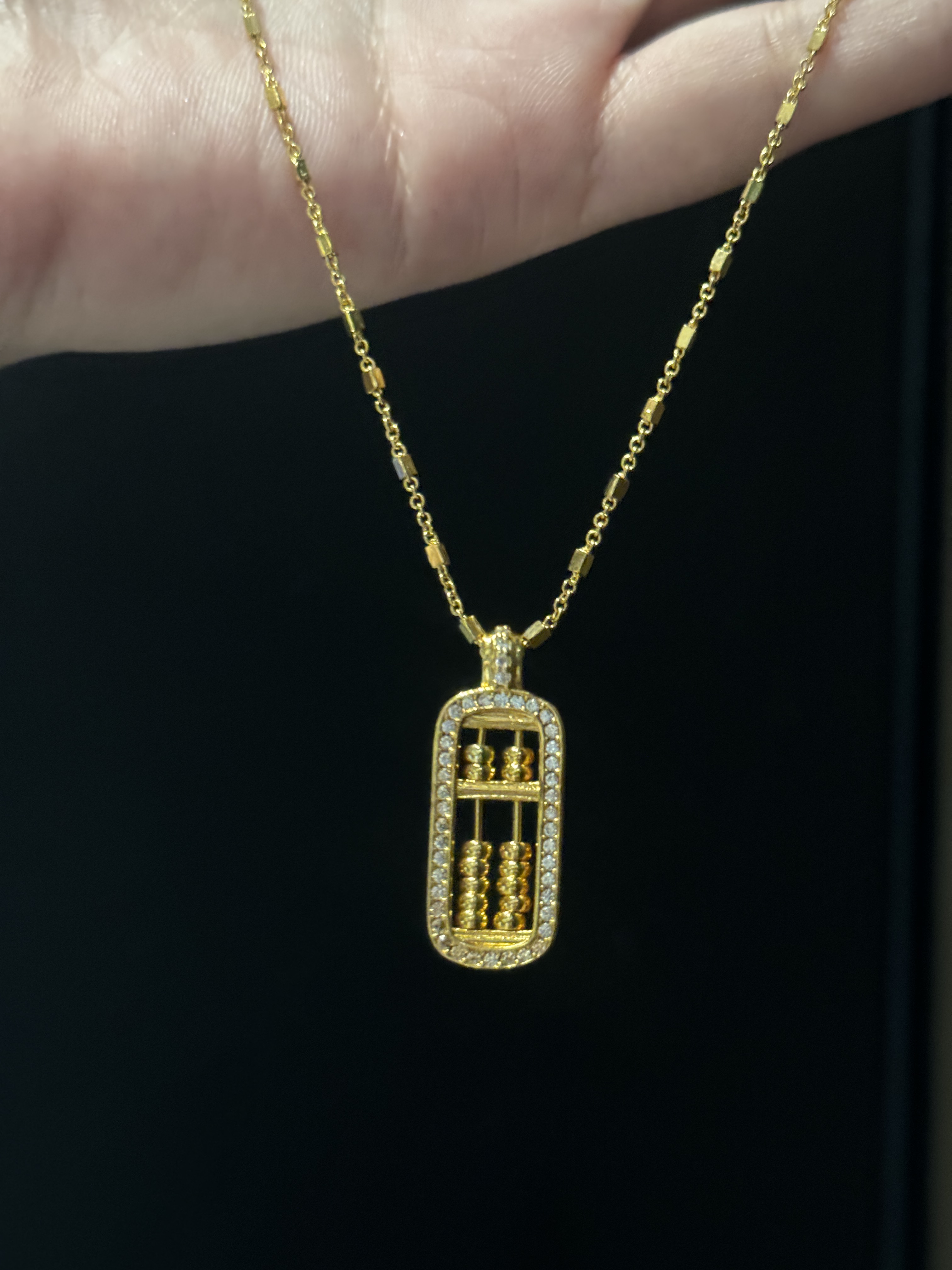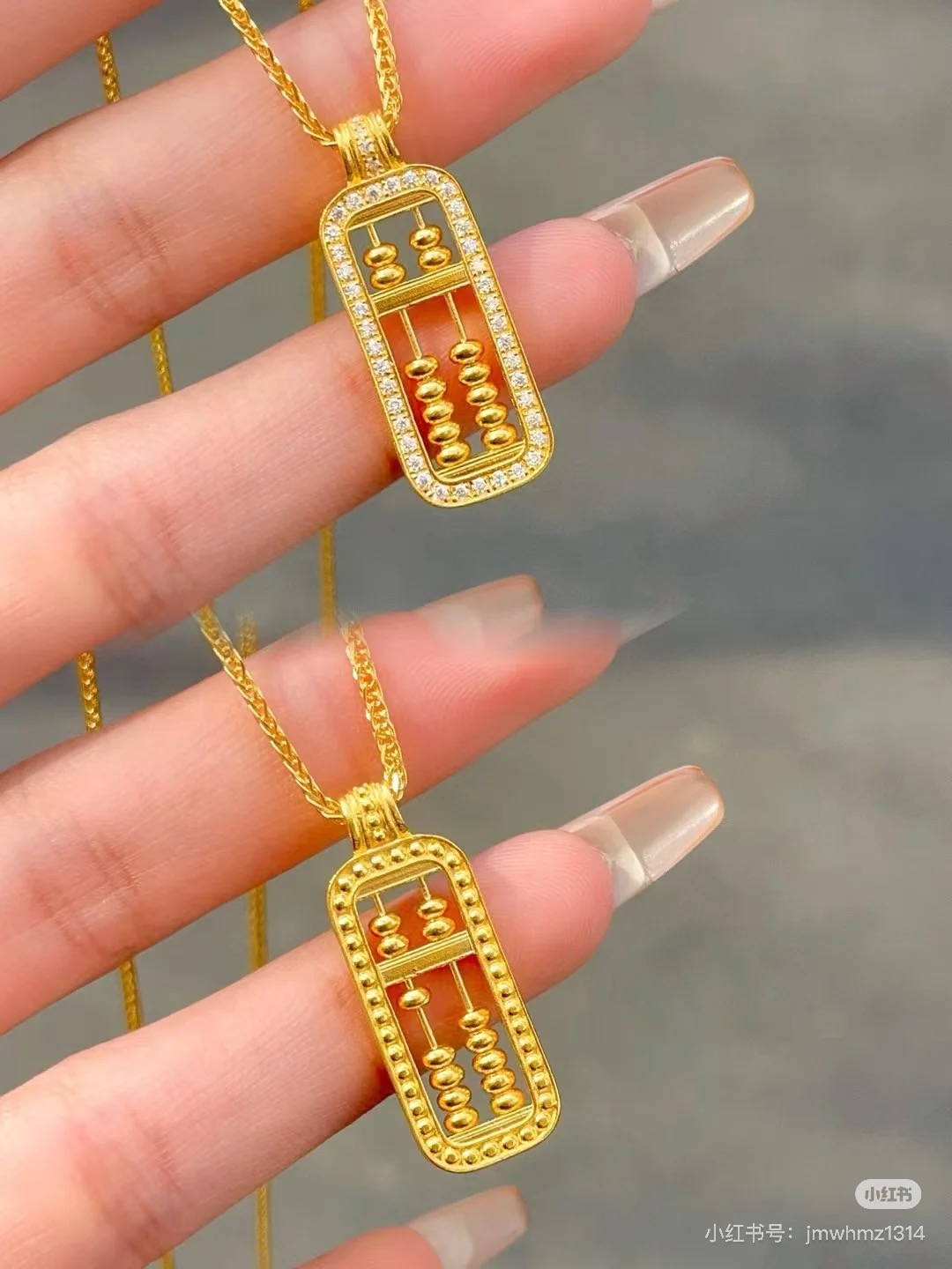 古法金算盘项链!算盘一响,黄金万两!每一颗金珠都藏着招财寓意 每一粒钻石都闪耀好运光芒 算盘拨一拨,福气自然来。18k金 镀真金?镶钻算盘项链 让你把财富和好运都戴在身上。打破传统,创意十足!老凤祥古法金镶钻算盘项链,既有美好寓意,又超显气质,谁戴谁吸睛!小算盘都是可以上下活动的!不是死珠子!也是小小的很精致。这种都是可以当吊坠来佩戴的。不是必须当长长的链条,这个就是短短的也是好看的。也是镀18K真黄金的。 这个是带链条的。感觉这个价格不知道是不是弄错了,先这样出吧,这个可以叠戴好看。我就是希望你们尝试一下这种东西,你感受一下这种东西。当你收到以后,你就会改观你对这种饰品的态度!!就像何方,就像APM这种纯银饰品一样,一卖一两千,两三千,很多人买单就是因为它足够精致,而且足够好看