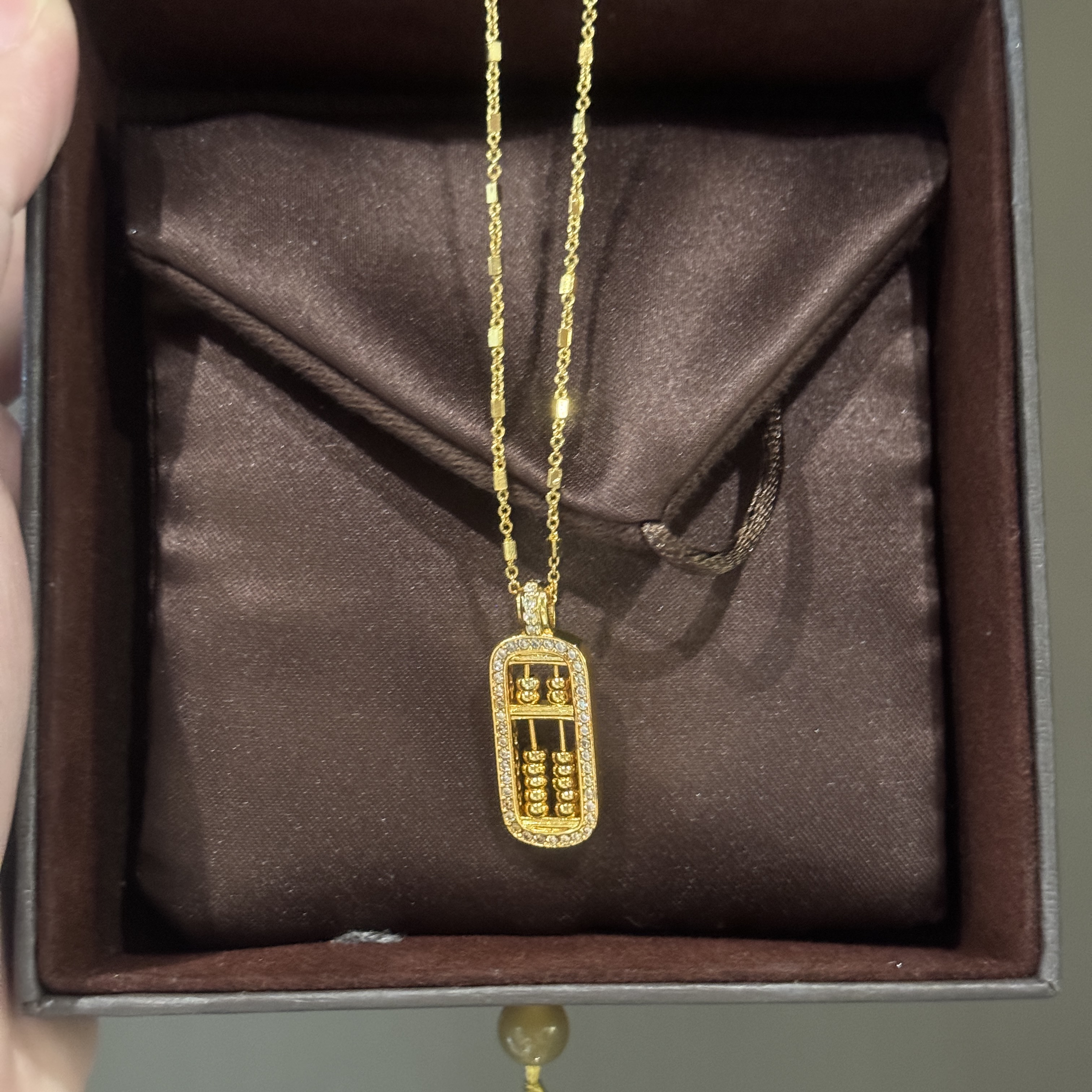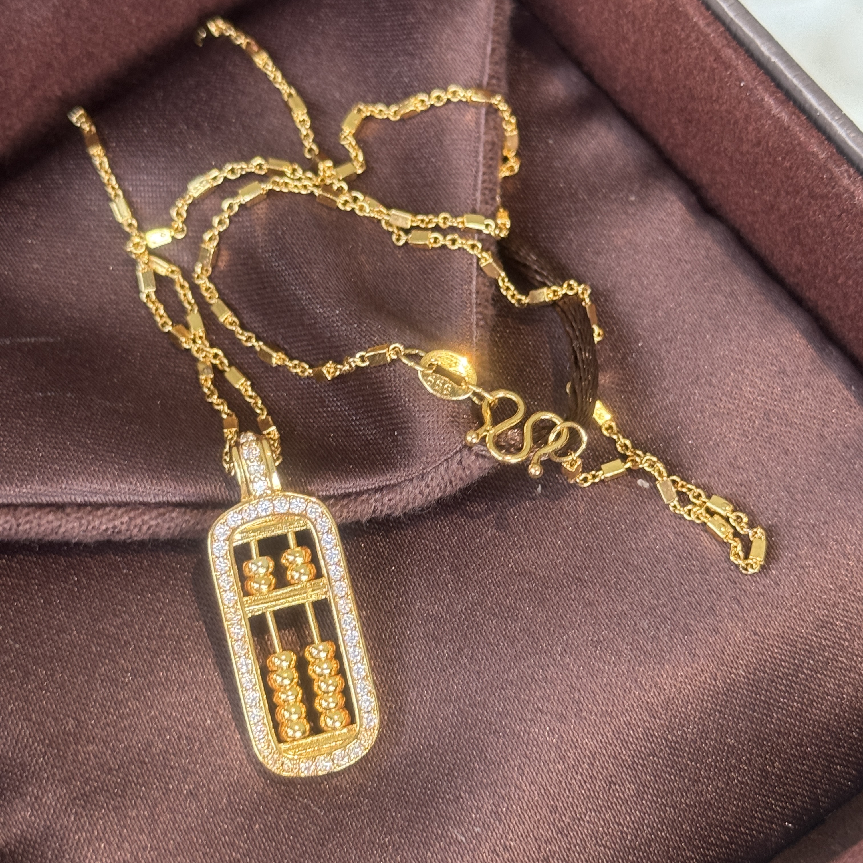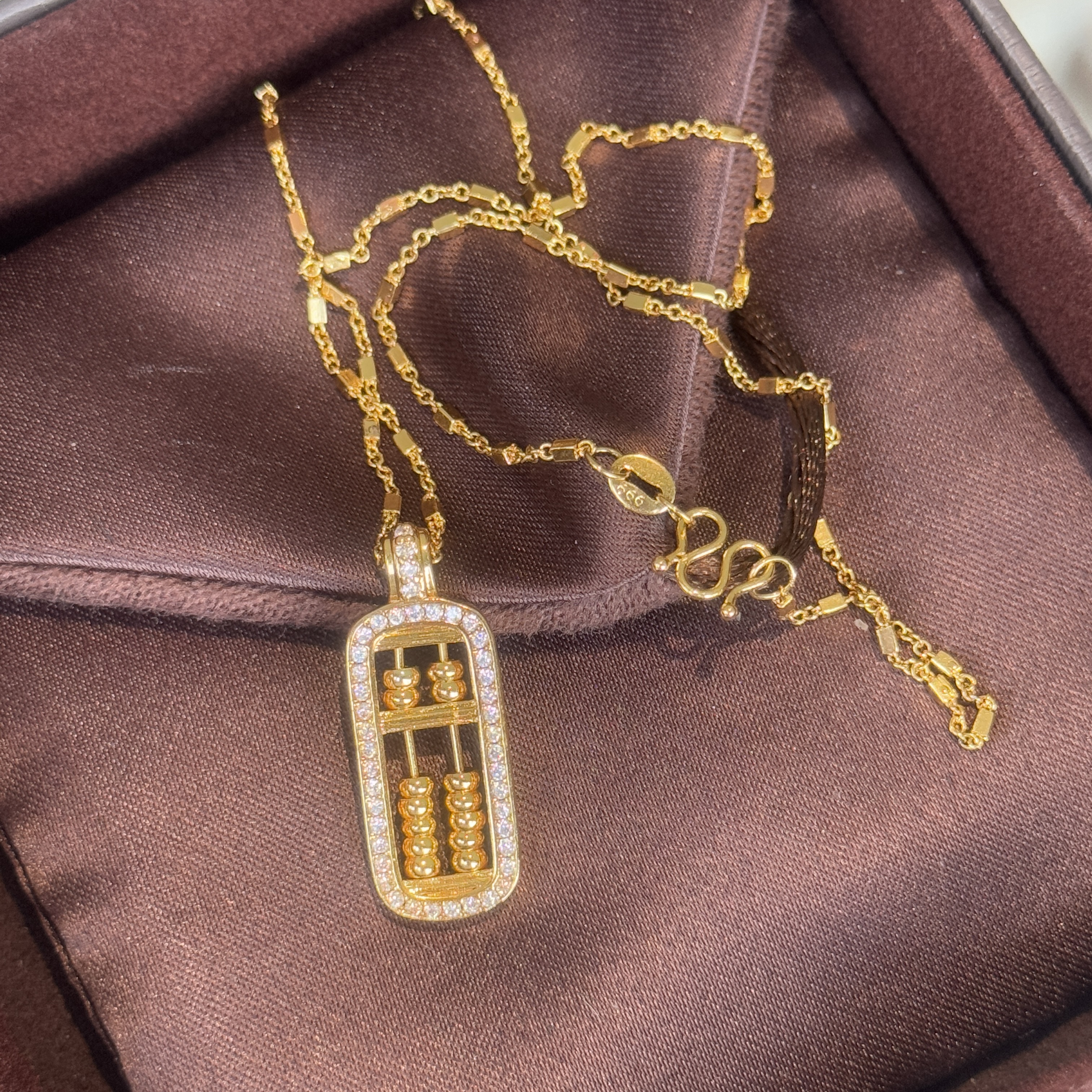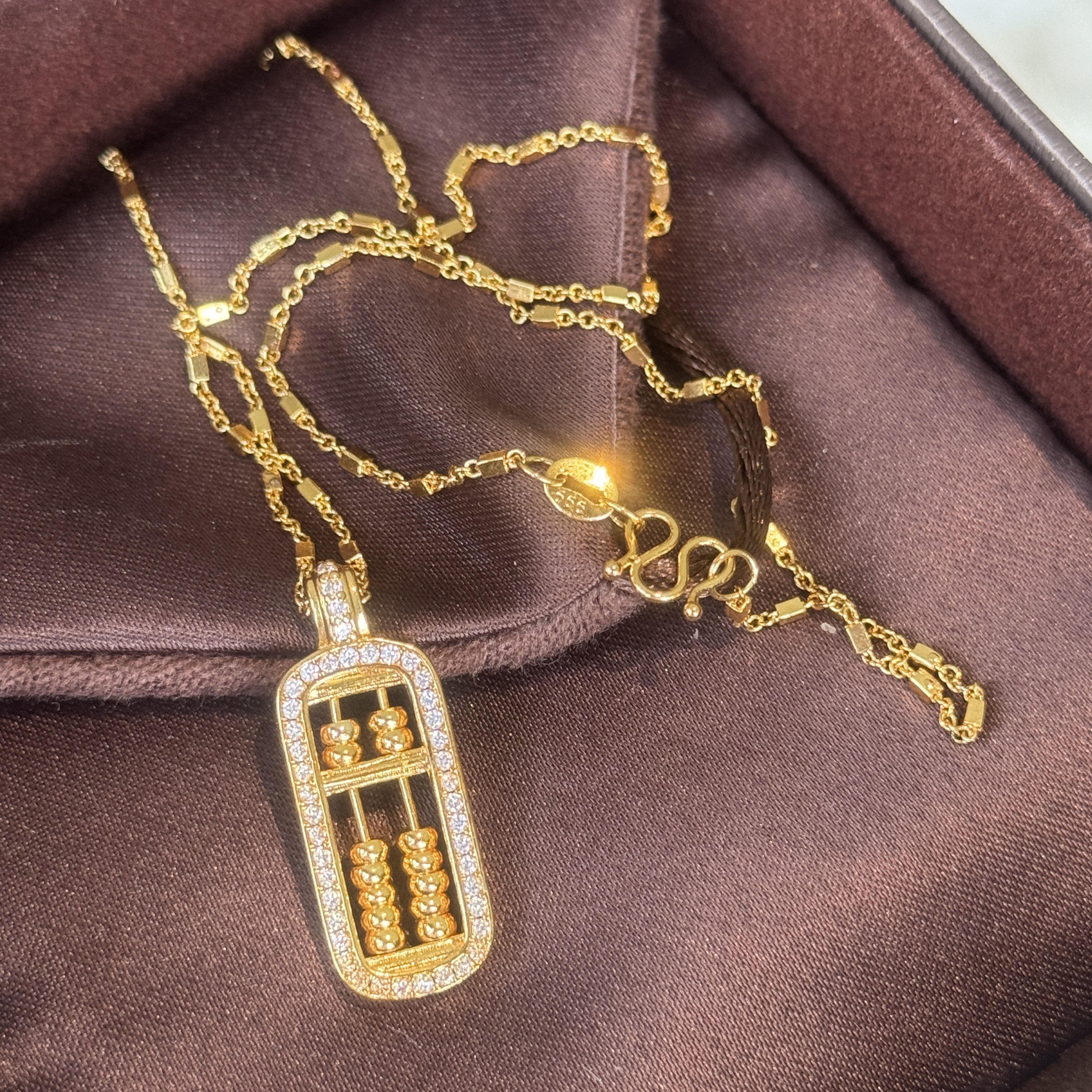 古法金算盘项链!算盘一响,黄金万两!每一颗金珠都藏着招财寓意 每一粒钻石都闪耀好运光芒 算盘拨一拨,福气自然来。18k金 镀真金?镶钻算盘项链 让你把财富和好运都戴在身上。打破传统,创意十足!老凤祥古法金镶钻算盘项链,既有美好寓意,又超显气质,谁戴谁吸睛!小算盘都是可以上下活动的!不是死珠子!也是小小的很精致。这种都是可以当吊坠来佩戴的。不是必须当长长的链条,这个就是短短的也是好看的。也是镀18K真黄金的。 这个是带链条的。感觉这个价格不知道是不是弄错了,先这样出吧,这个可以叠戴好看。我就是希望你们尝试一下这种东西,你感受一下这种东西。当你收到以后,你就会改观你对这种饰品的态度!!就像何方,就像APM这种纯银饰品一样,一卖一两千,两三千,很多人买单就是因为它足够精致,而且足够好看