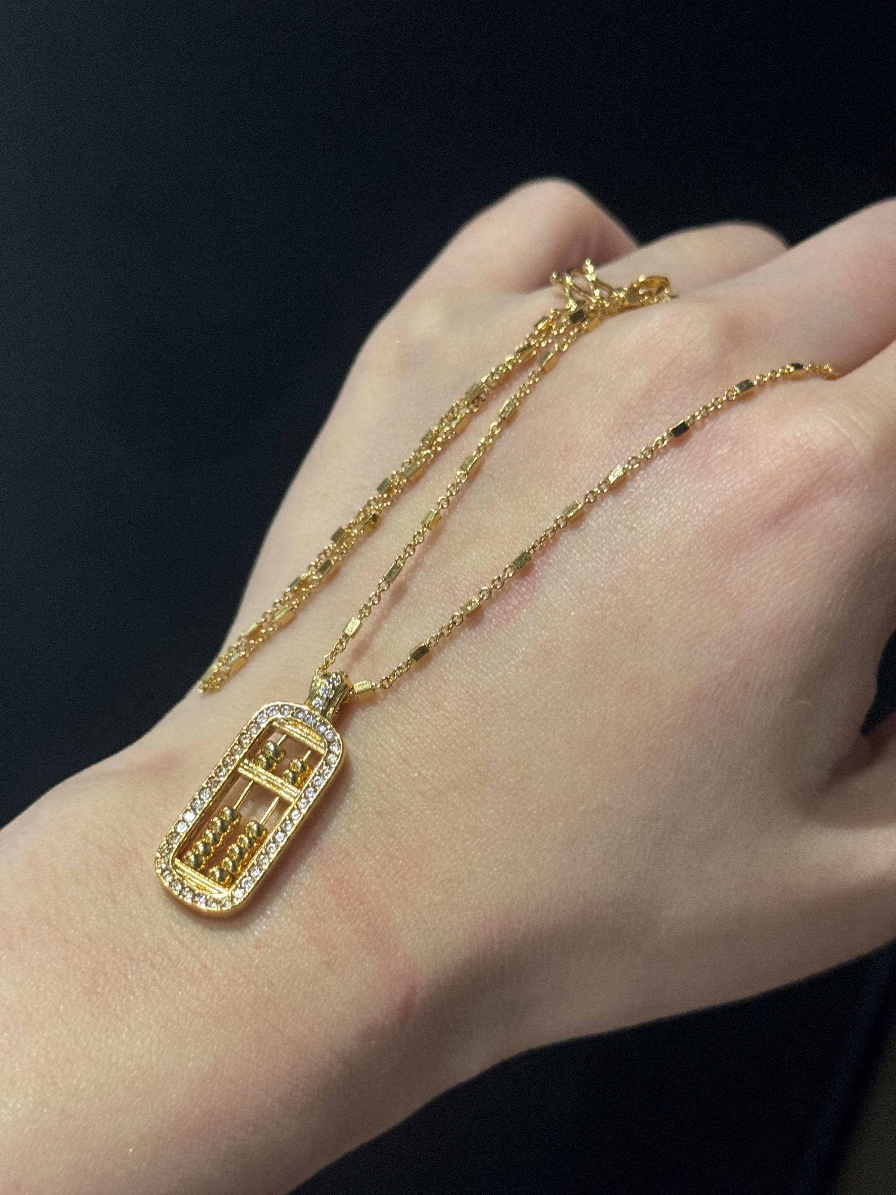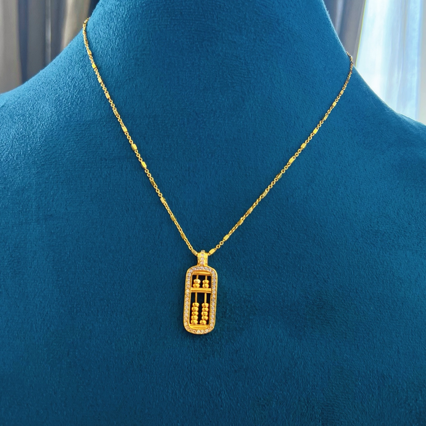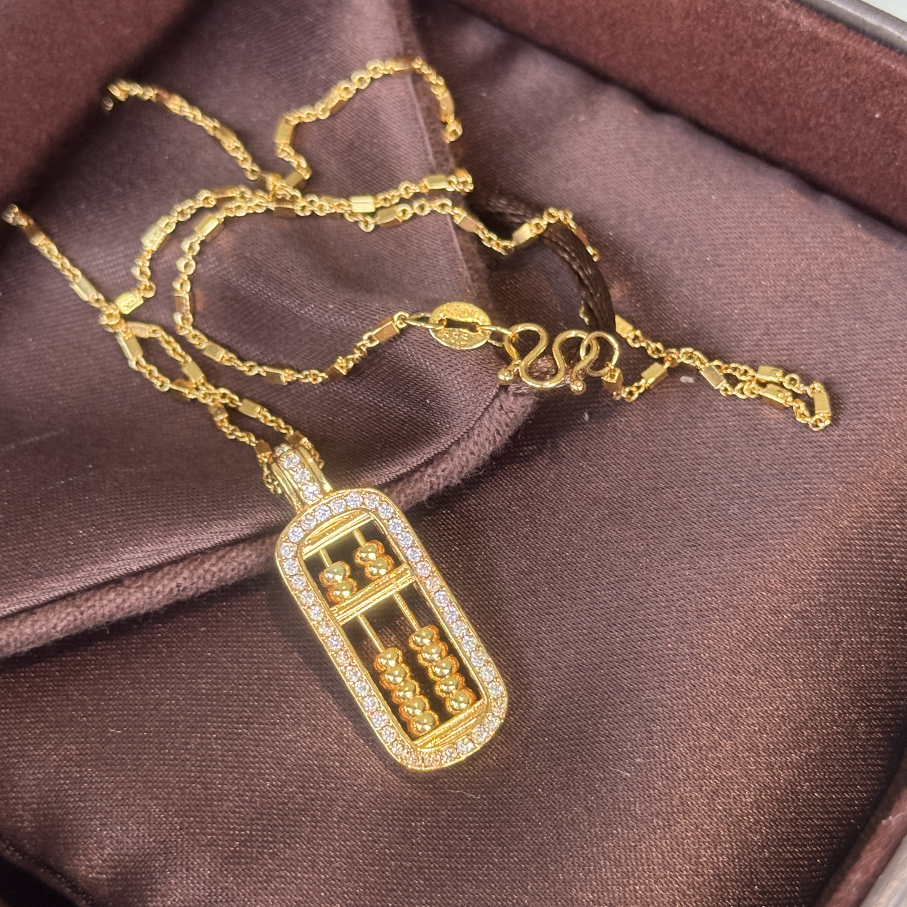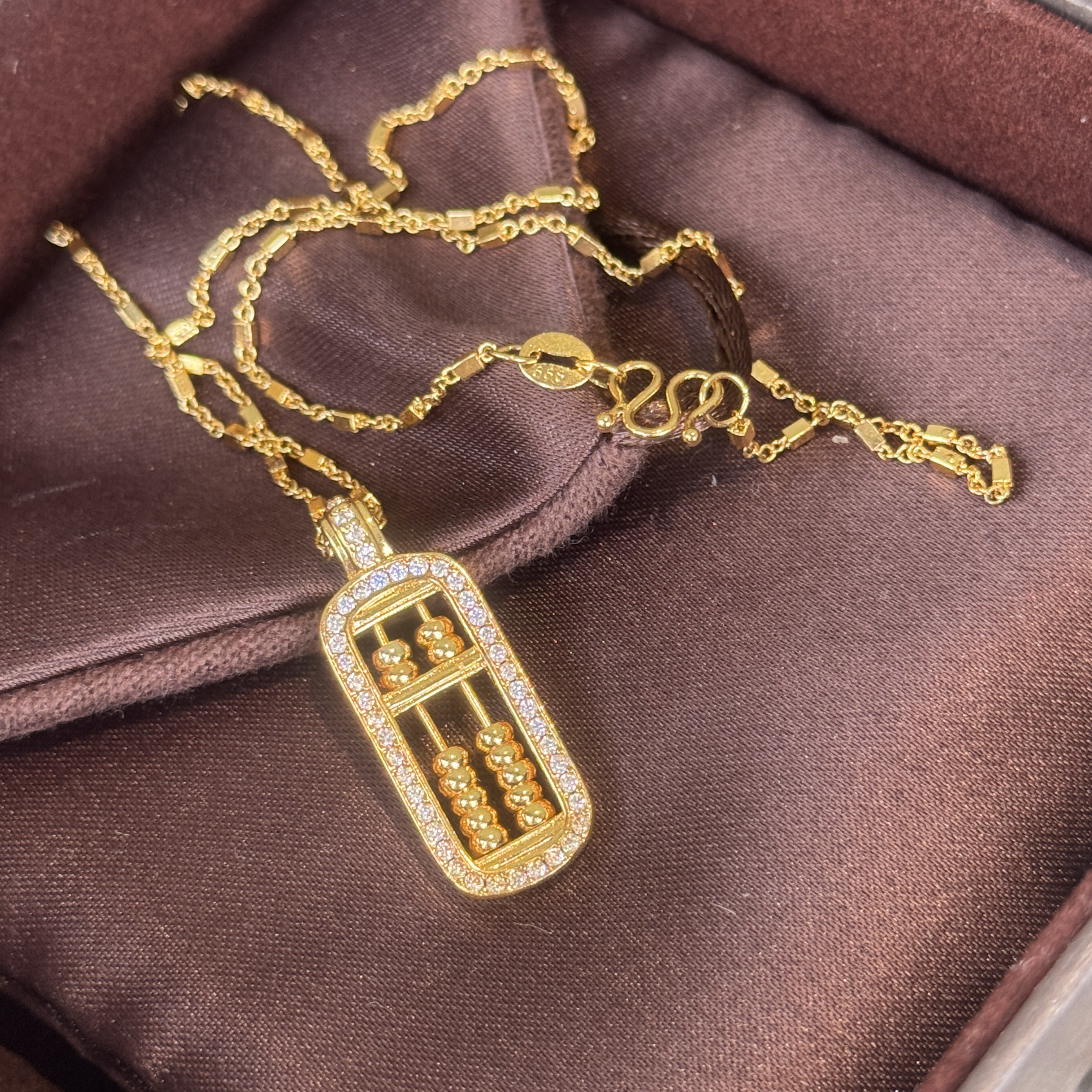 古法金算盘项链!算盘一响,黄金万两!每一颗金珠都藏着招财寓意 每一粒钻石都闪耀好运光芒 算盘拨一拨,福气自然来。18k金 镀真金?镶钻算盘项链 让你把财富和好运都戴在身上。打破传统,创意十足!老凤祥古法金镶钻算盘项链,既有美好寓意,又超显气质,谁戴谁吸睛!小算盘都是可以上下活动的!不是死珠子!也是小小的很精致。这种都是可以当吊坠来佩戴的。不是必须当长长的链条,这个就是短短的也是好看的。也是镀18K真黄金的。 这个是带链条的。感觉这个价格不知道是不是弄错了,先这样出吧,这个可以叠戴好看。我就是希望你们尝试一下这种东西,你感受一下这种东西。当你收到以后,你就会改观你对这种饰品的态度!!就像何方,就像APM这种纯银饰品一样,一卖一两千,两三千,很多人买单就是因为它足够精致,而且足够好看