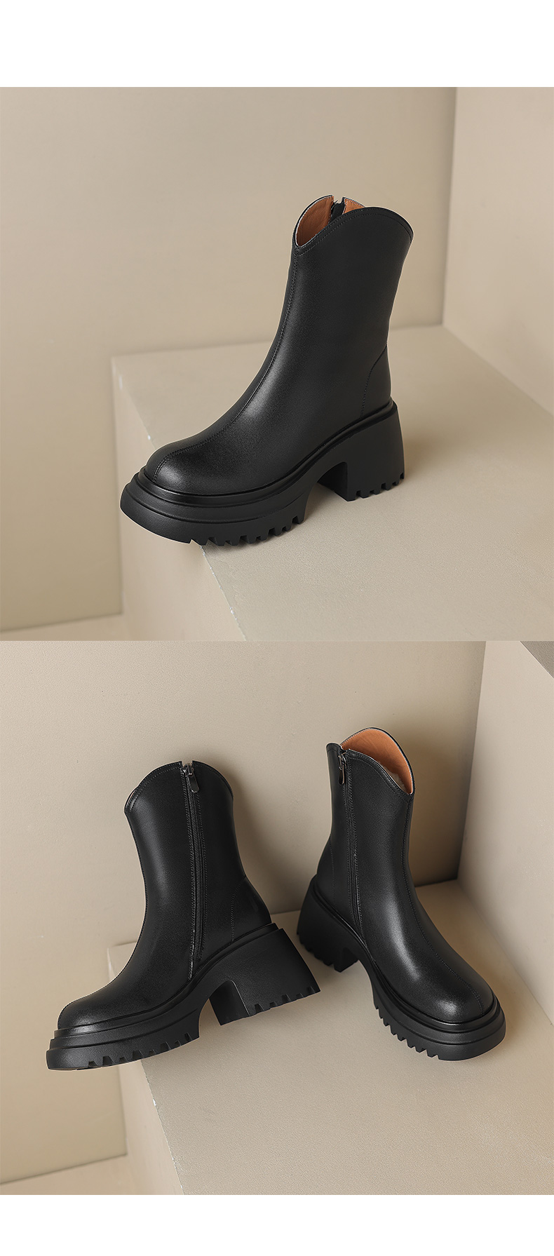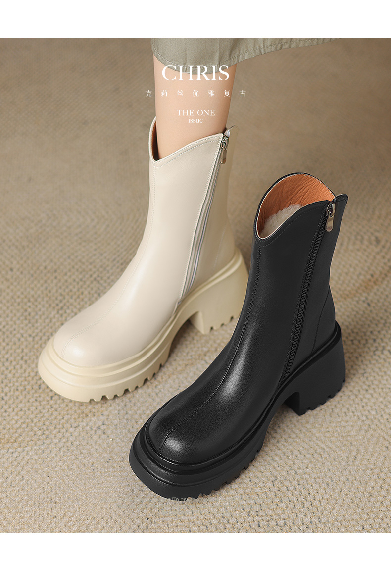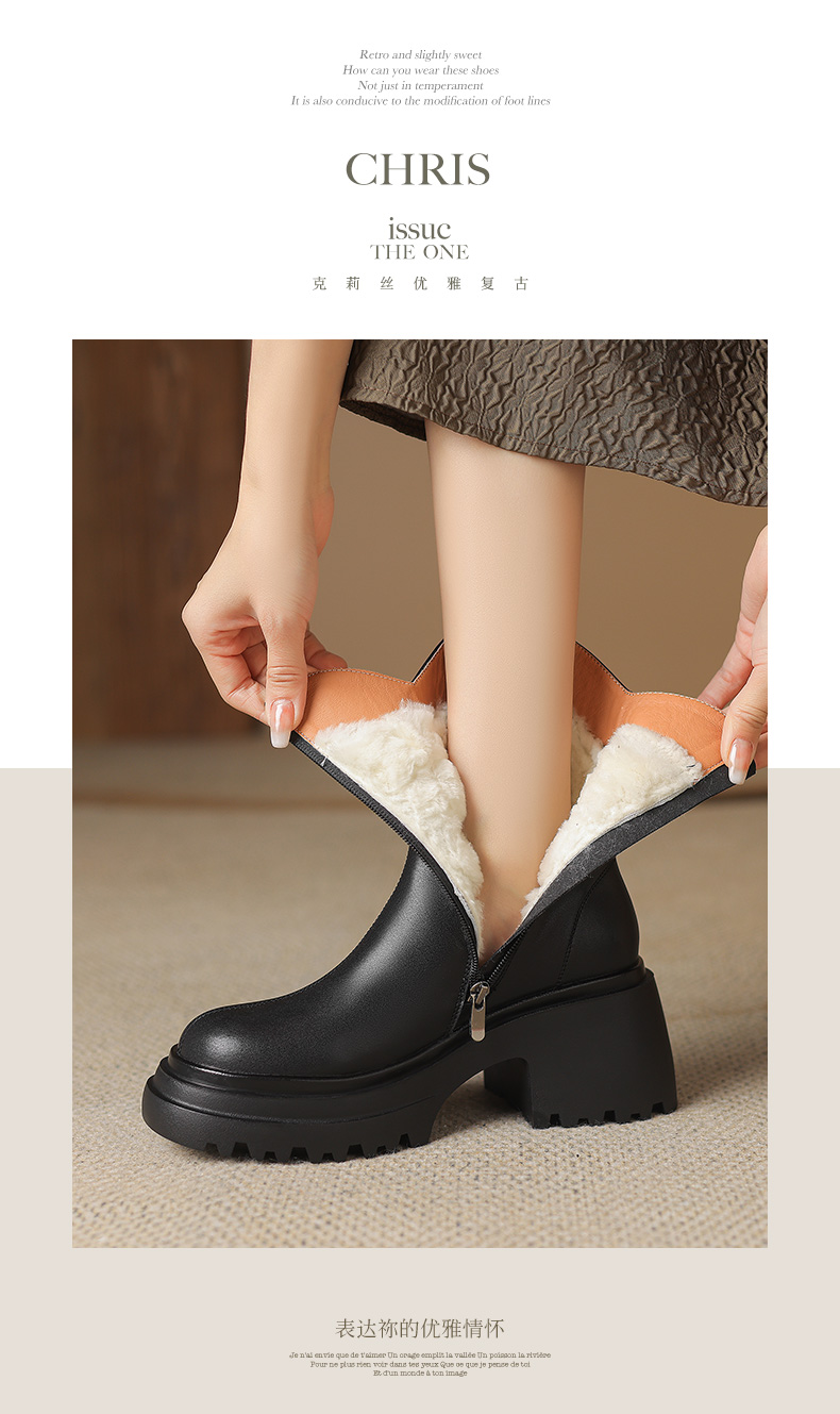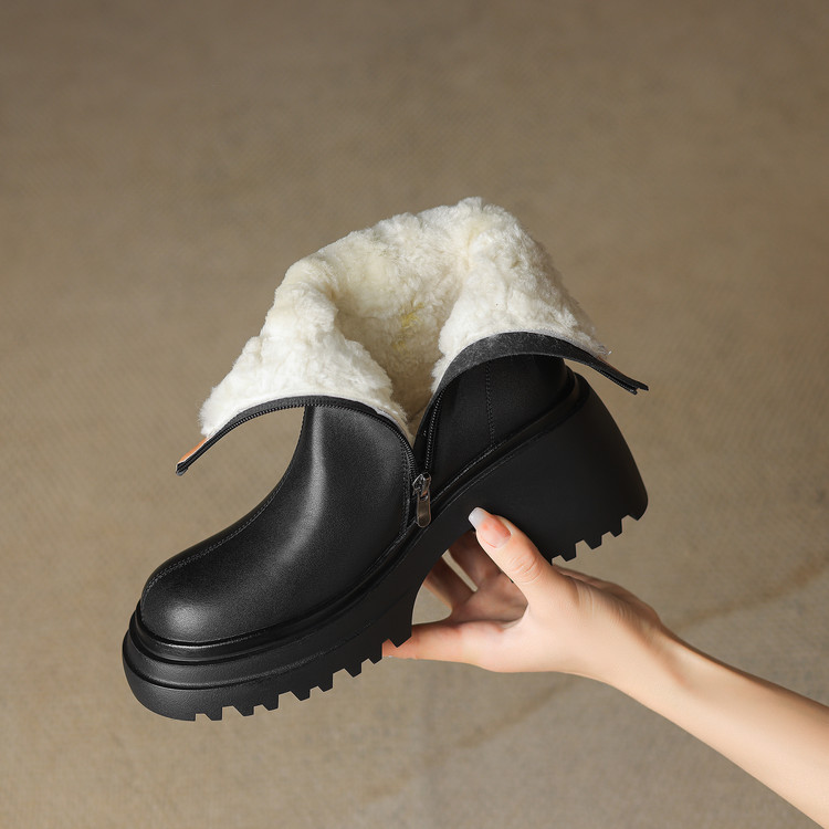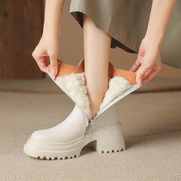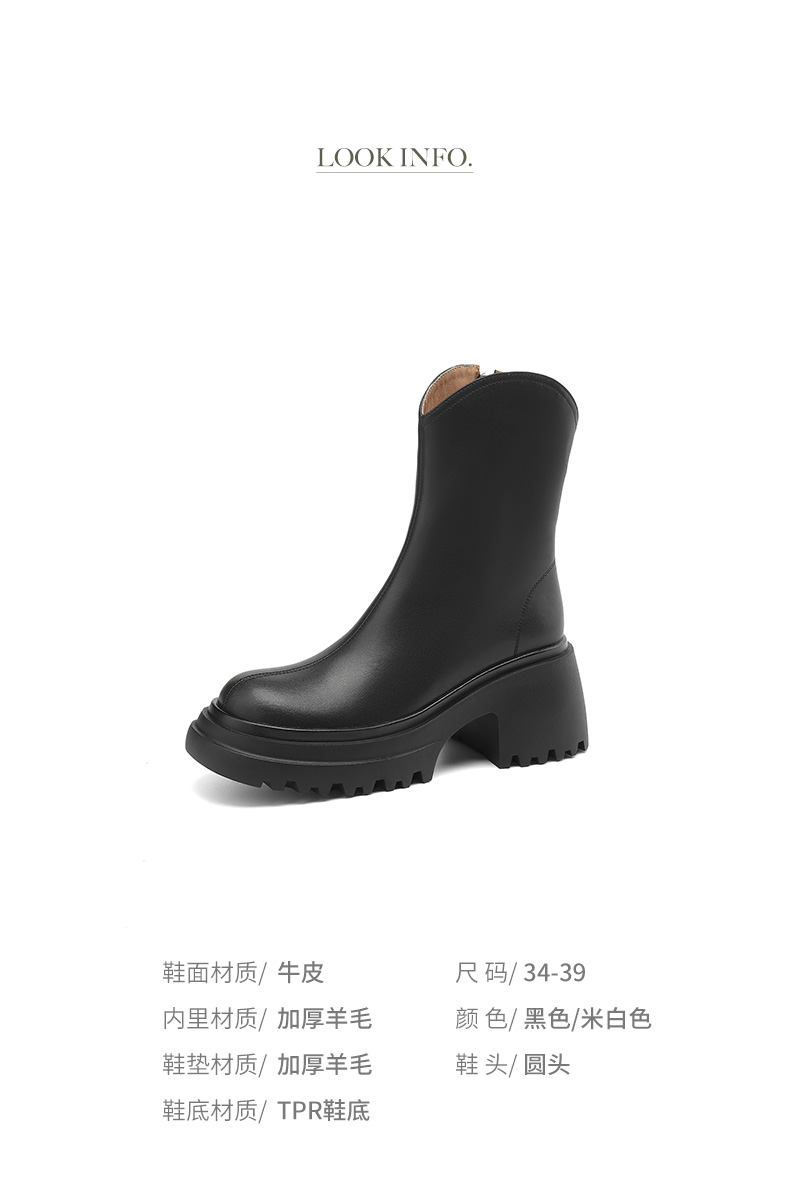 【预售5天】羊羔毛雪地靴女小个子厚底粗跟保暖切尔西短靴加绒加厚真皮马丁靴ZMXY&77015