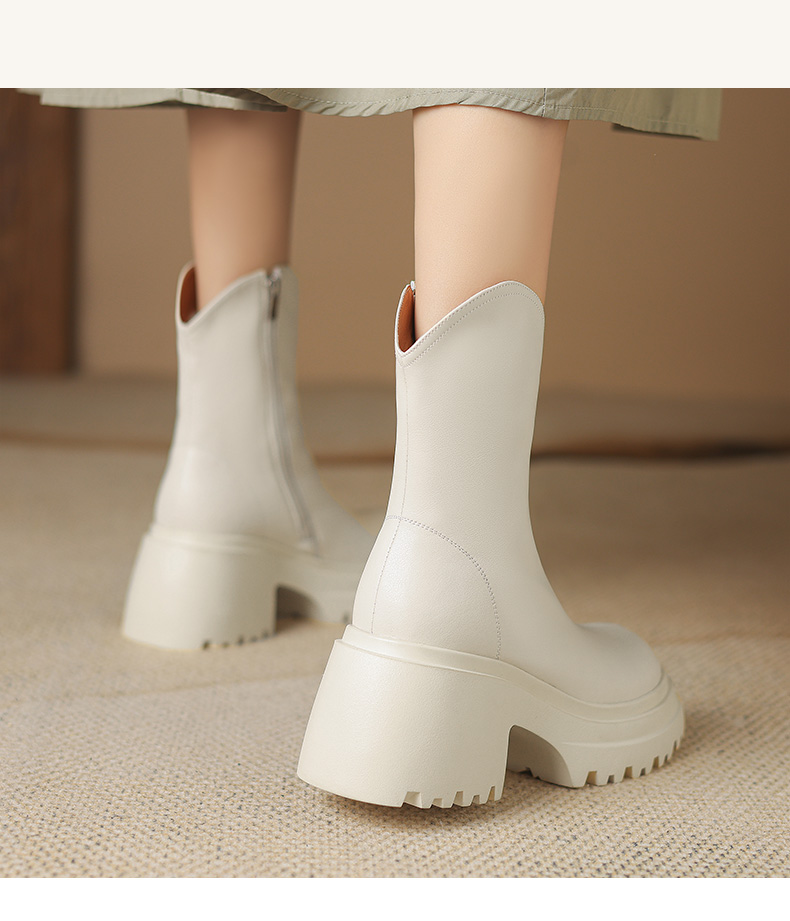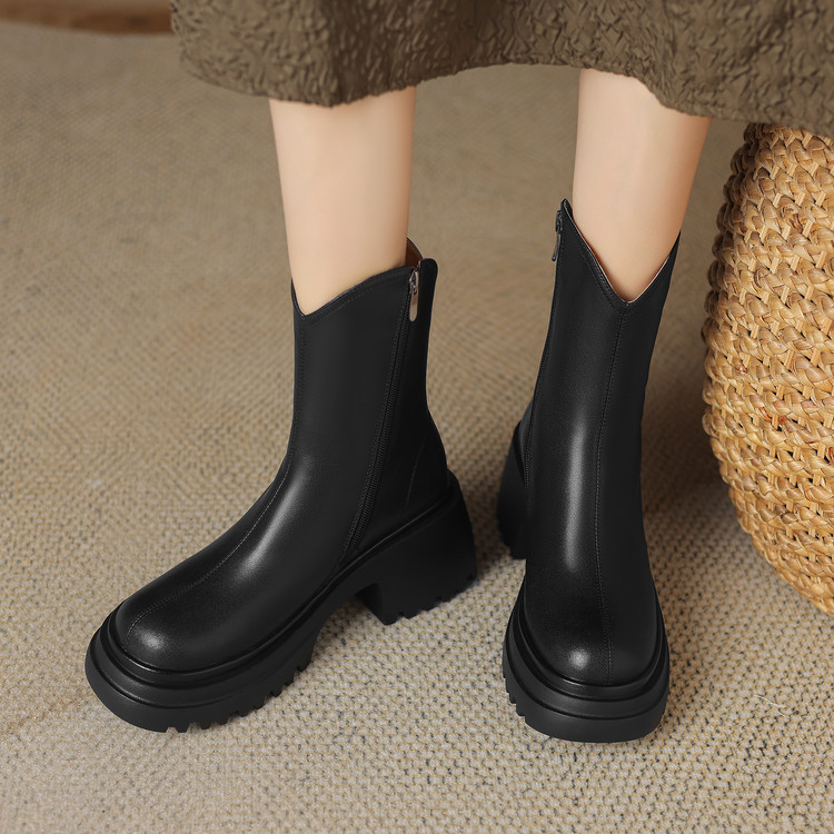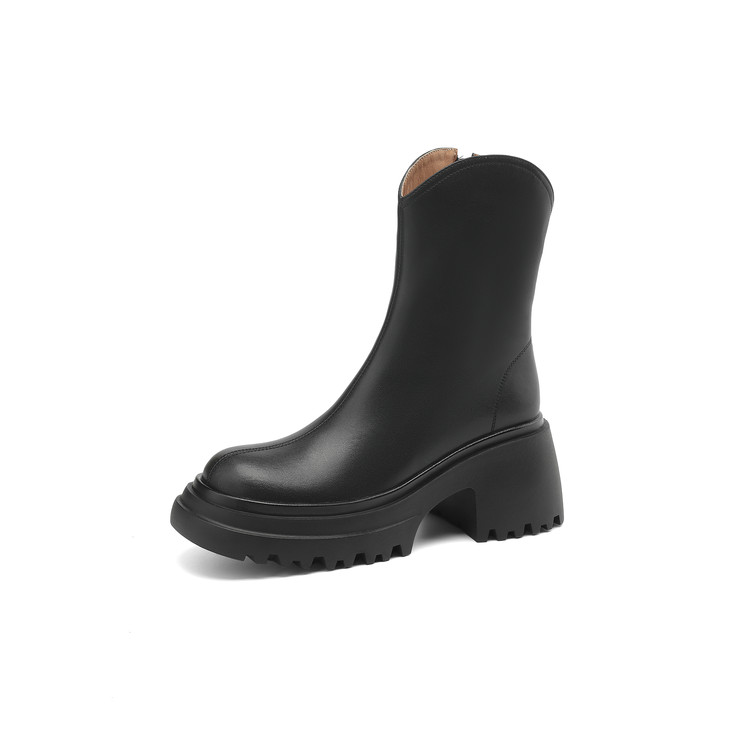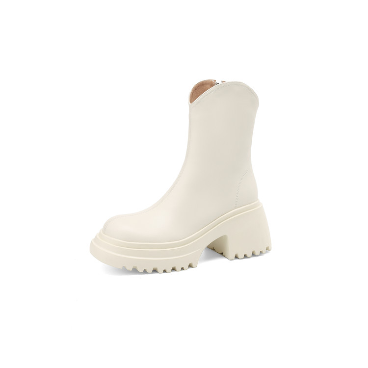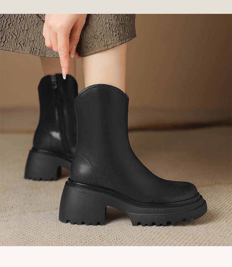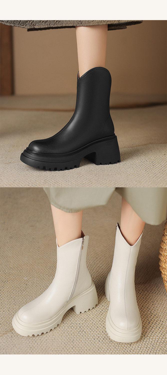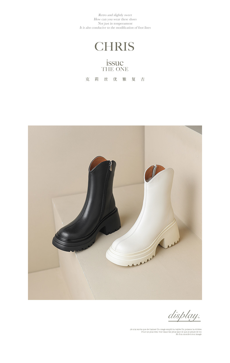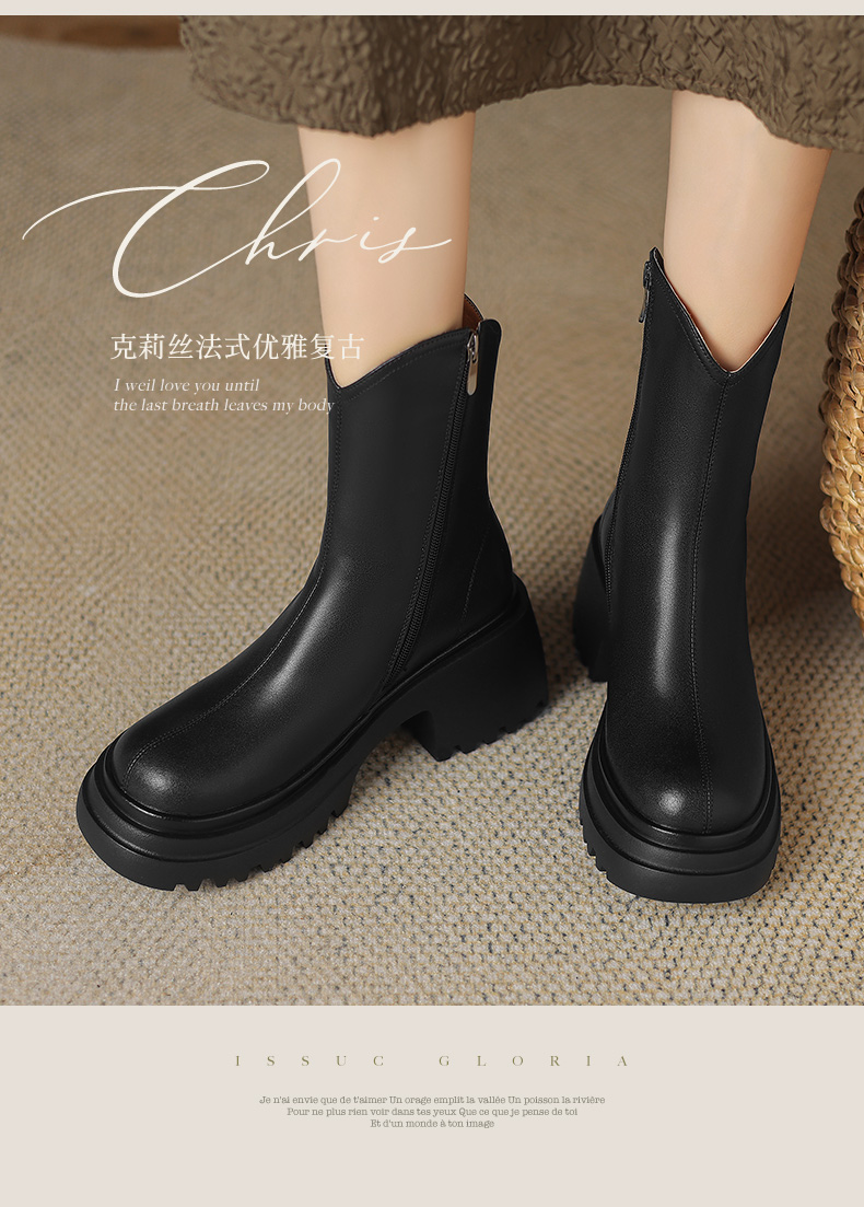【预售5天】羊羔毛雪地靴女小个子厚底粗跟保暖切尔西短靴加绒加厚真皮马丁靴ZMXY&77015