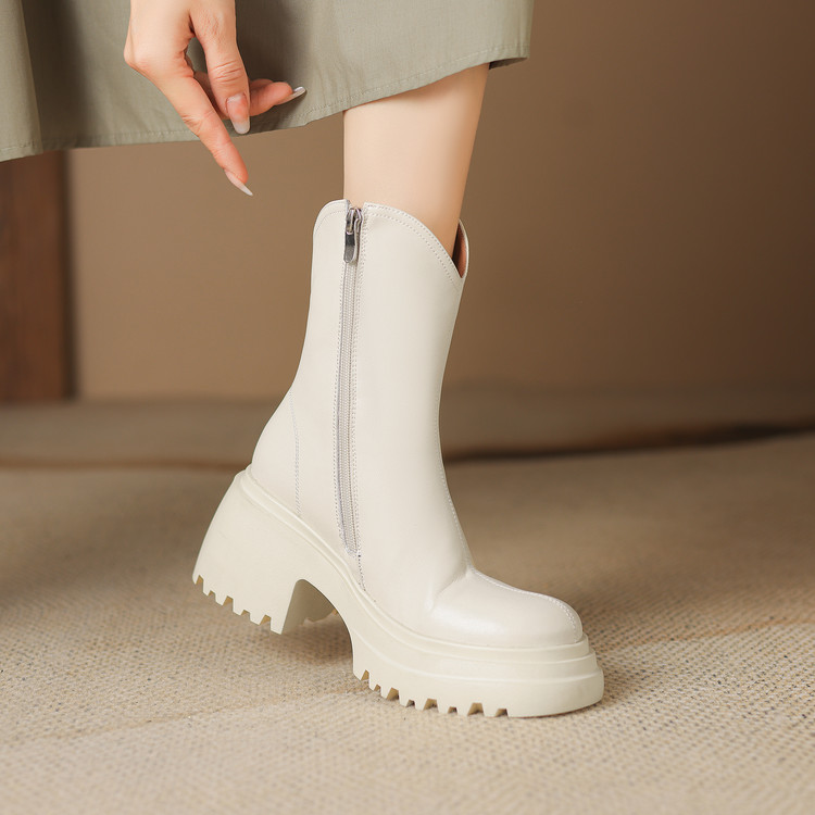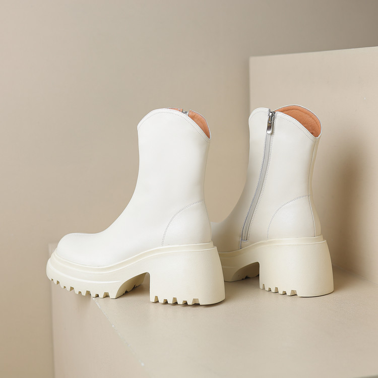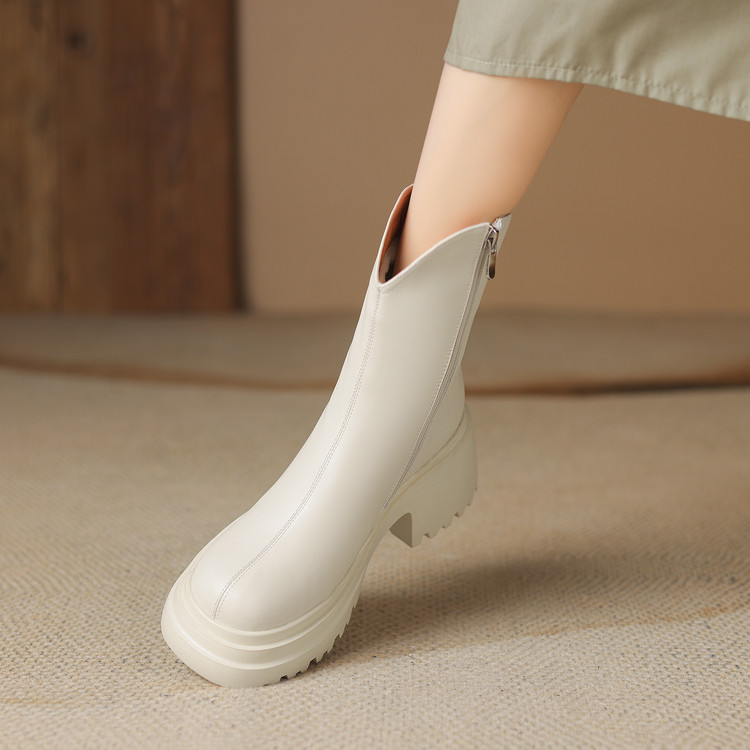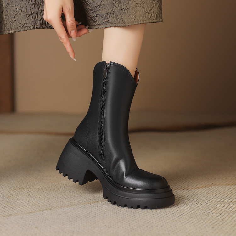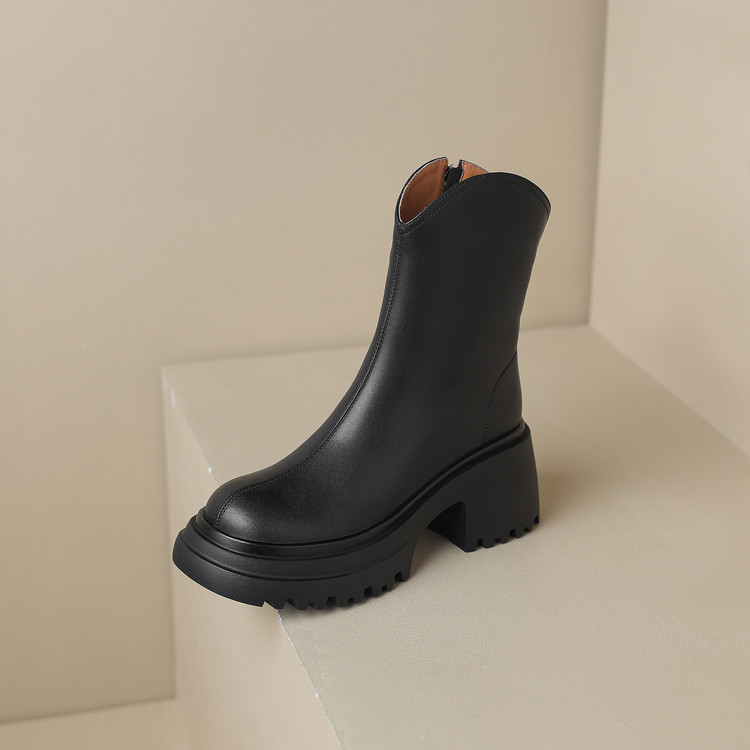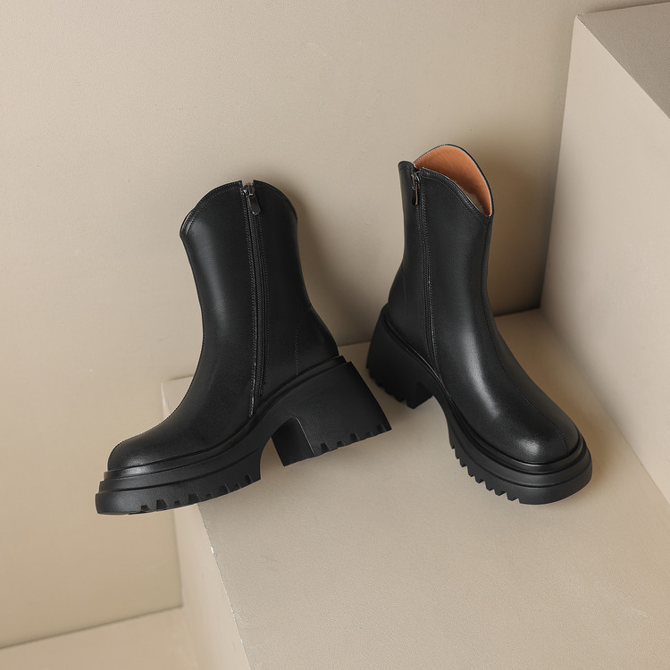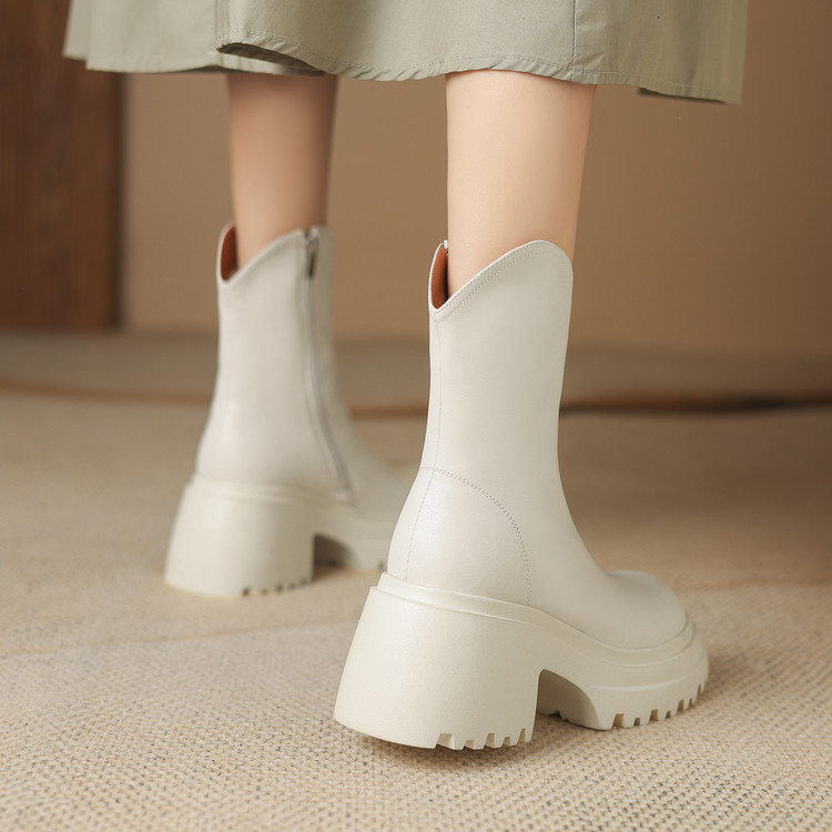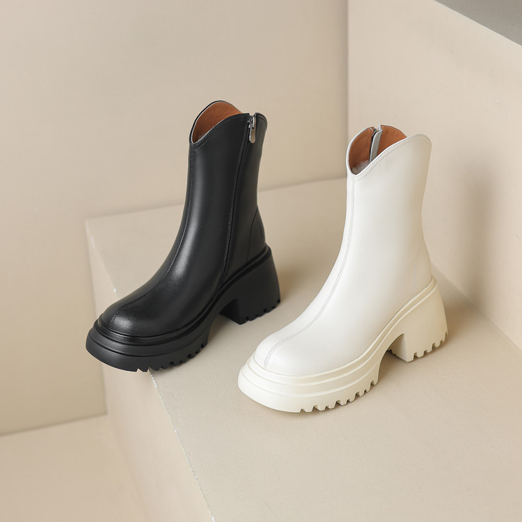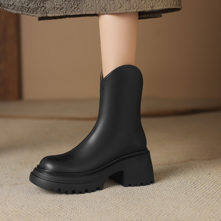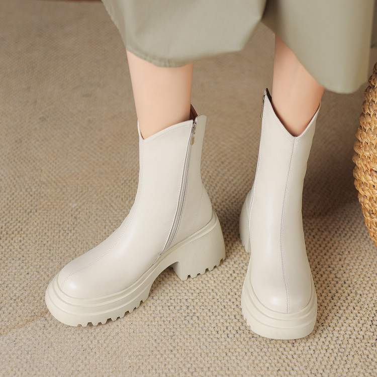 【预售5天】羊羔毛雪地靴女小个子厚底粗跟保暖切尔西短靴加绒加厚真皮马丁靴ZMXY&77015