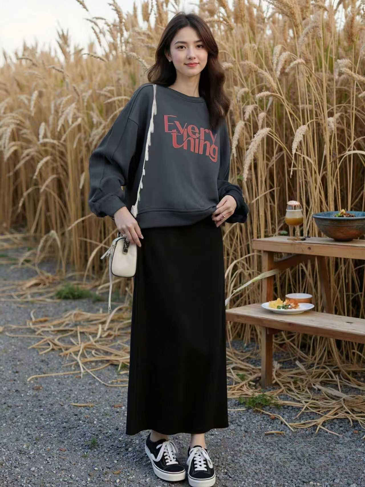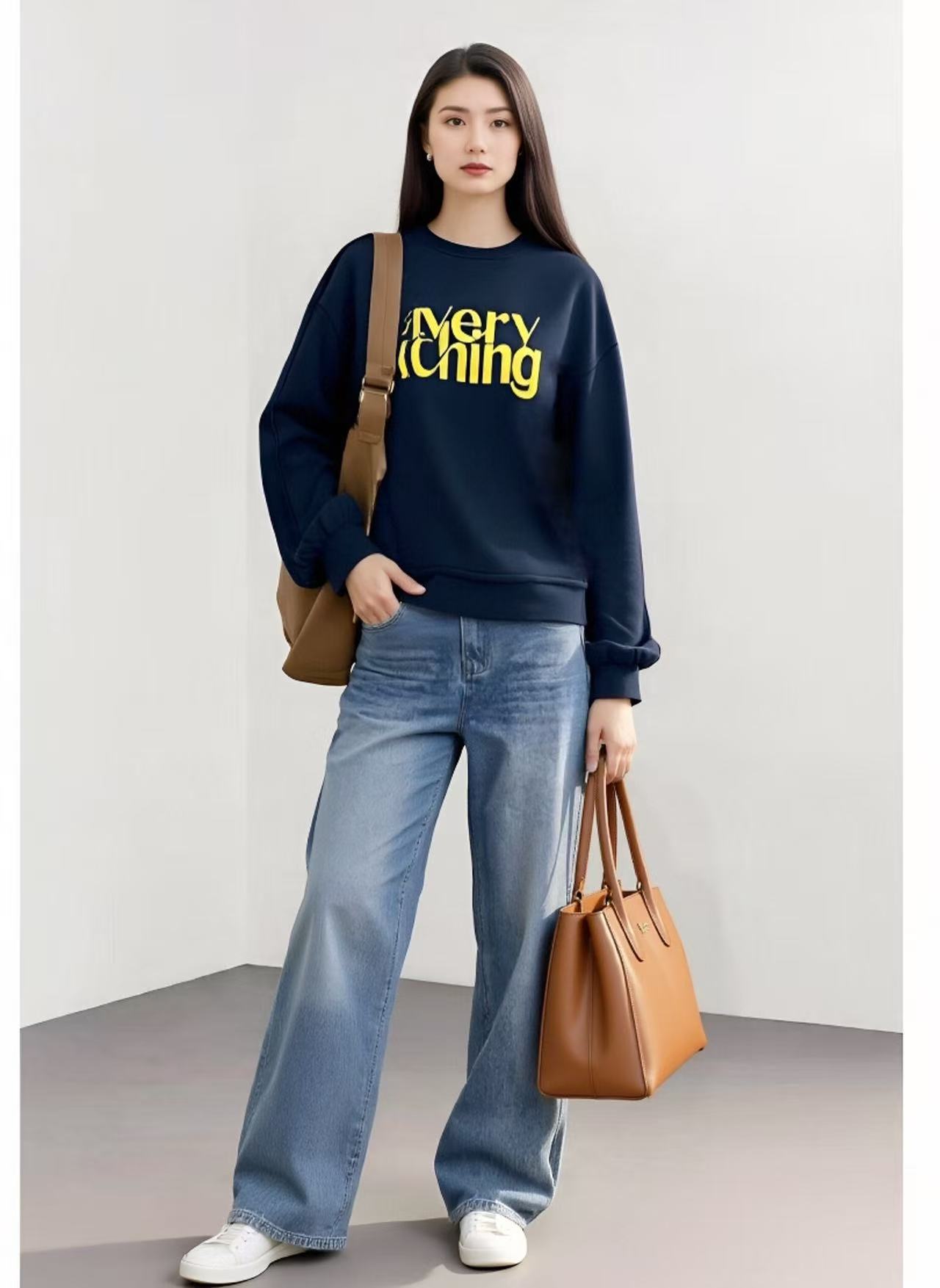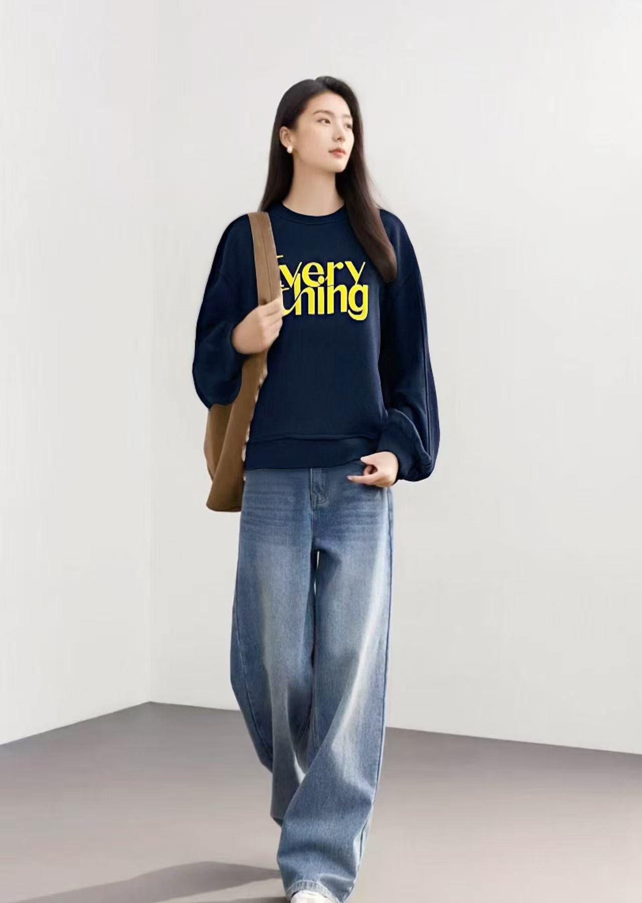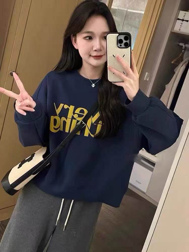 【卫衣系列】31831宽松字母藏蓝宽松短款卫衣-喜出