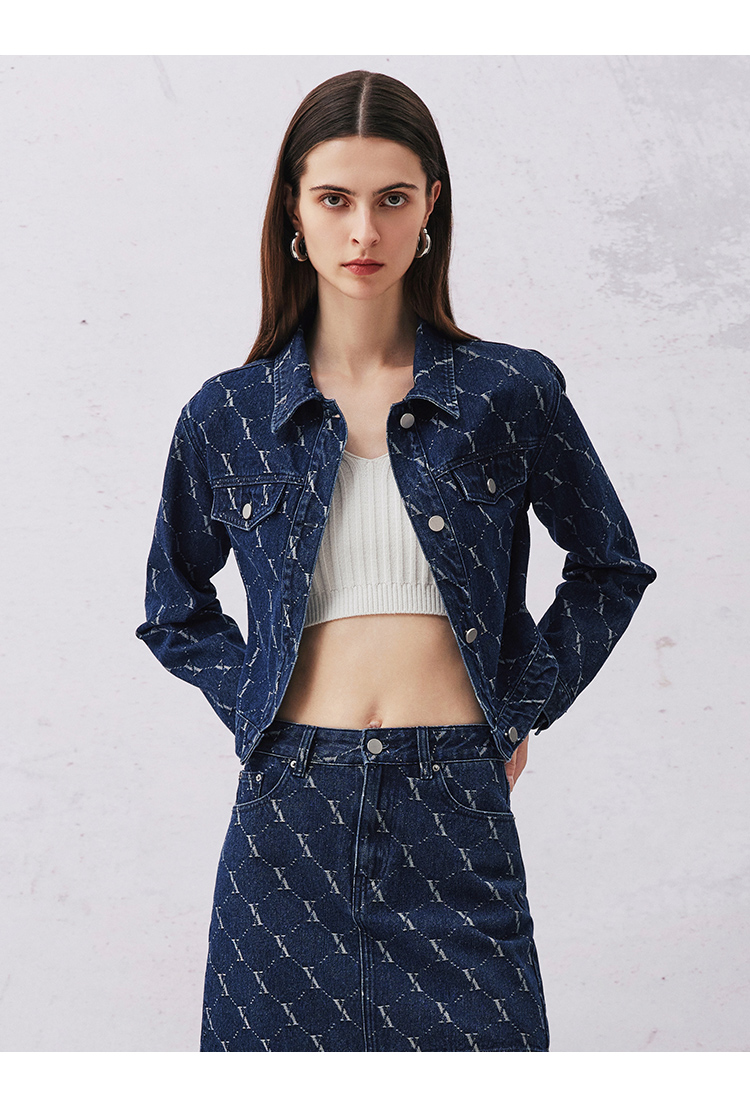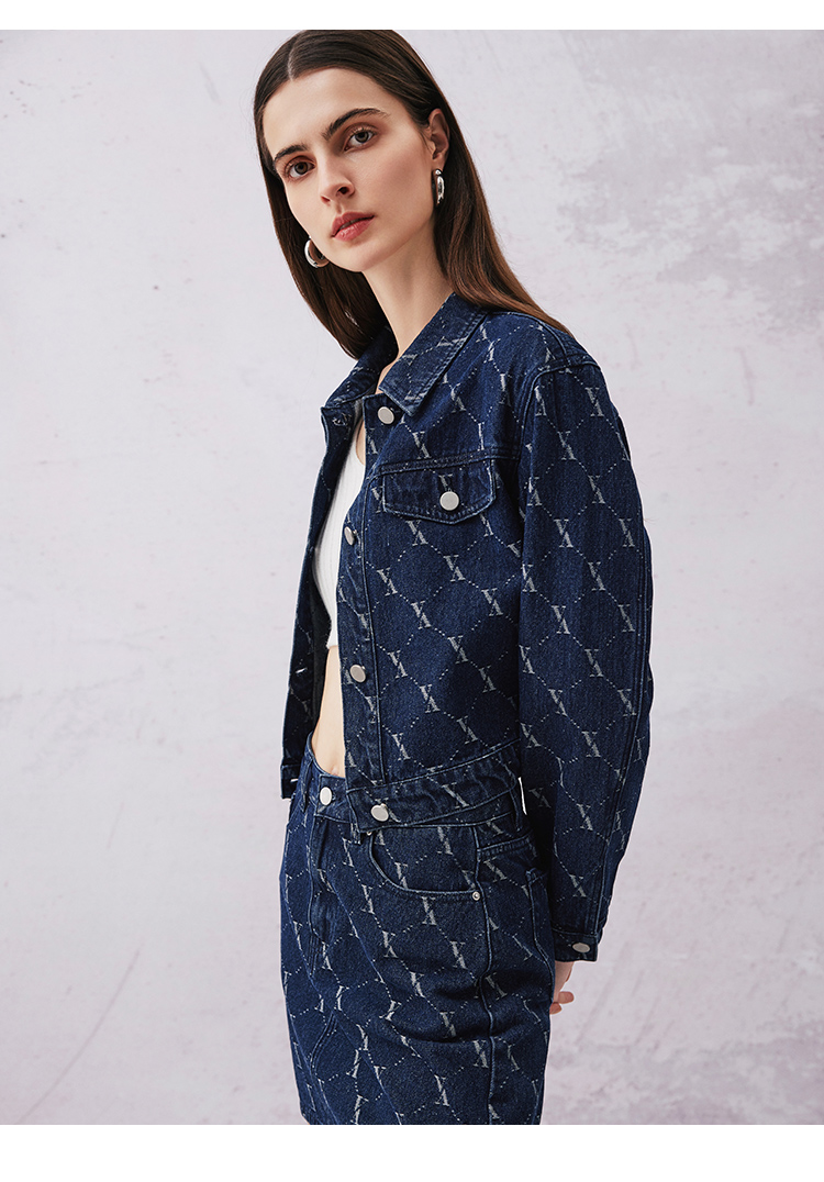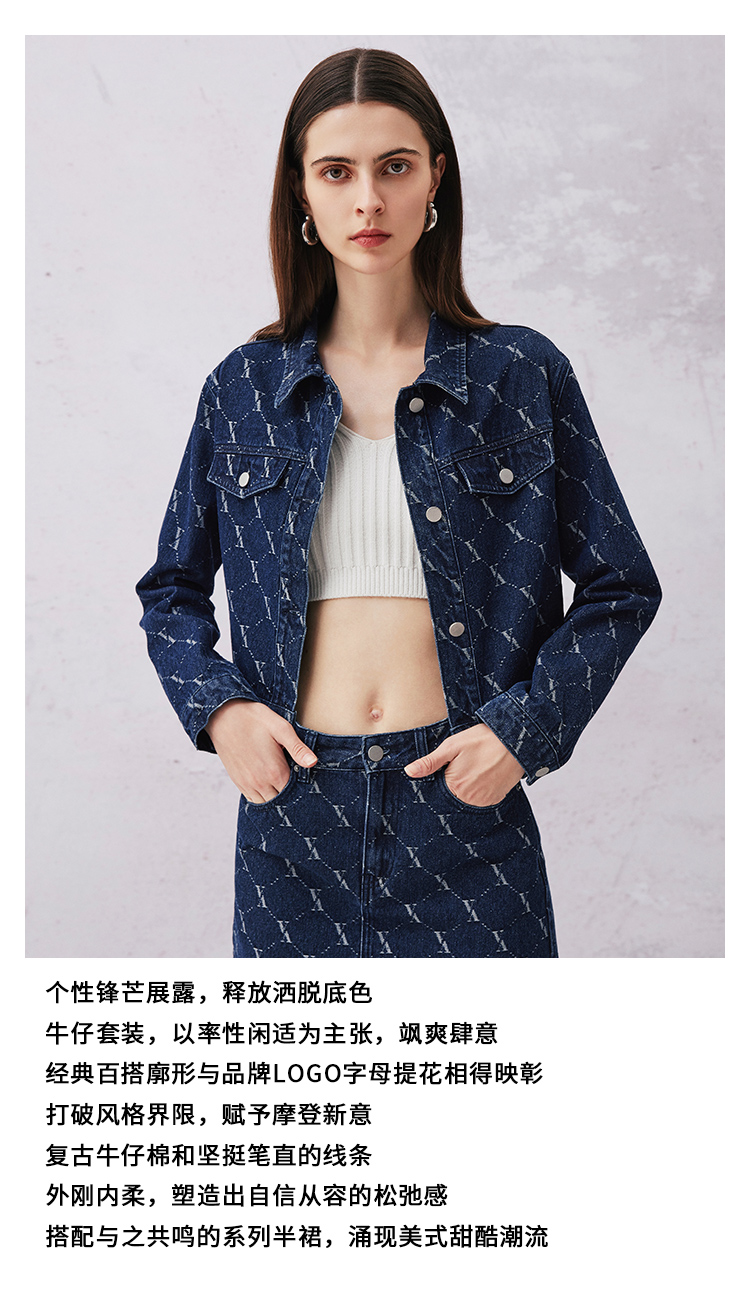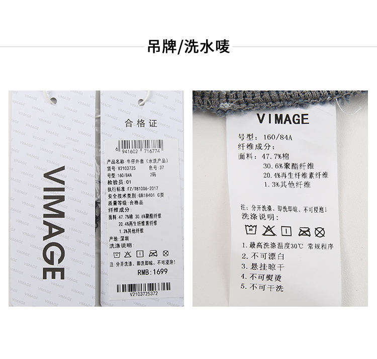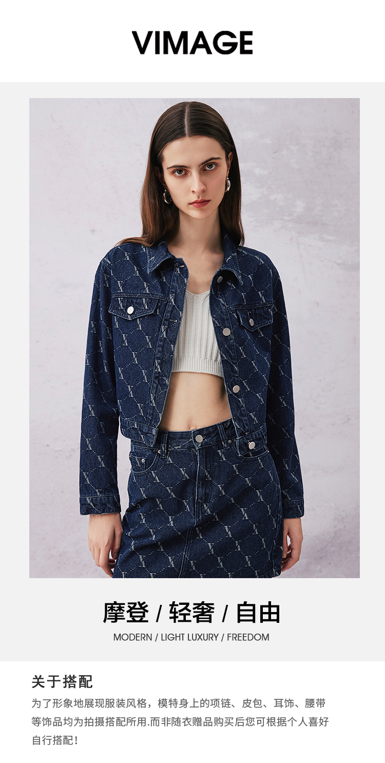 VIMAGE纬漫纪春季新款时尚气质收腰牛仔短外套V2103725
