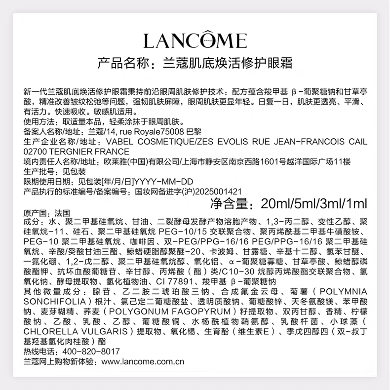 【3月】兰蔻超修小黑瓶眼霜20ml