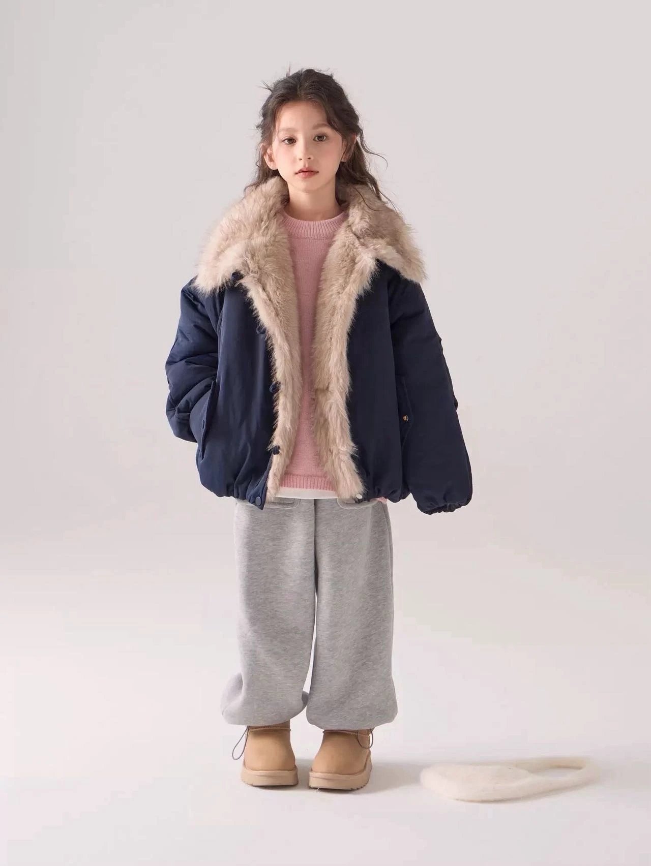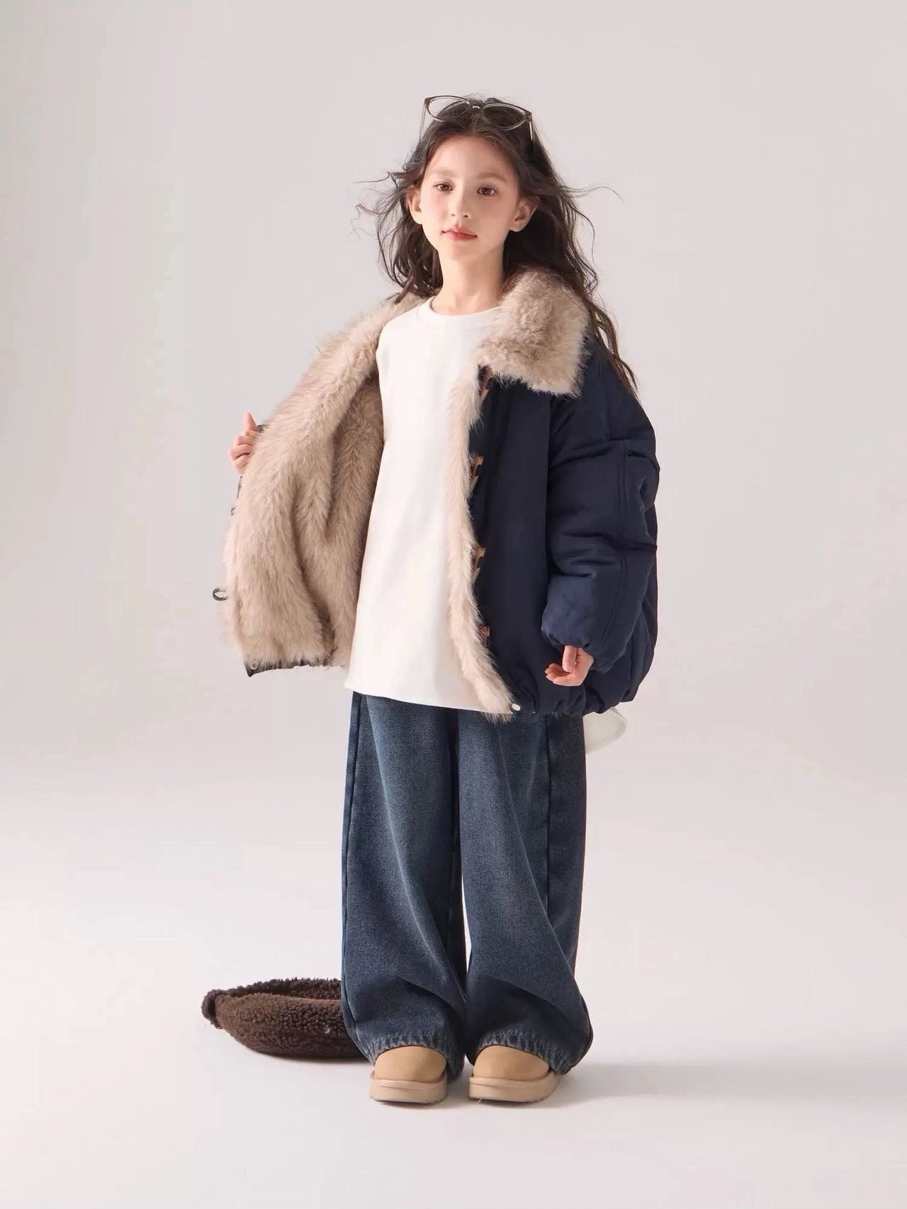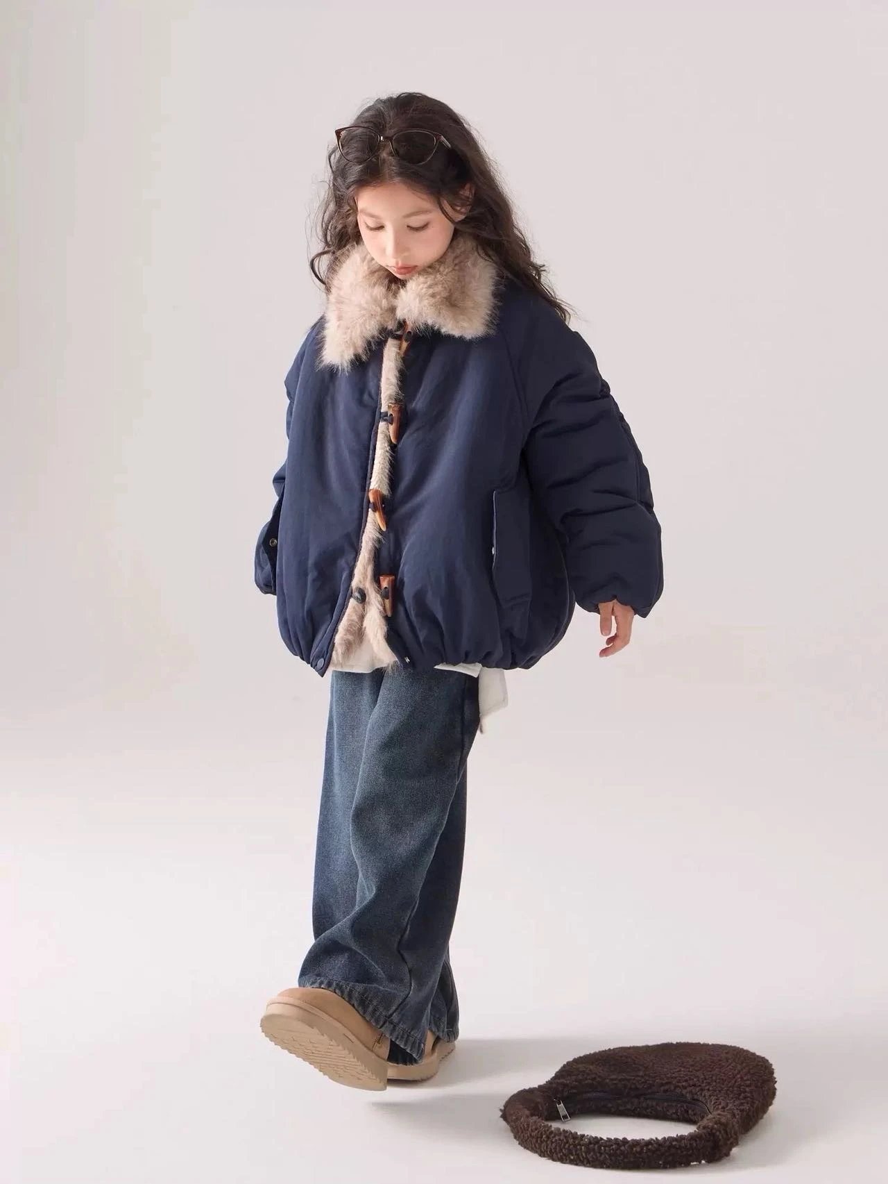 出口韩国~【儿童座山雕大毛领加厚棉服】把“暖贵松弛感”焊在身上~