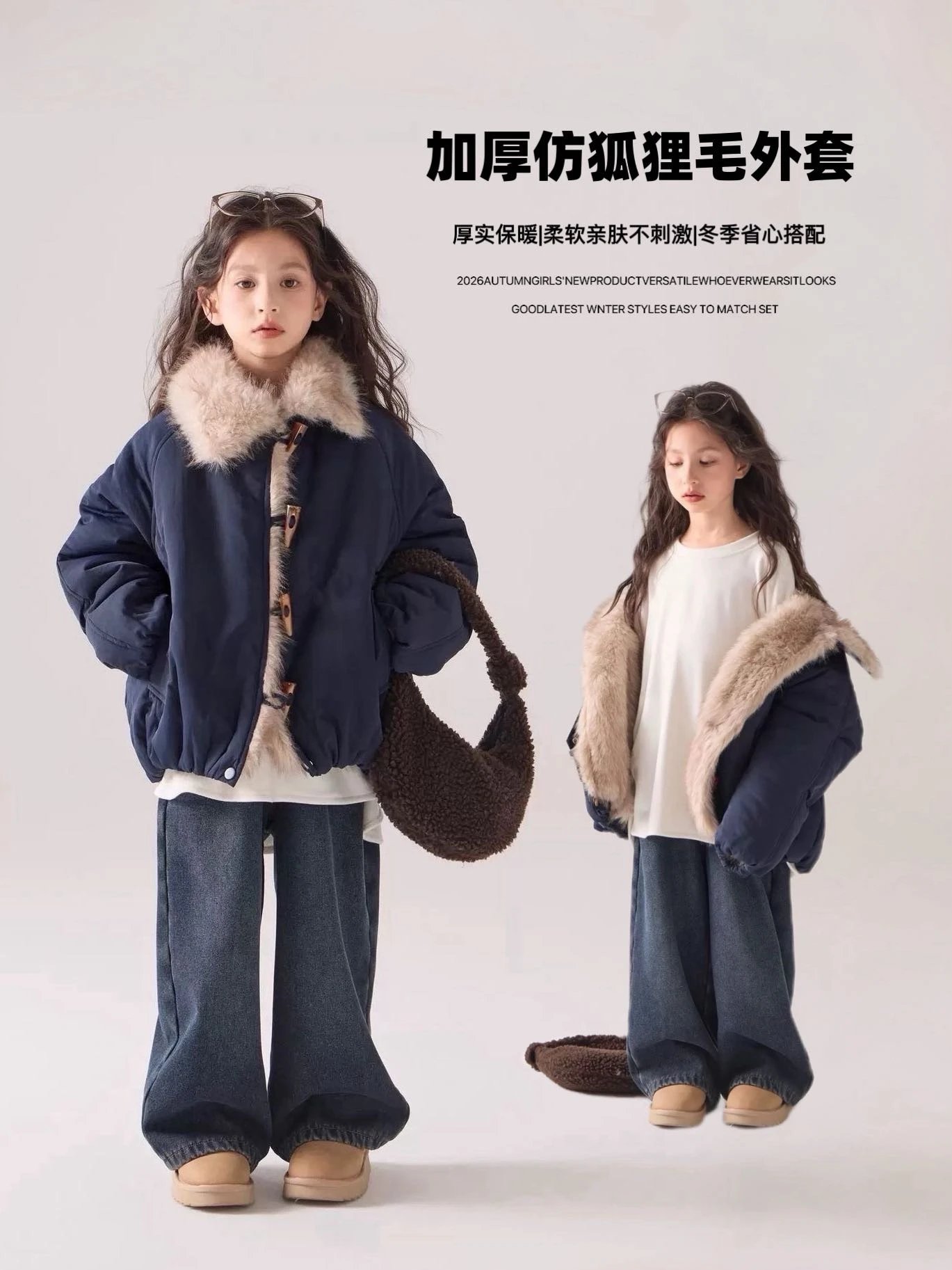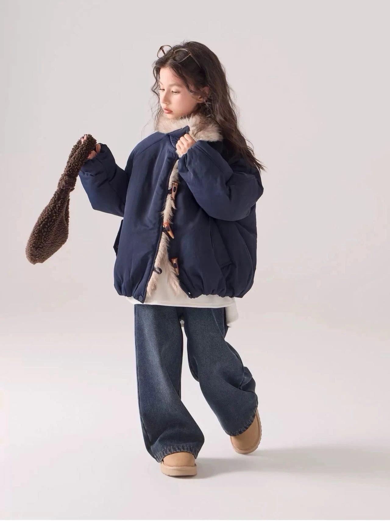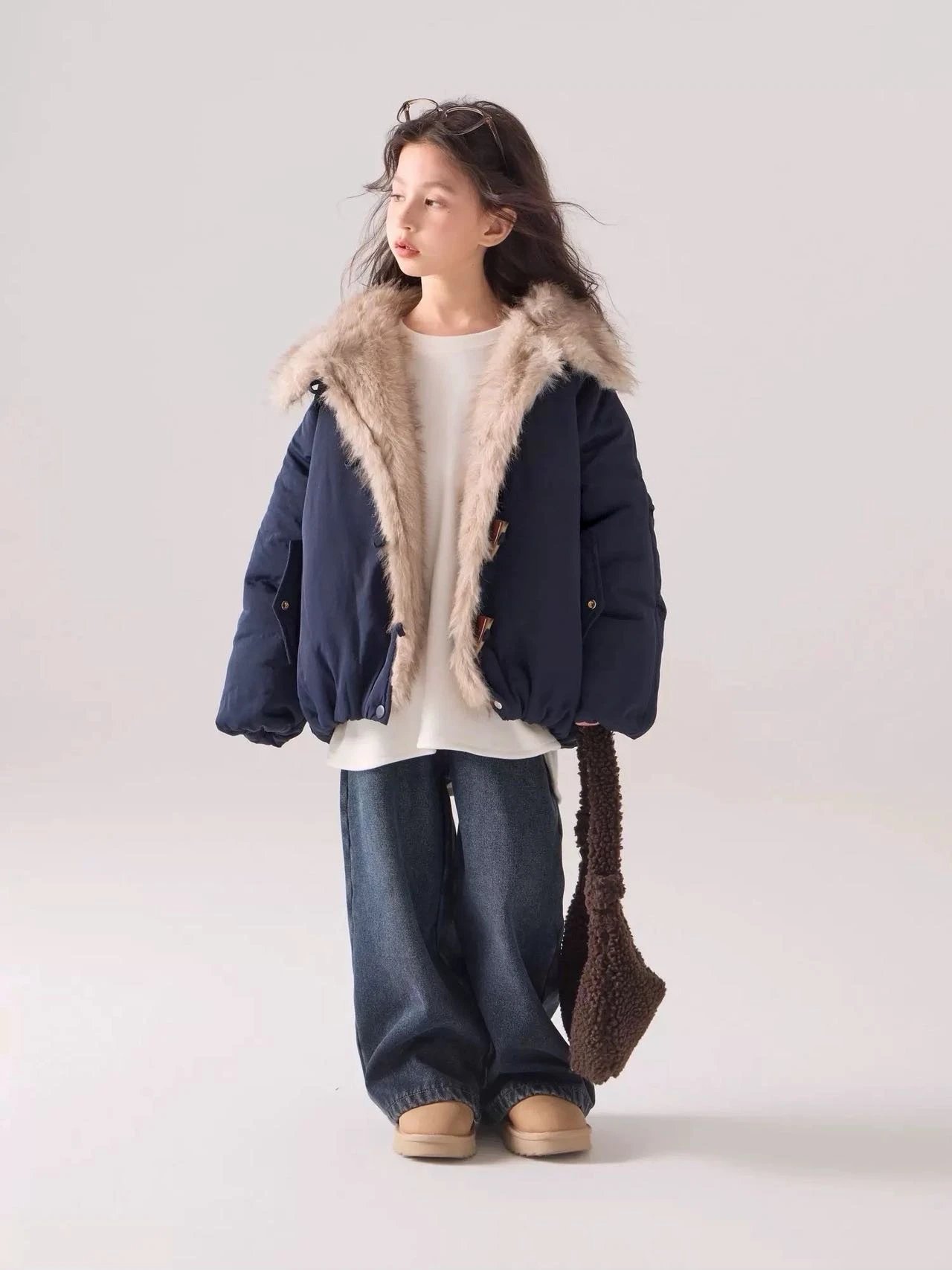 出口韩国~【儿童座山雕大毛领加厚棉服】把“暖贵松弛感”焊在身上~