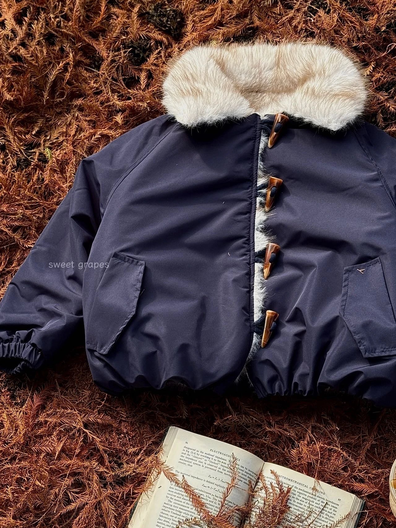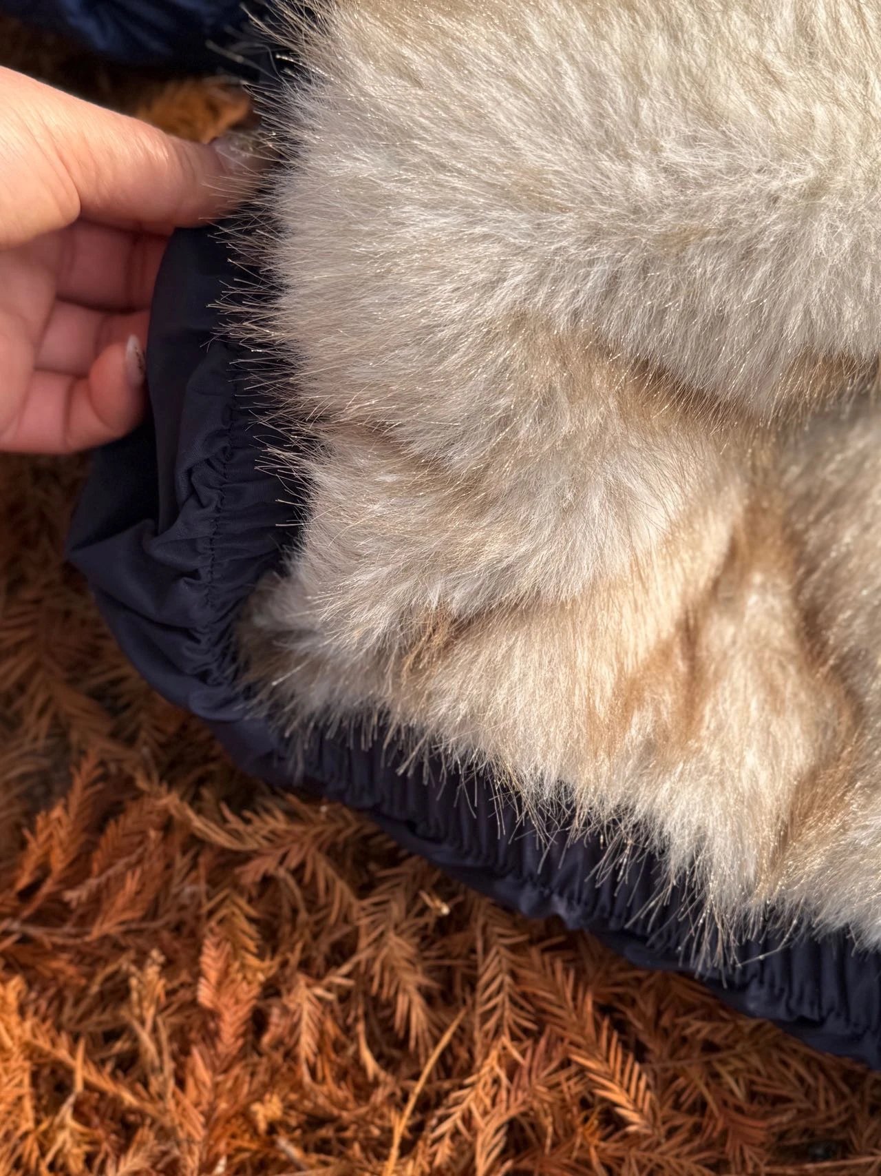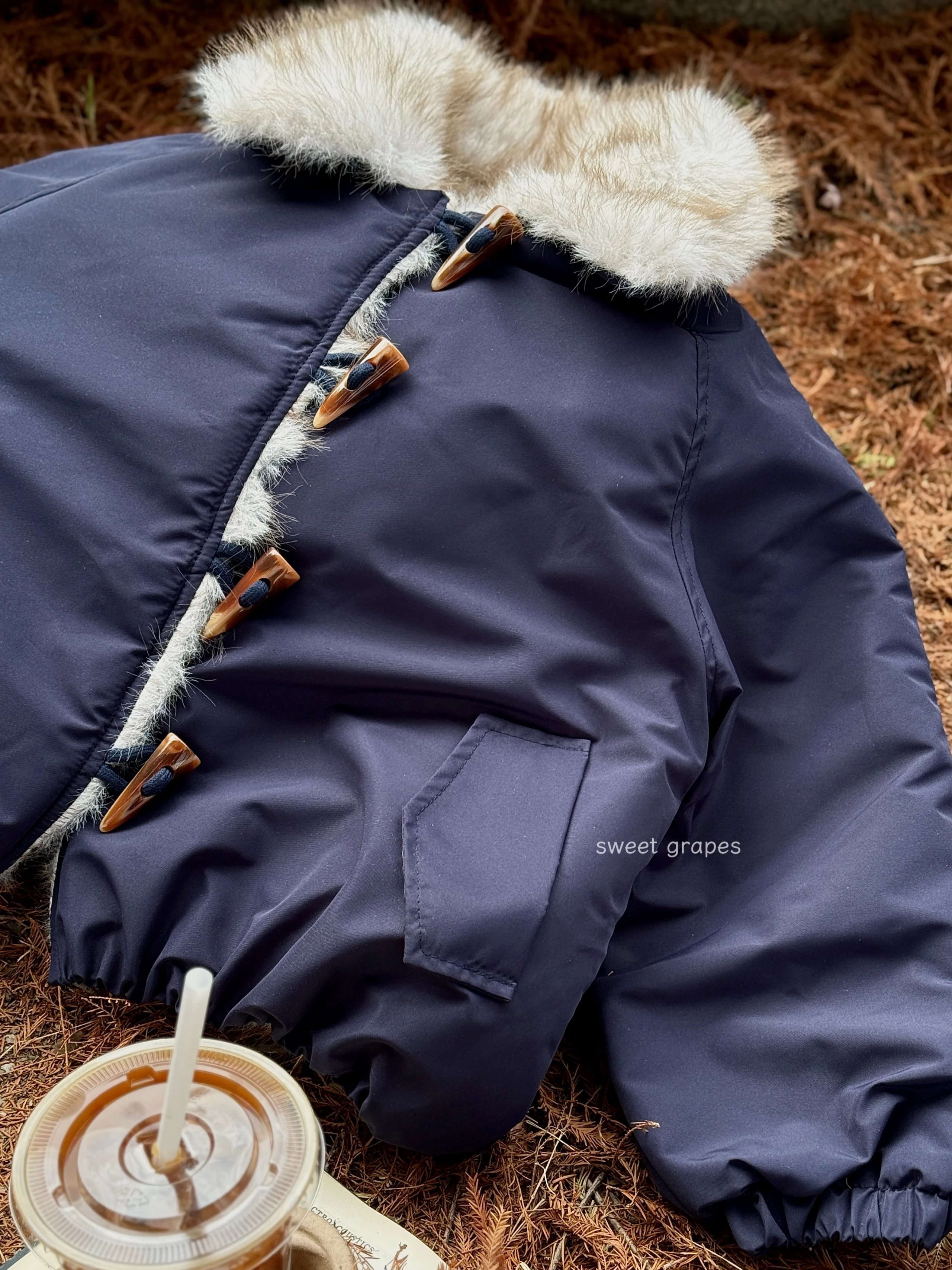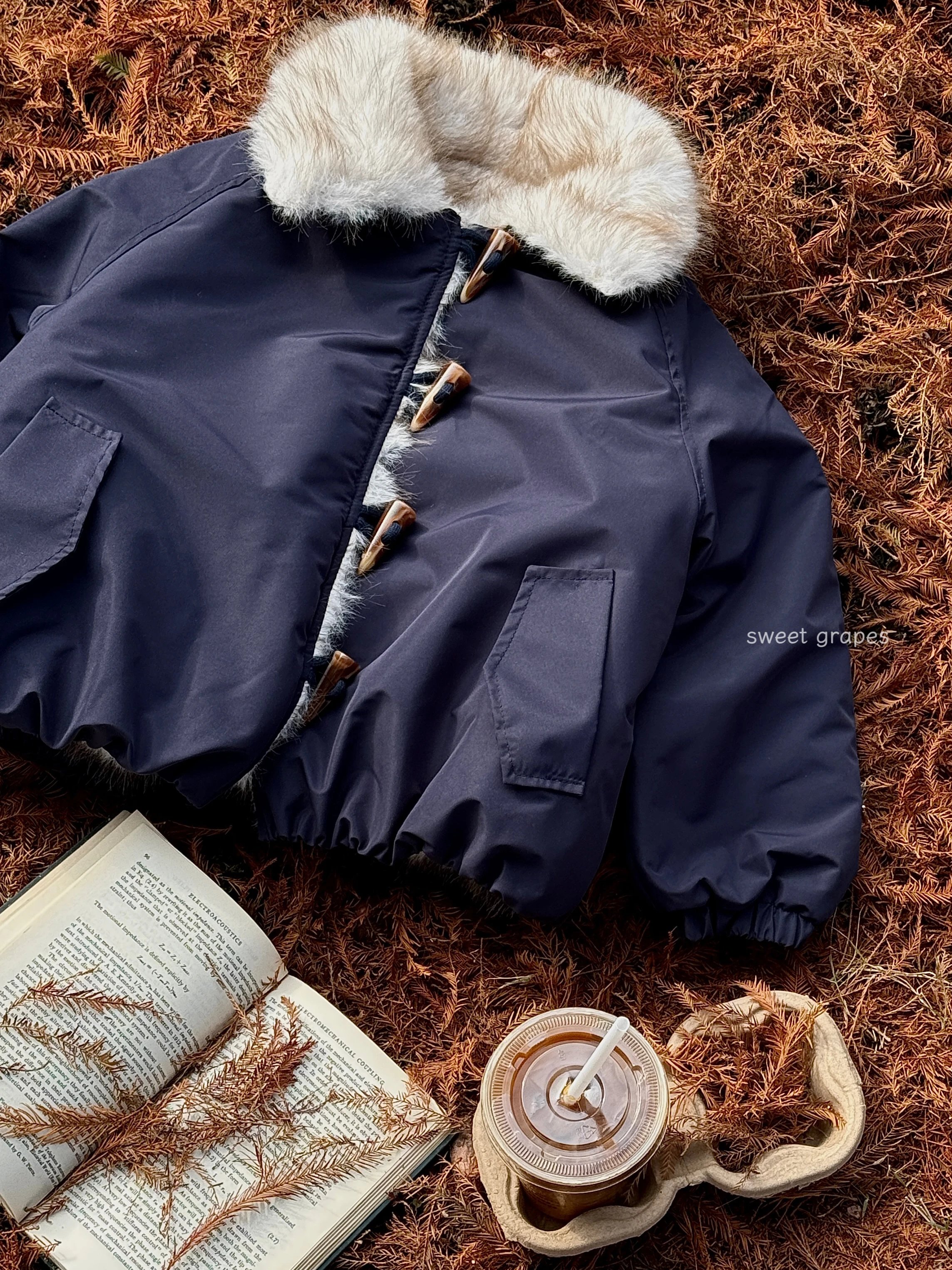 ✔️藏青色三防面料+仿真狐狸毛,蓝霜狐质感超赞,上身自带高级滤镜,oversize轮廓藏肉,气场全开!