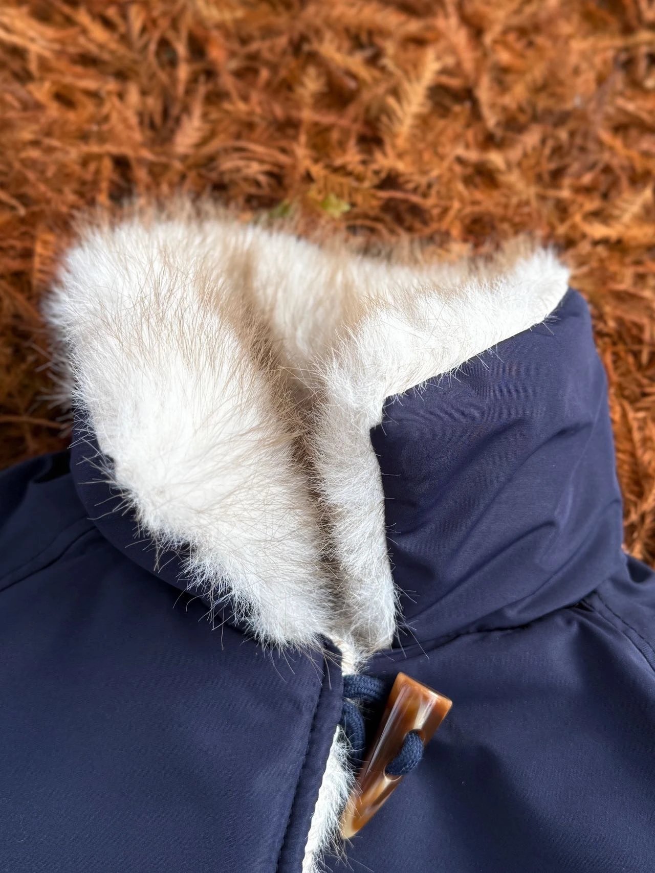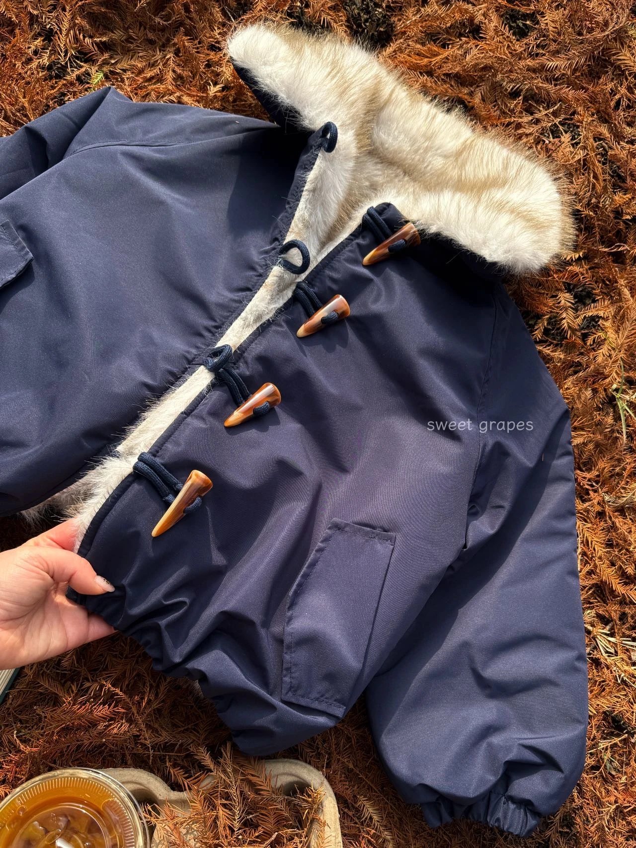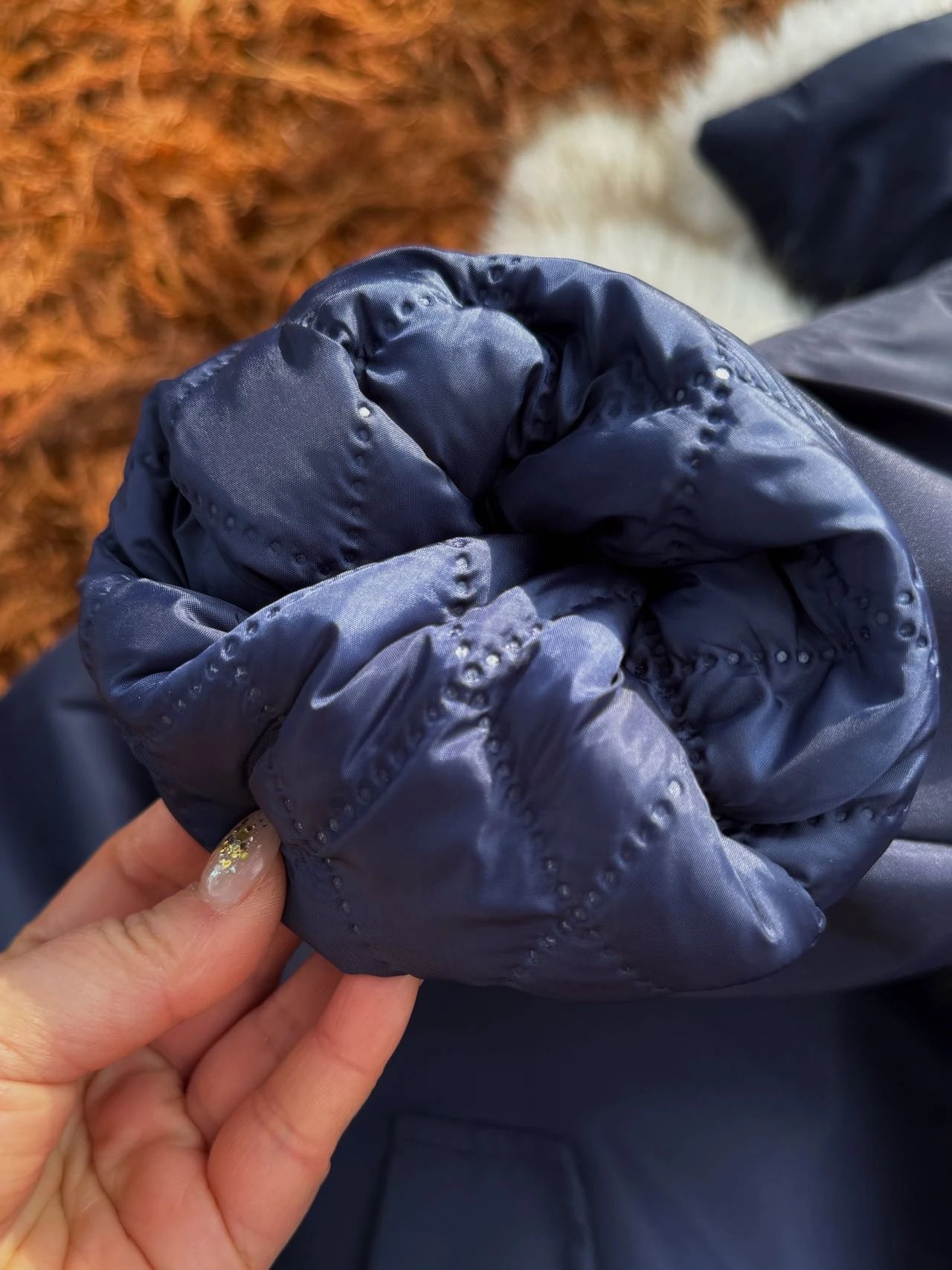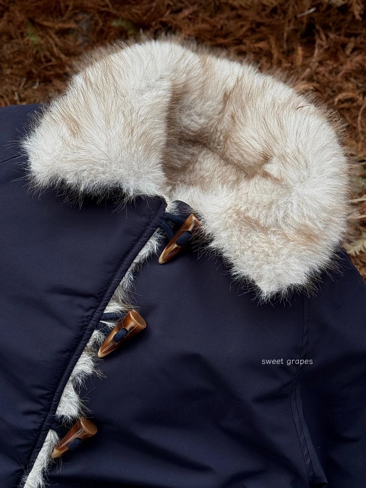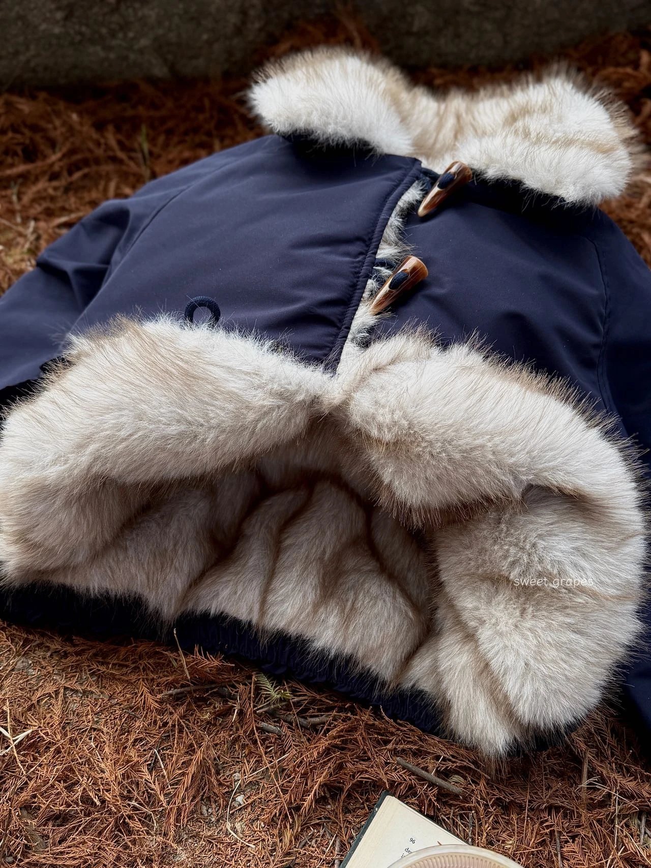 ✔️藏青色三防面料+仿真狐狸毛,蓝霜狐质感超赞,上身自带高级滤镜,oversize轮廓藏肉,气场全开!