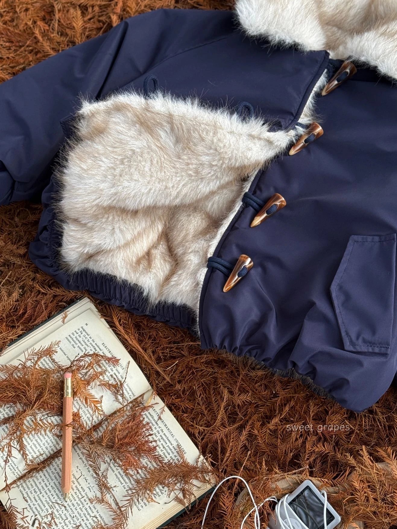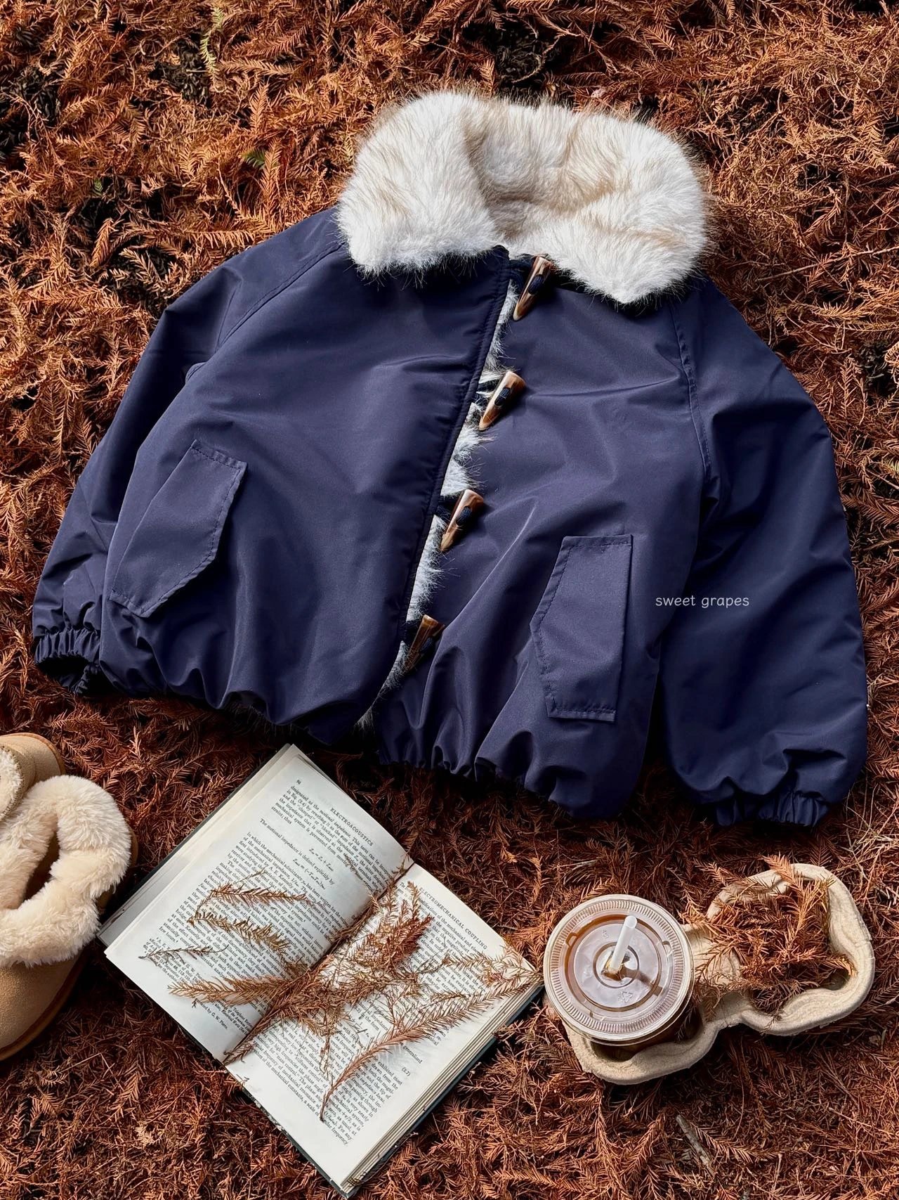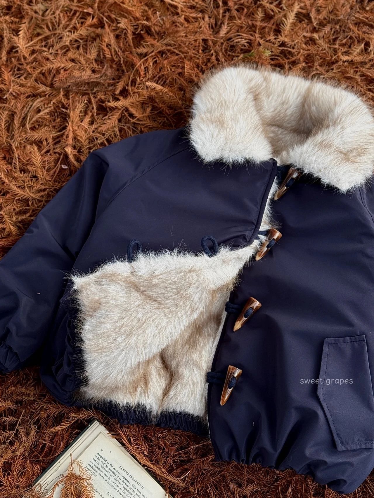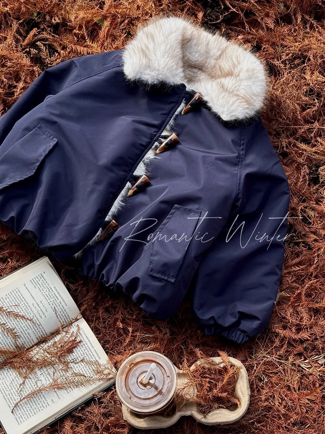 ✔️藏青色三防面料+仿真狐狸毛,蓝霜狐质感超赞,上身自带高级滤镜,oversize轮廓藏肉,气场全开!