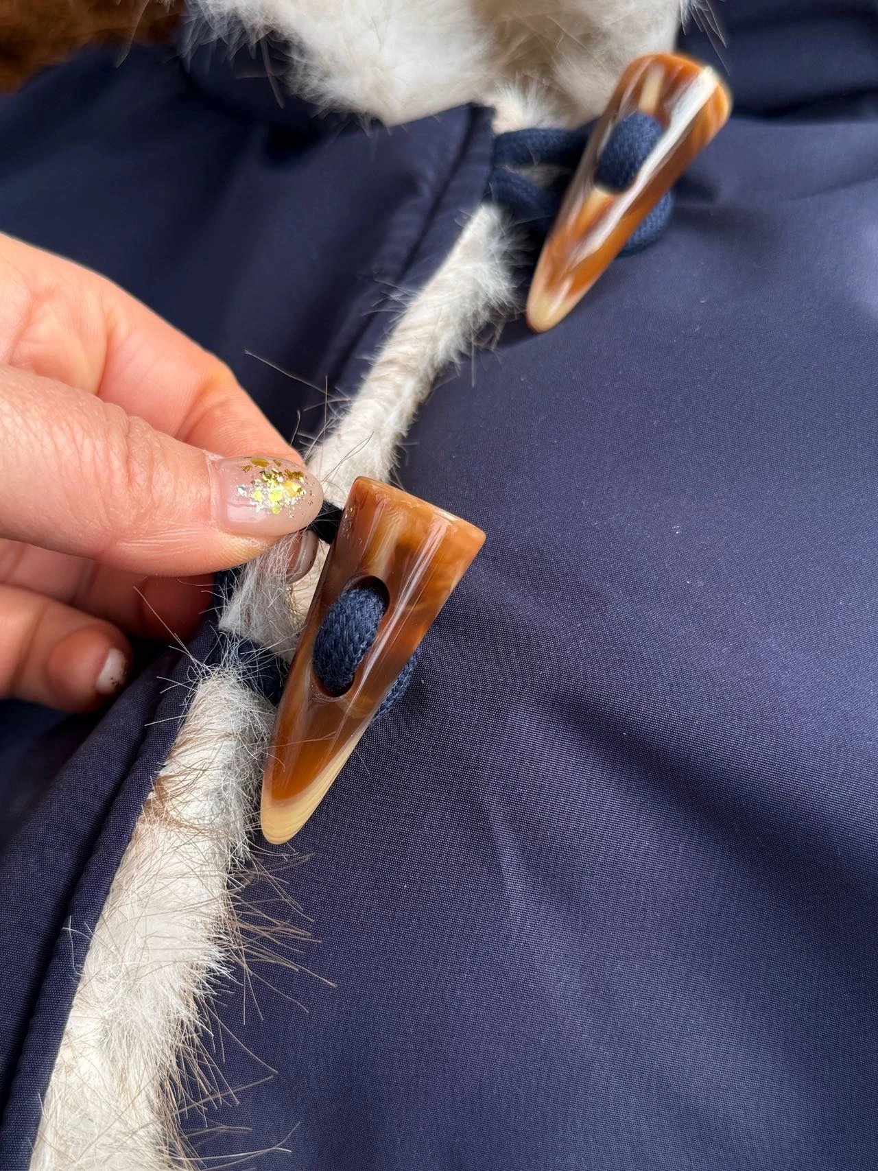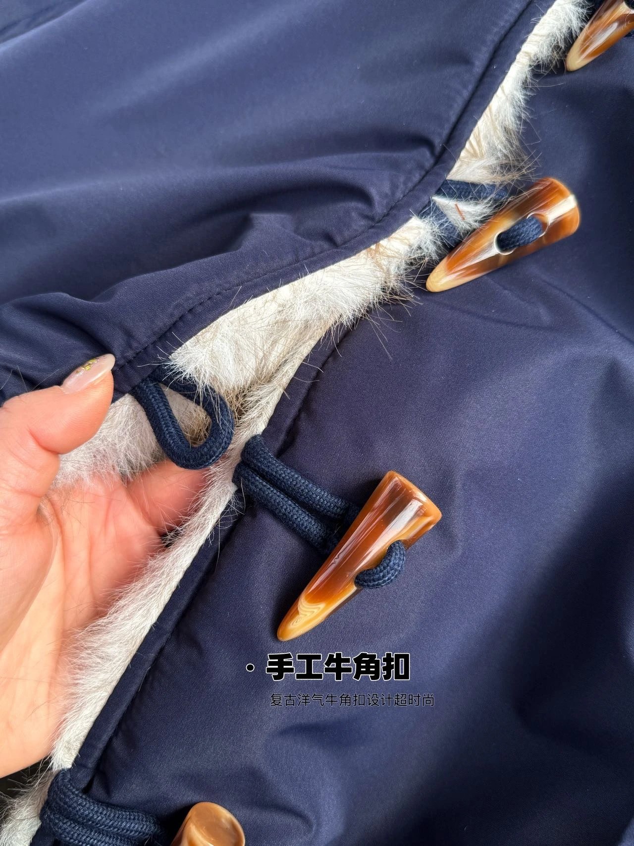 手工牛角扣+毛绒绒的质地,点亮了整个冬天