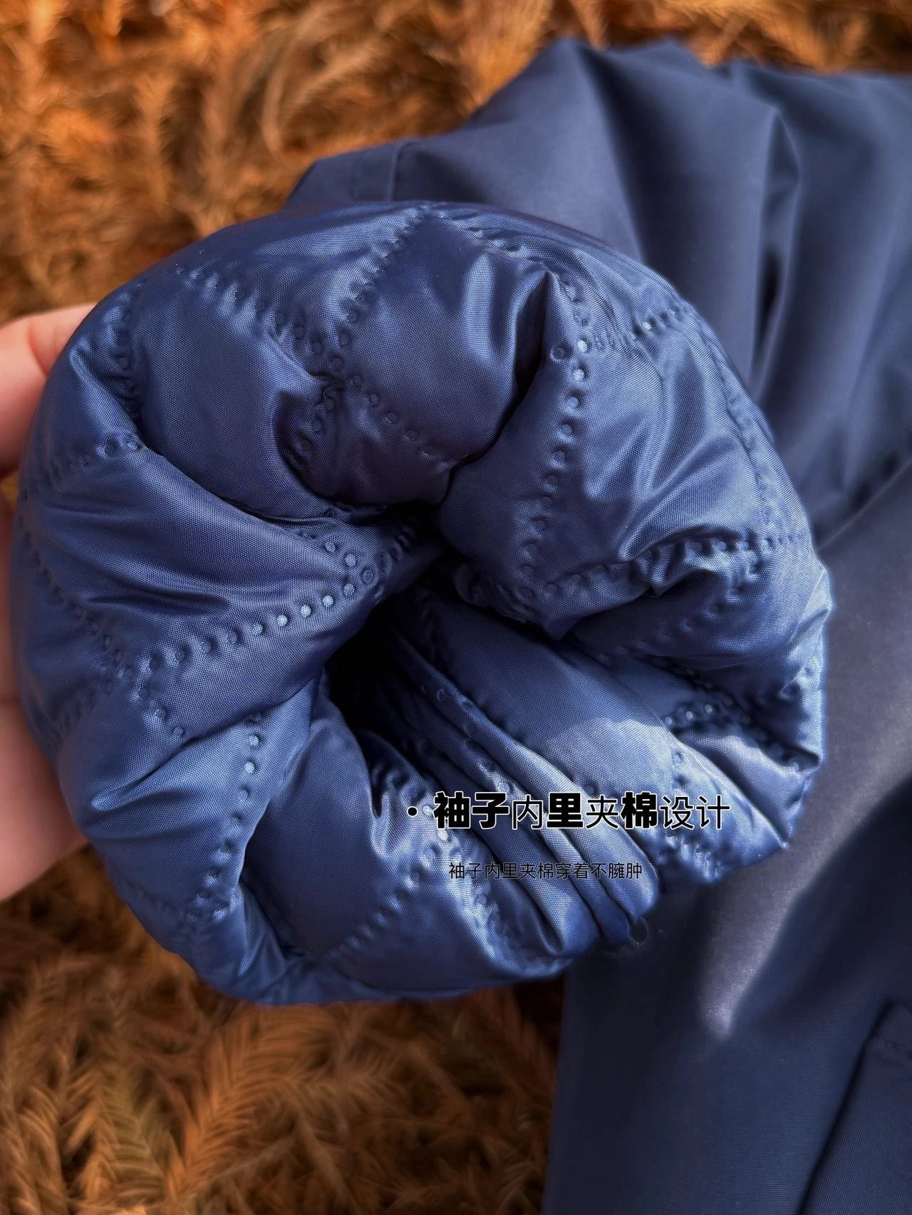 袖子菱格压棉的,保暖的同时又不显臃肿