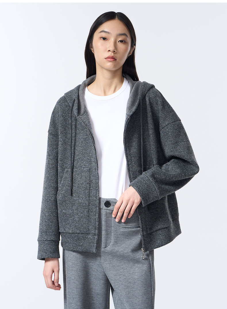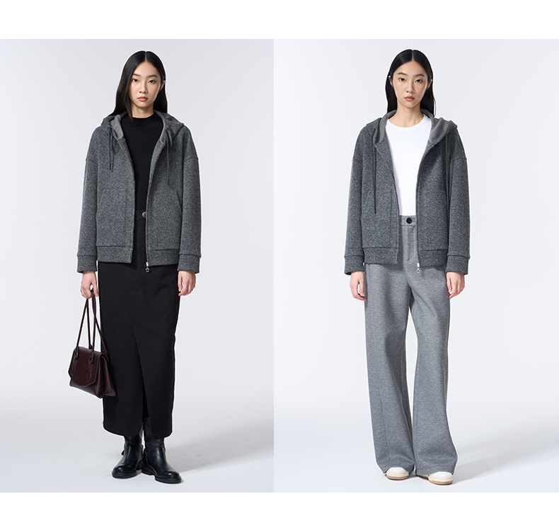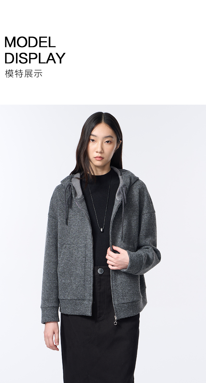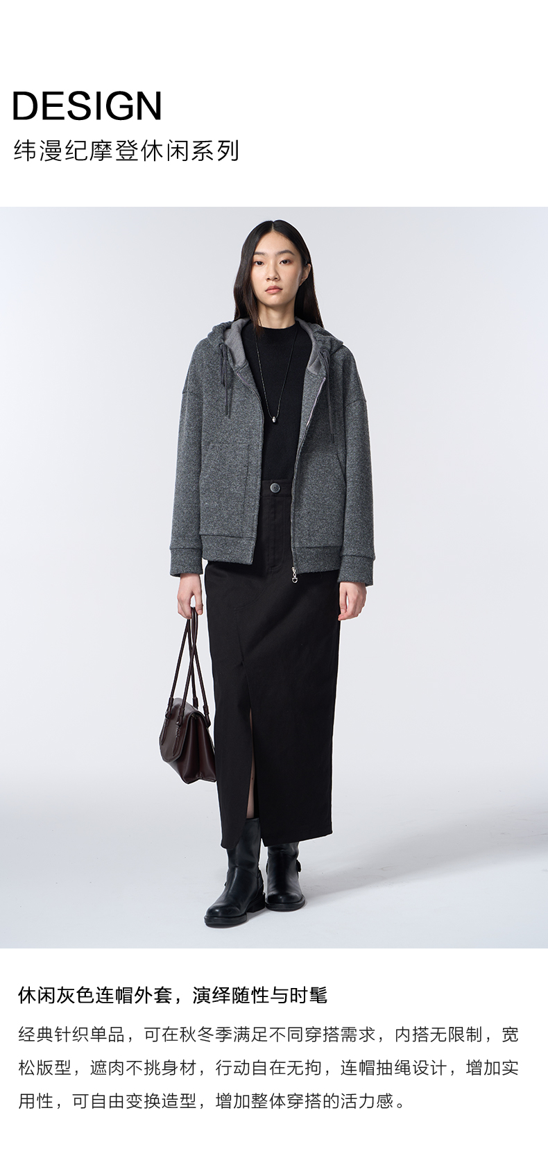 VIMAGE纬漫纪深灰色高级感带帽2025秋冬新款时尚减龄卫衣外套V2403104