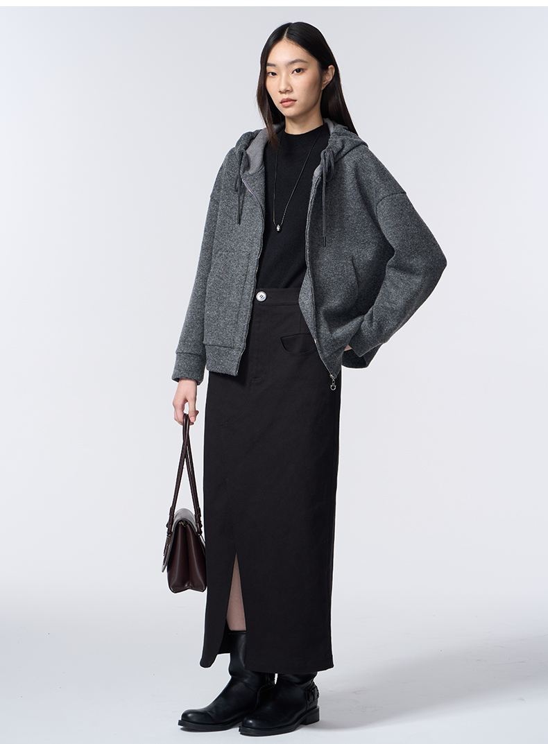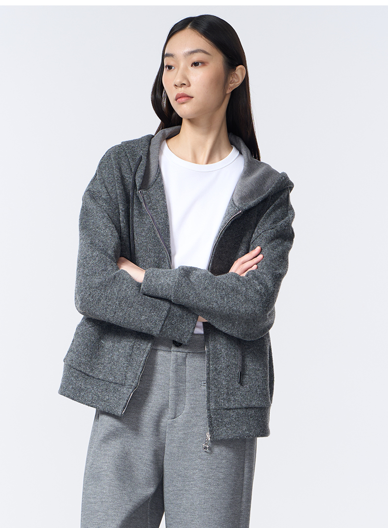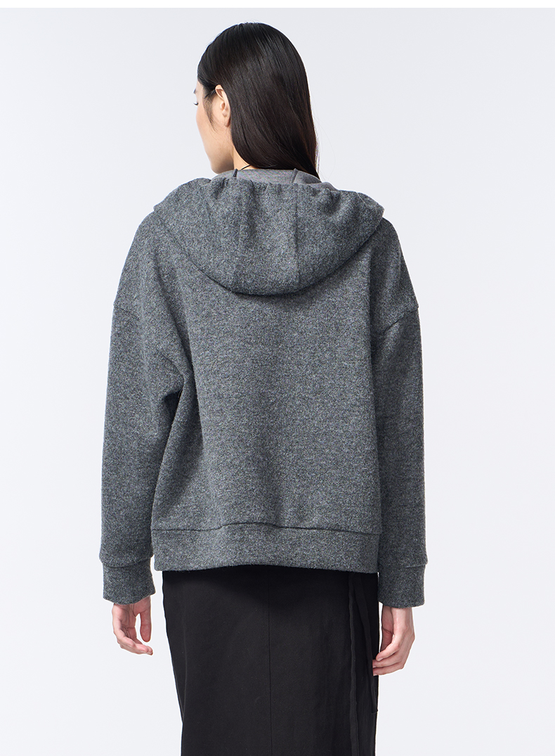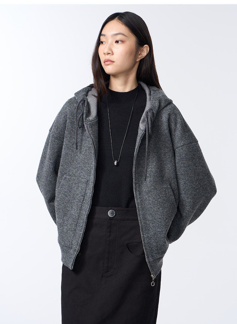 VIMAGE纬漫纪深灰色高级感带帽2025秋冬新款时尚减龄卫衣外套V2403104