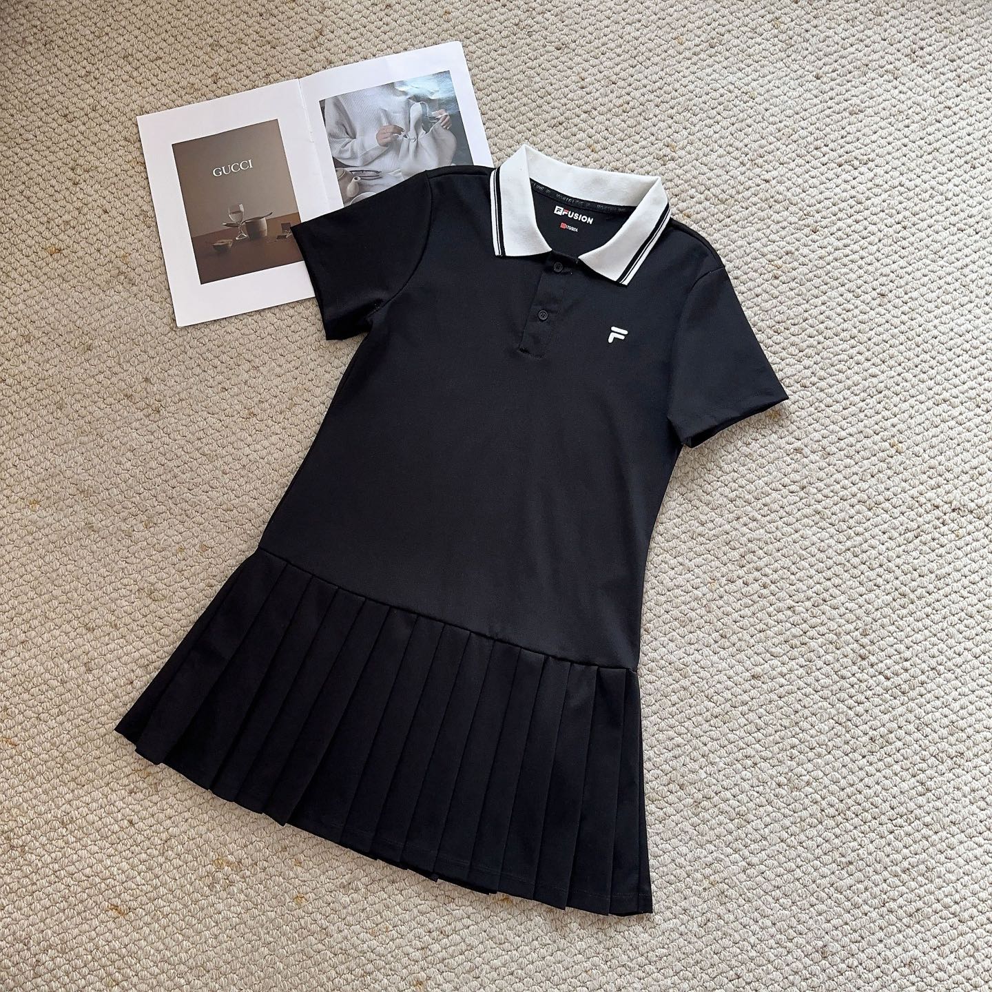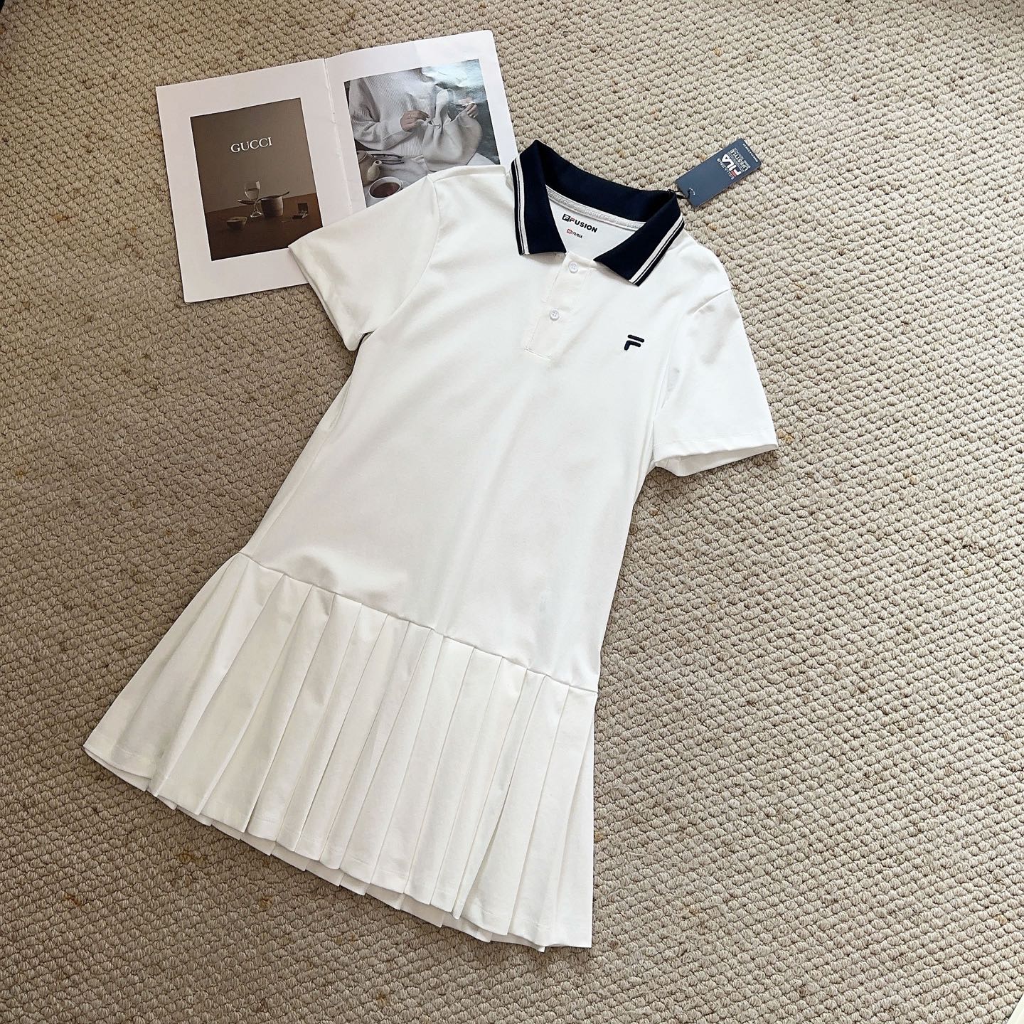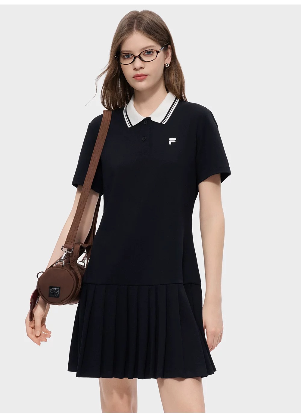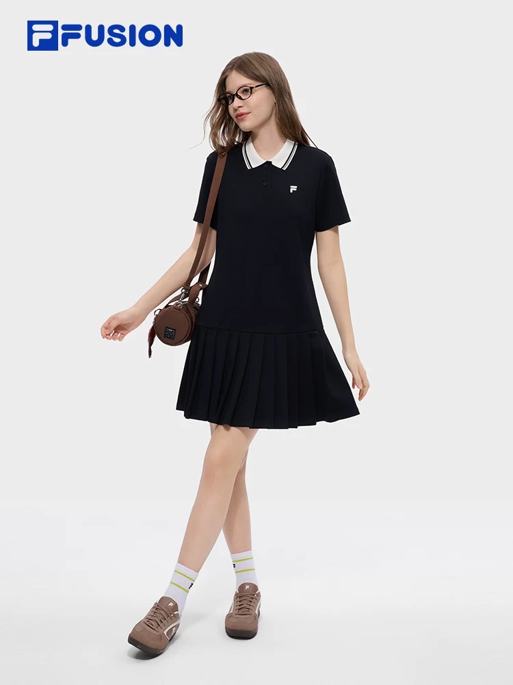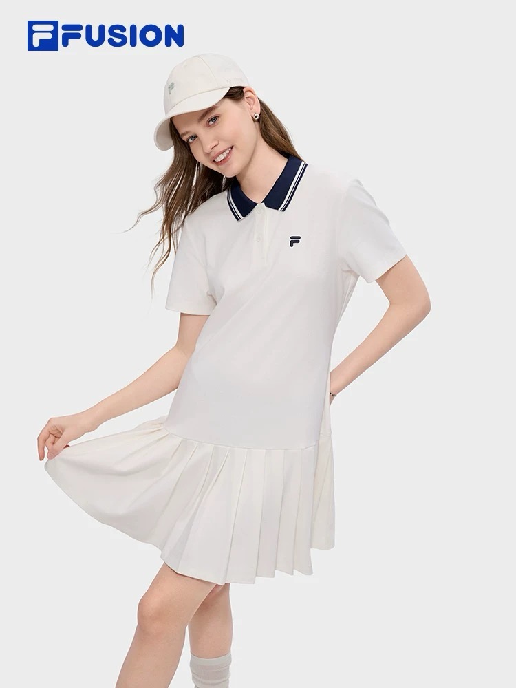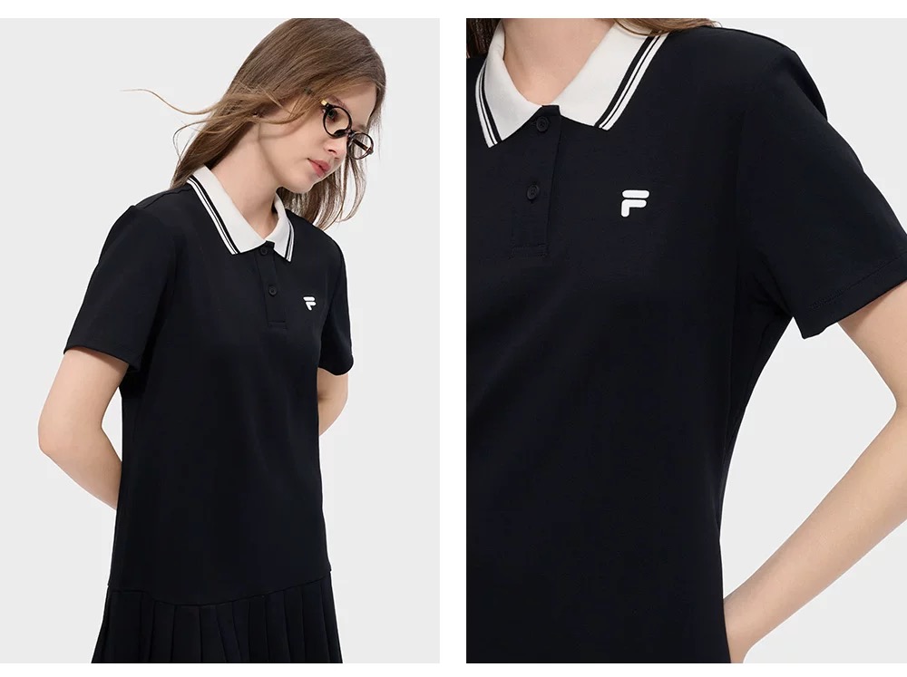 斐乐经典polo领百褶连衣裙