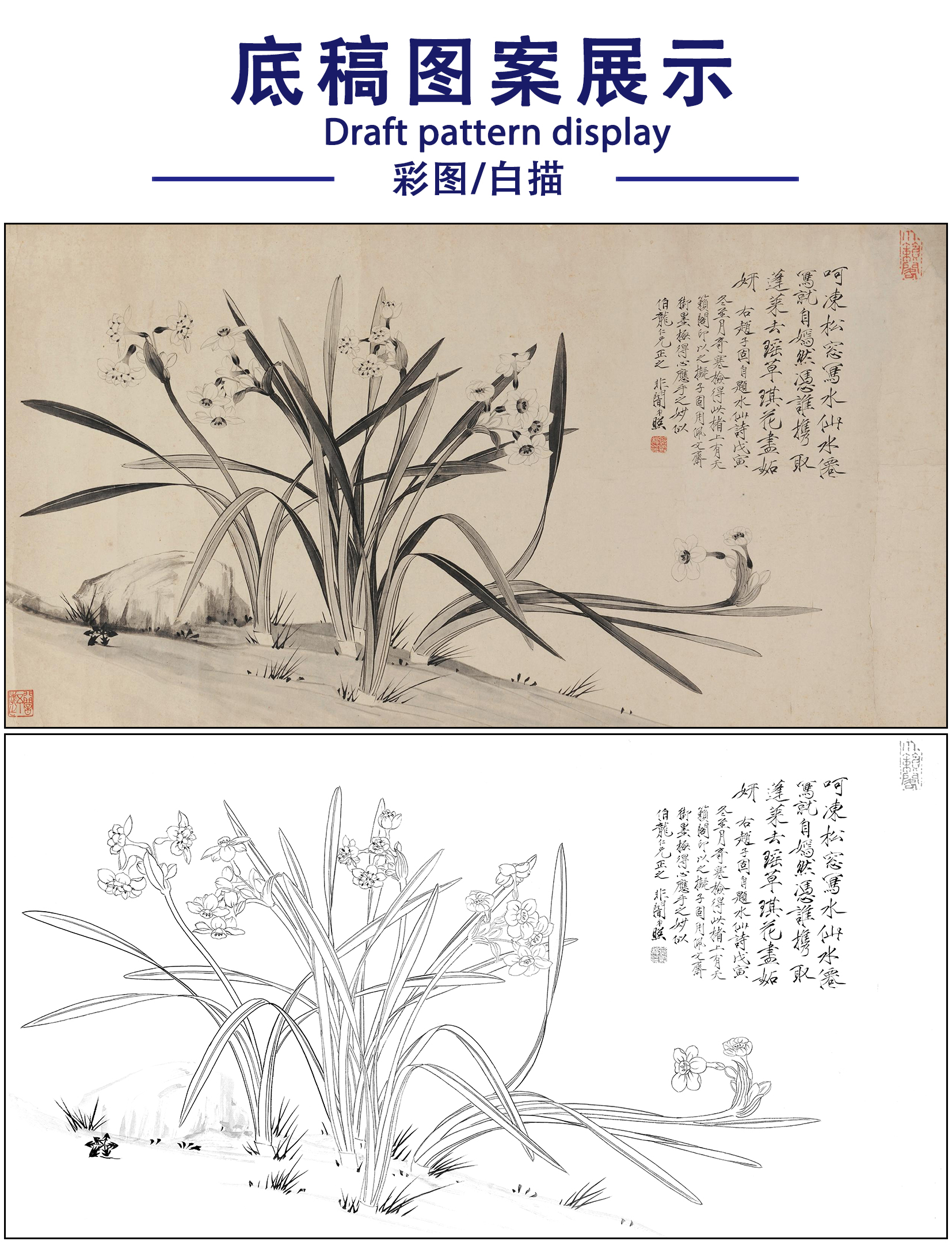 于非闇花鸟工笔画白描底稿《水仙》临摹勾线高清打印稿FA13