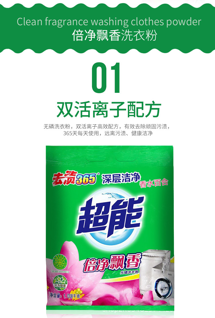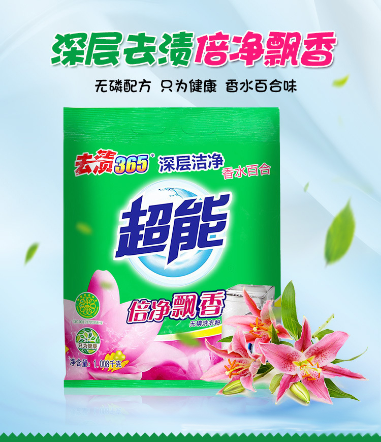 超能去渍365倍净飘香洗衣粉(无磷)1.008千克