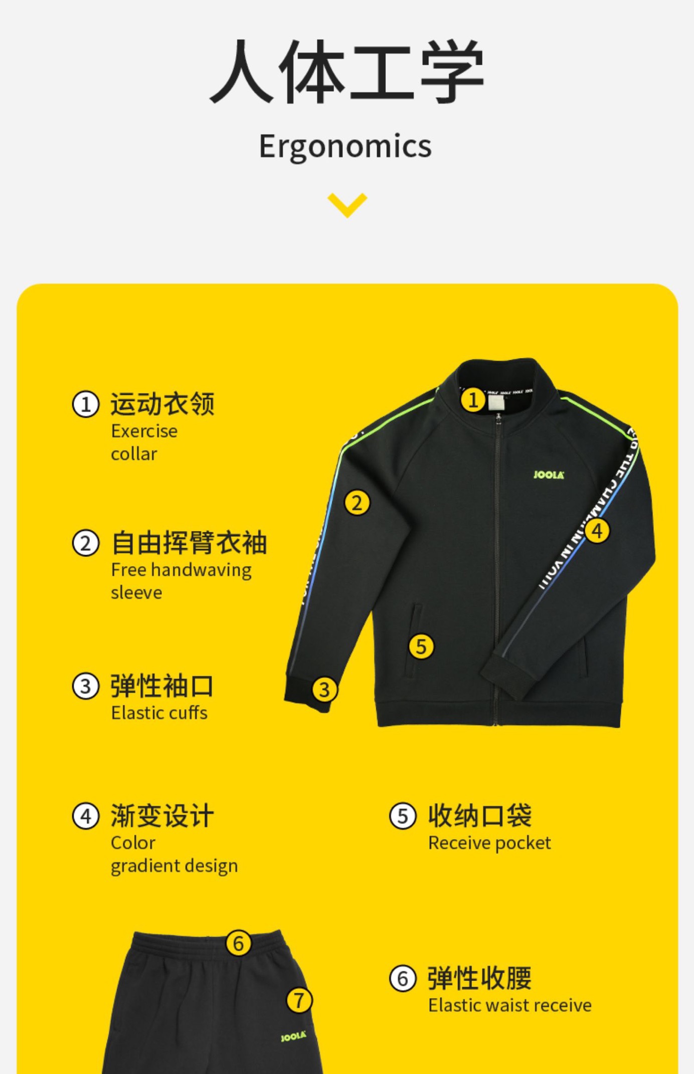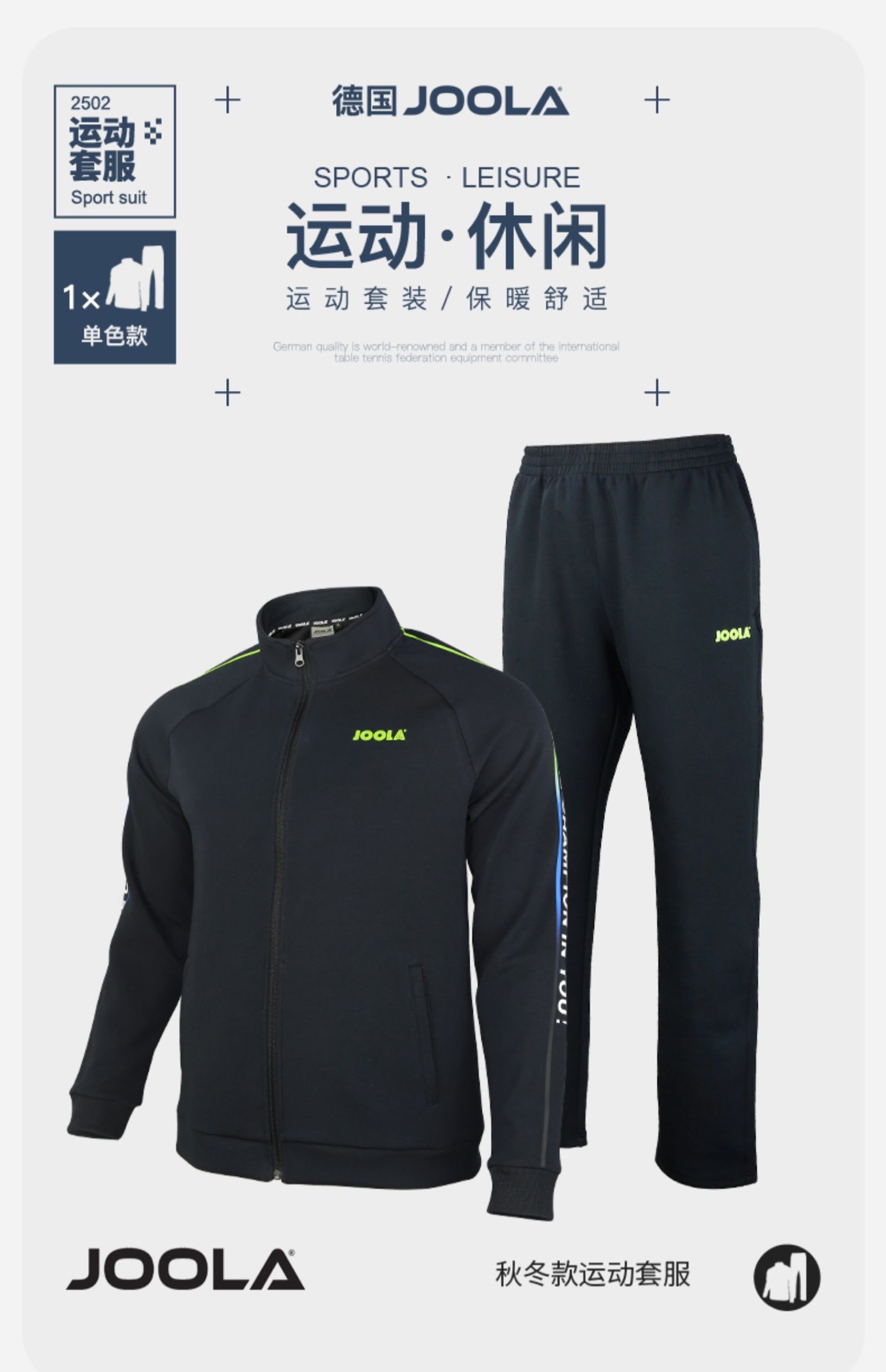 JOOLA优拉尤拉秋冬棉长袖长裤运动套装男女乒乓球服立领外套2502