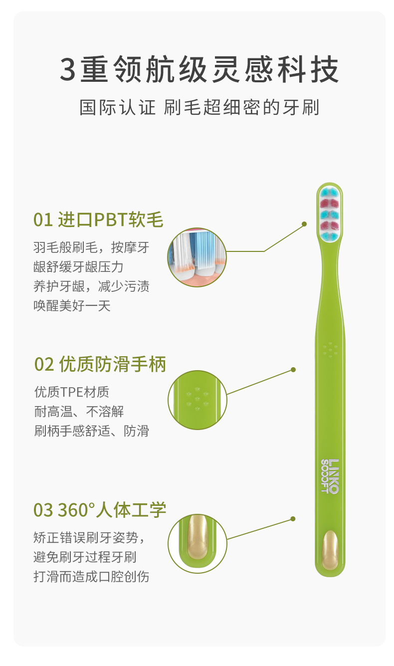 韩国Linko超细超软敏感护龈深层清洁多功能牙刷