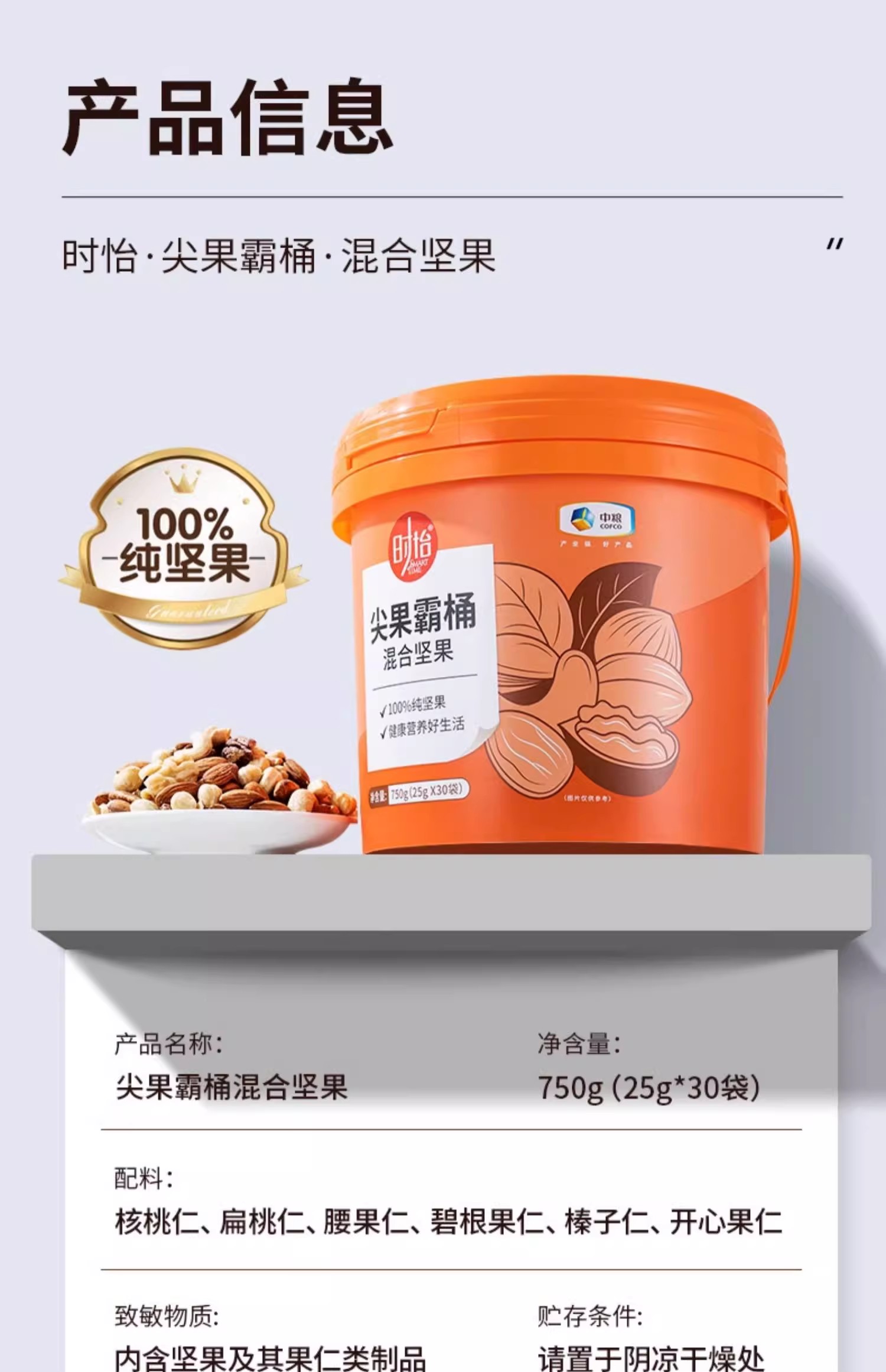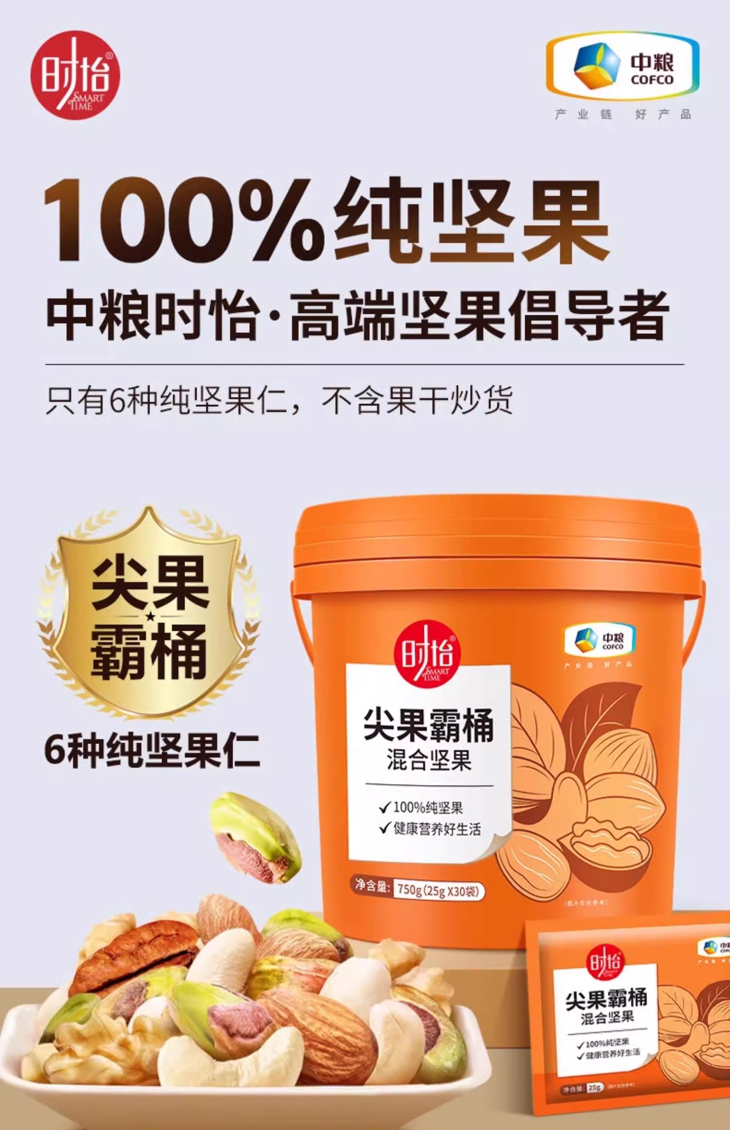 【高端纯坚果】中粮时怡尖果霸桶750g 新年好礼 健康礼盒