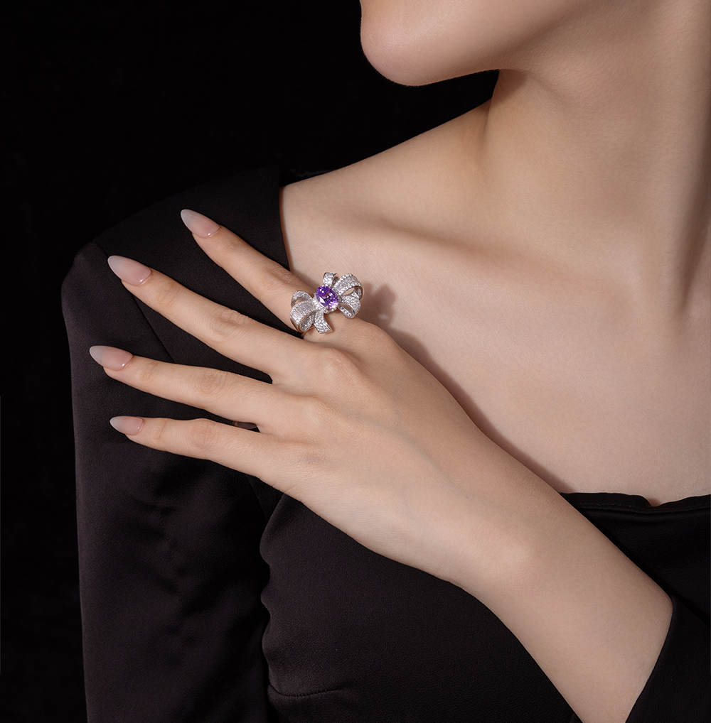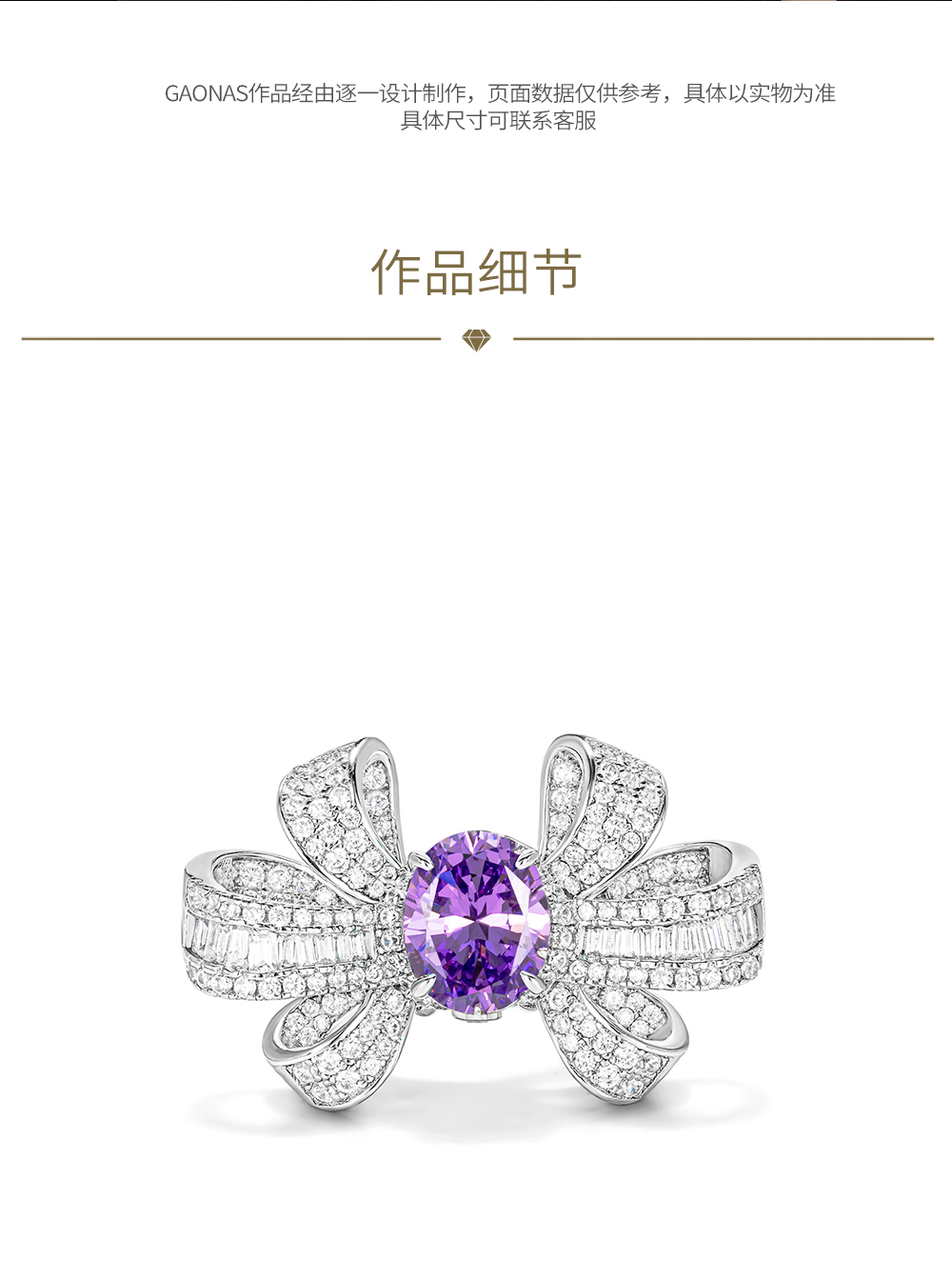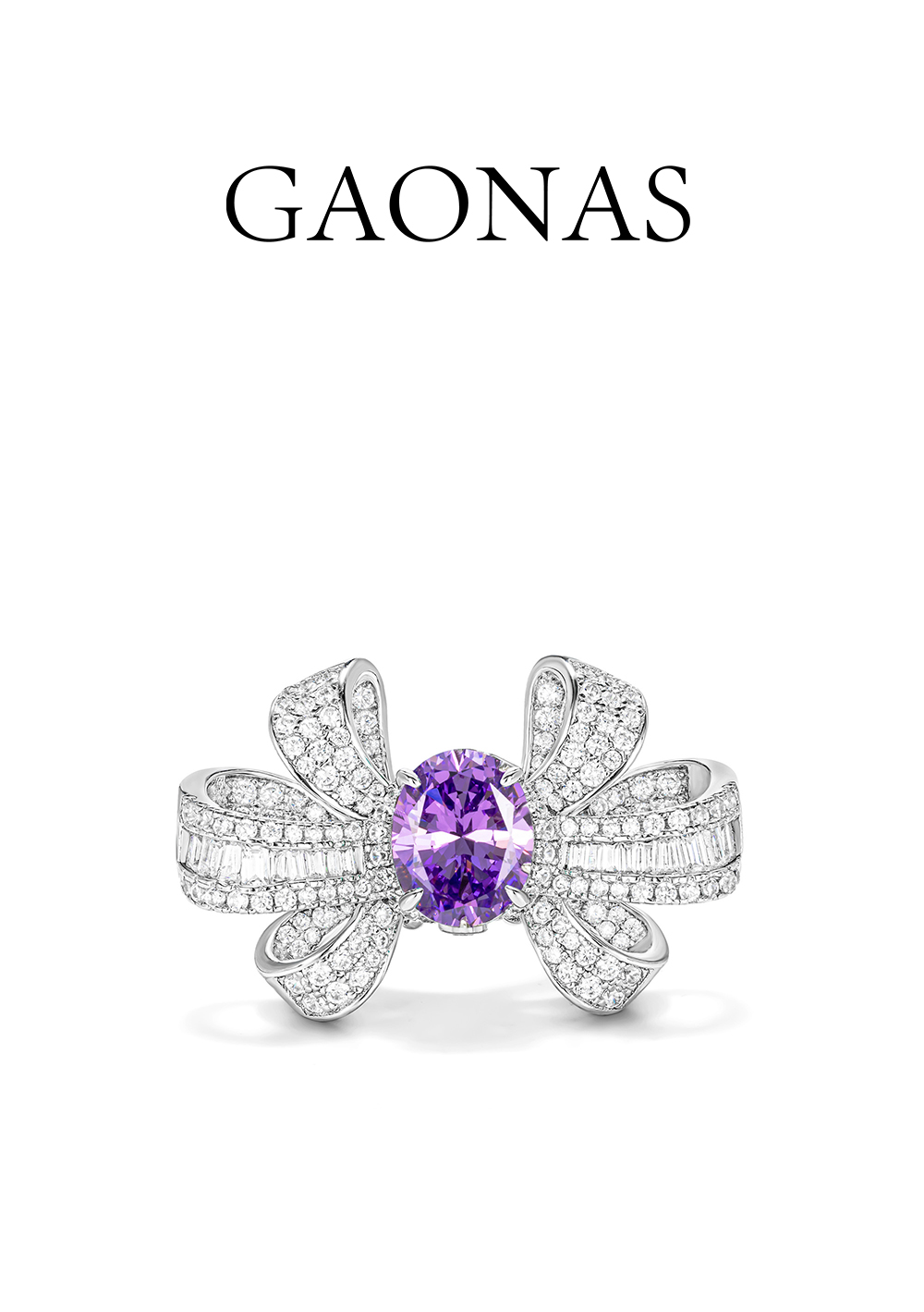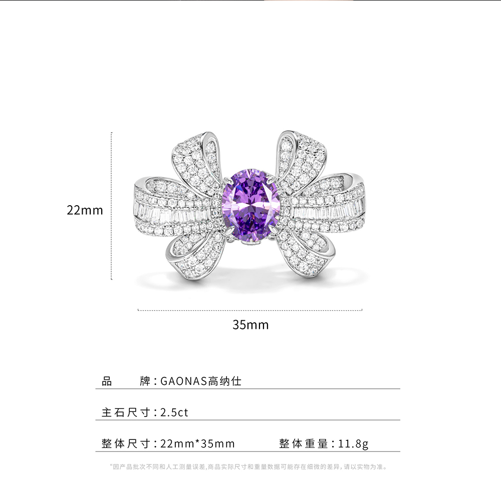 GAONAS 925银合成锆石戒指 紫气盈门 经典美紫色蝴蝶戒指11238JPR