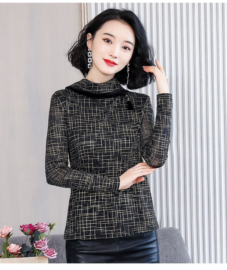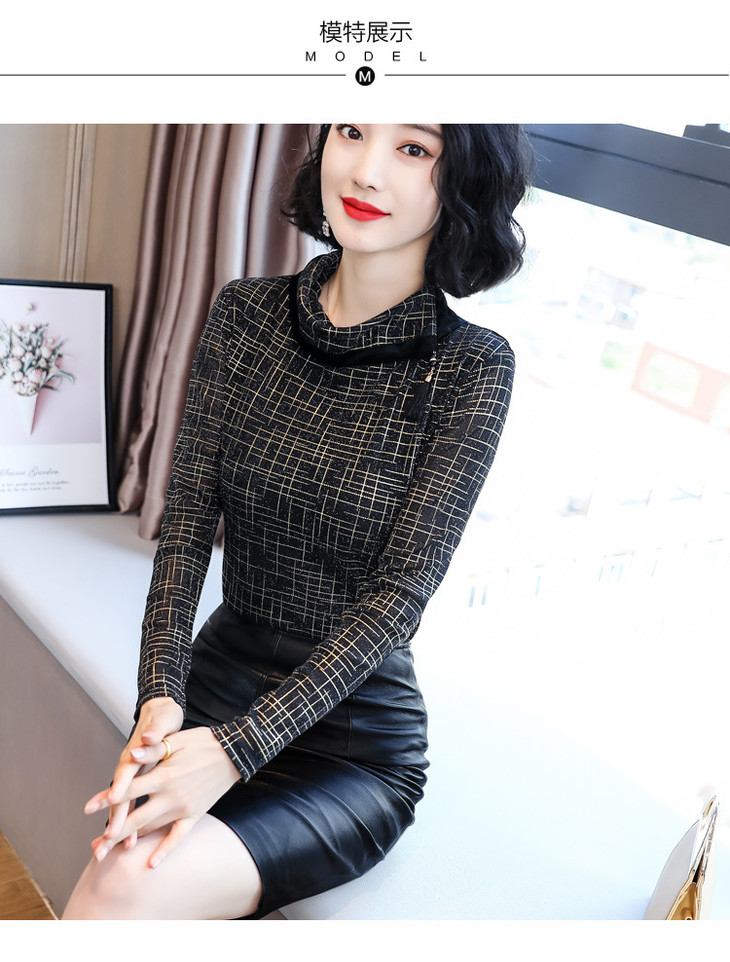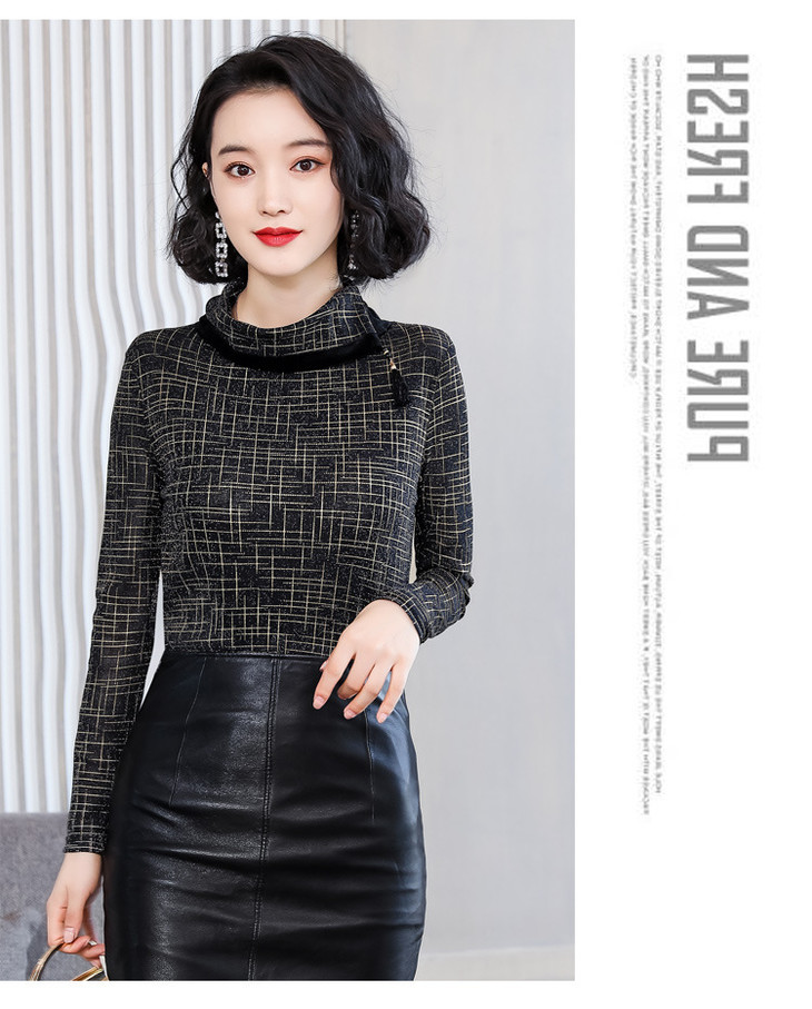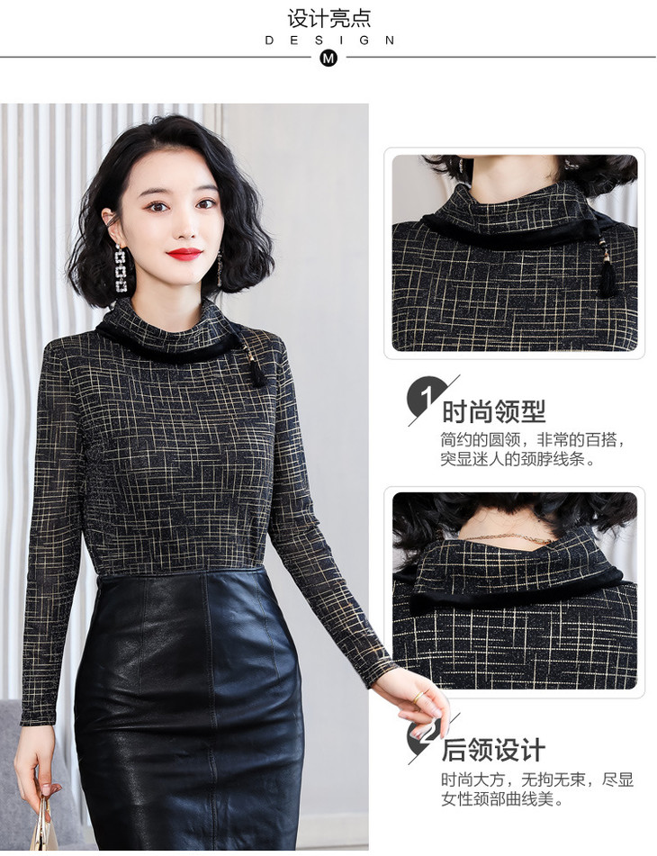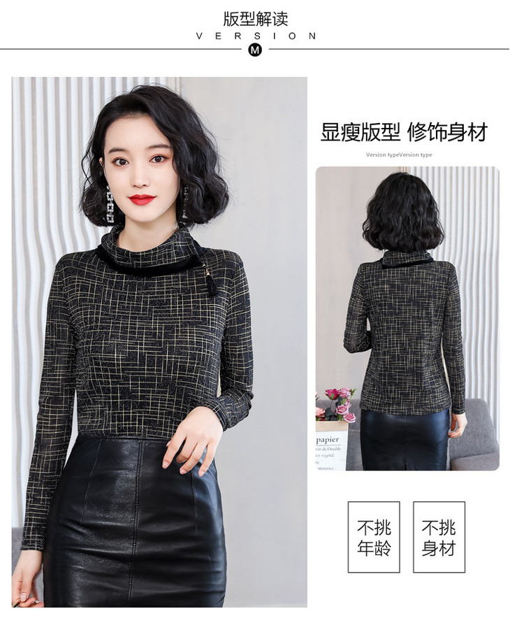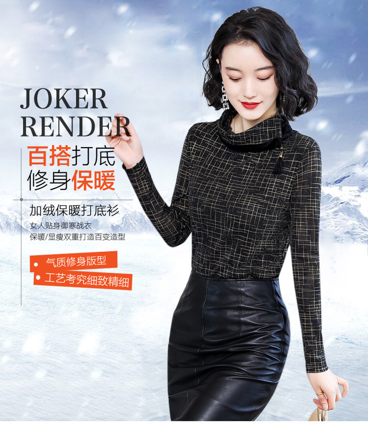 MZ3859加绒加厚打底衫半高领长袖闪光丝内搭上衣
