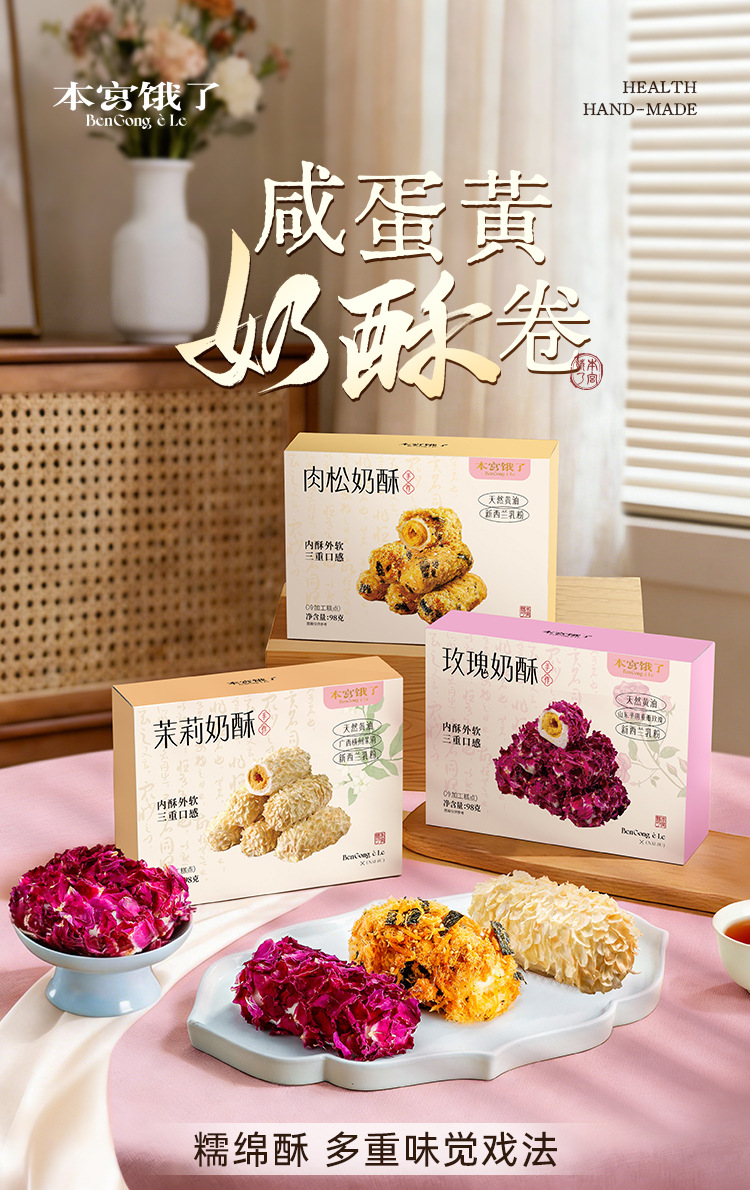 【内酥外软!三重口感】牛轧拉丝奶酥卷咸蛋黄蛋卷雪花酥糕点网红零食。xa