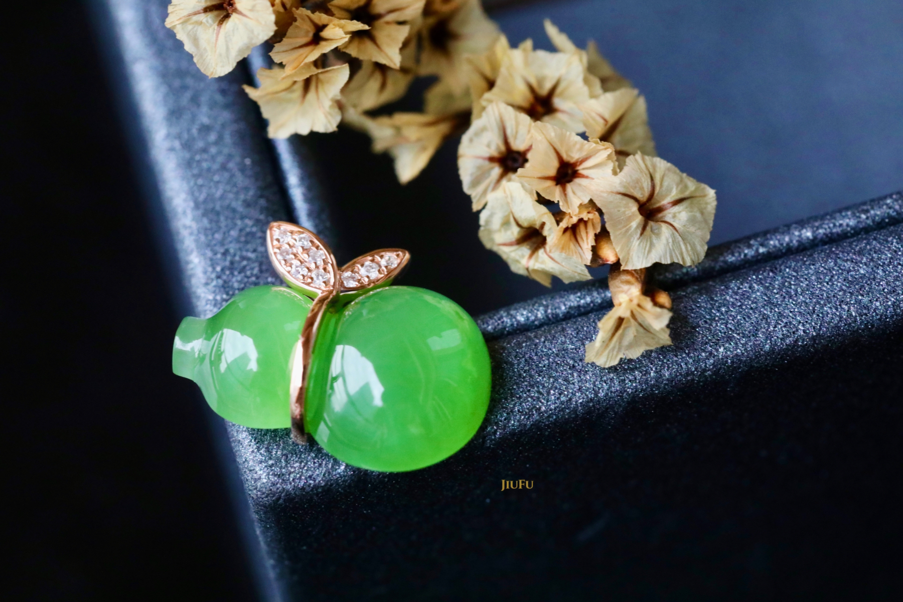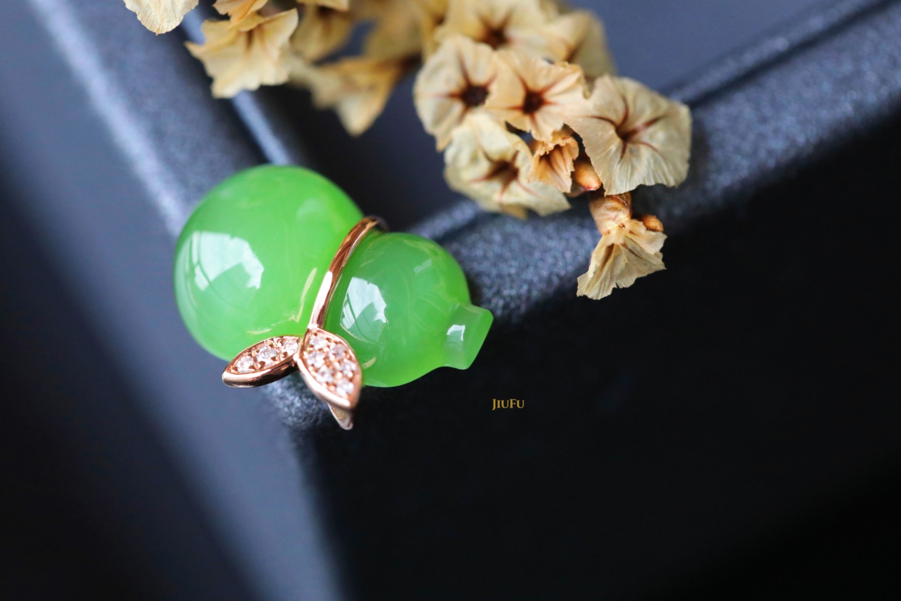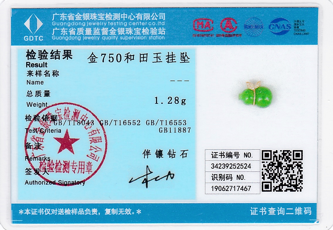 18K玫瑰金和田玉(碧玉)吊坠