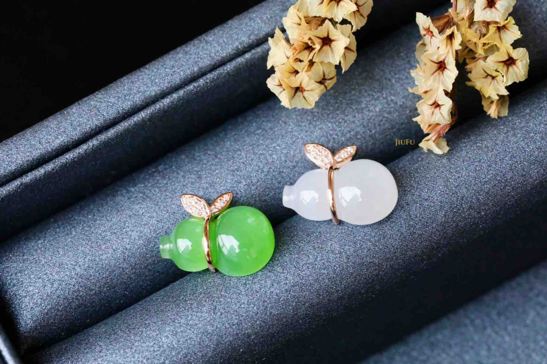 玉石尺寸:单面葫芦9*14mm/菠菜绿
