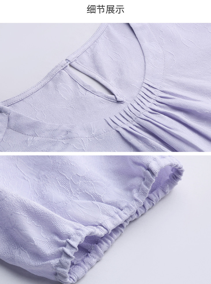 圆领五分袖灯笼袖,薄款纯色桑蚕丝上衣HR-ASEJP3663