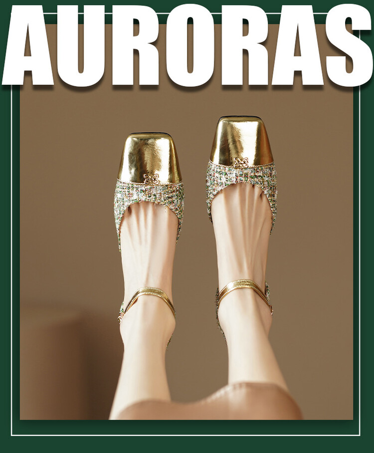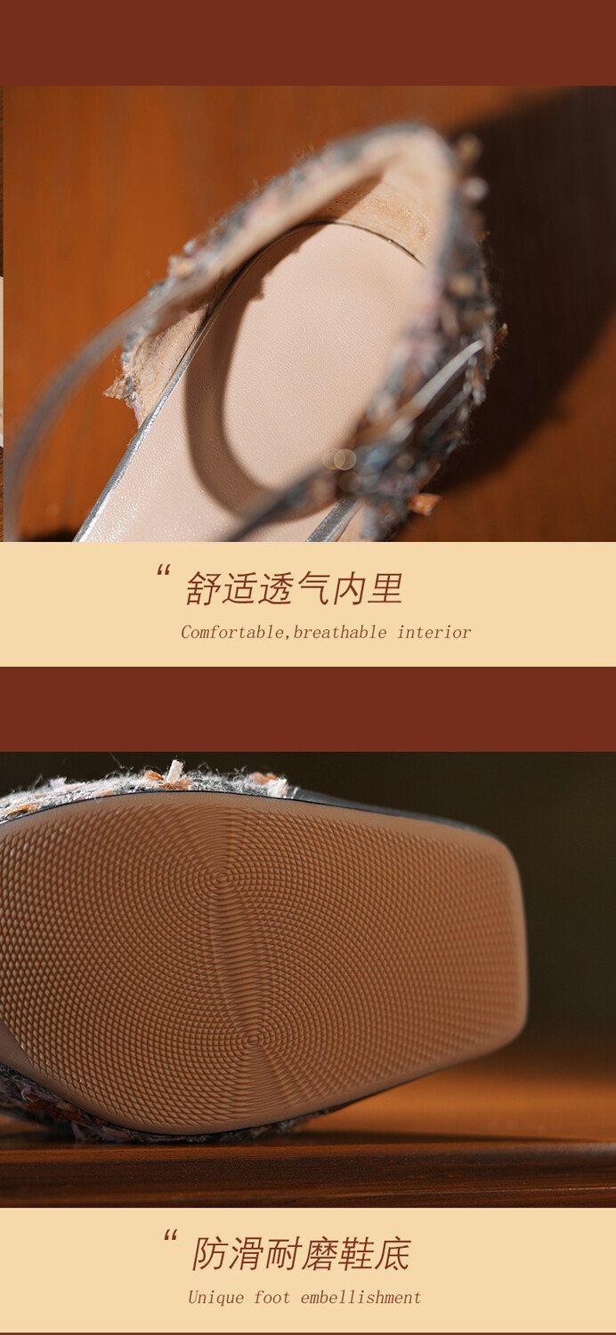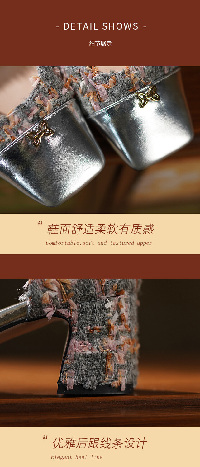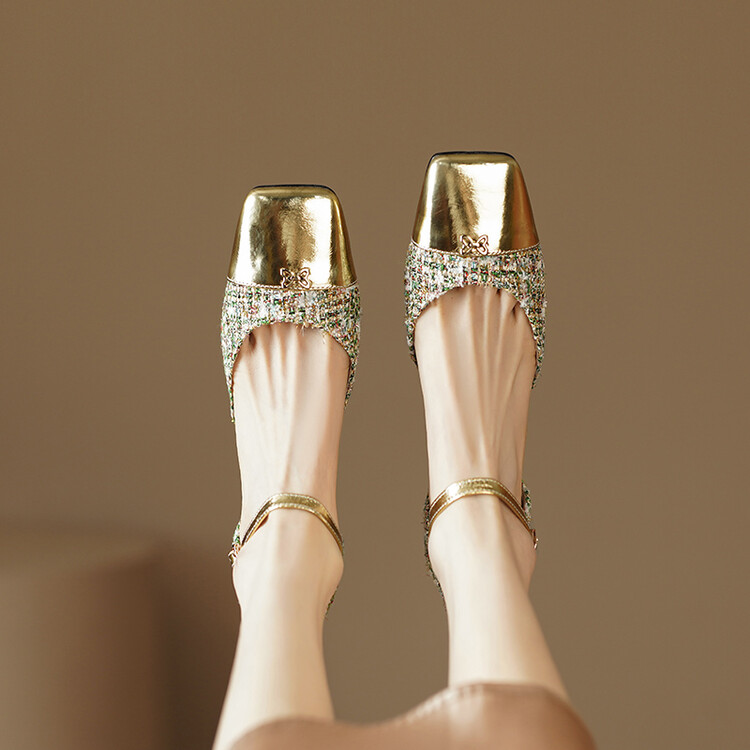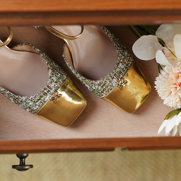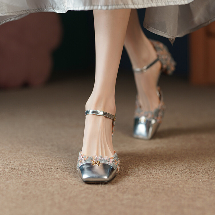 【预售5天】小香风方头粗跟包头凉鞋,法式真皮拼色中跟玛丽珍一字带高跟鞋SLK&Y320