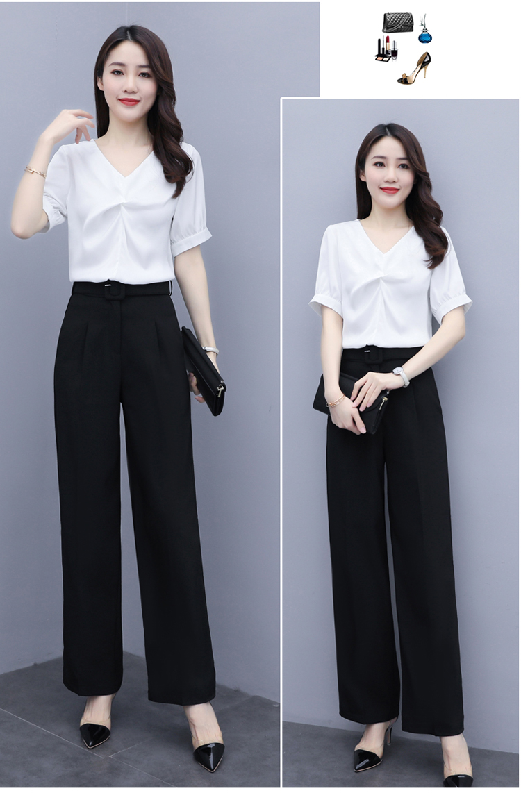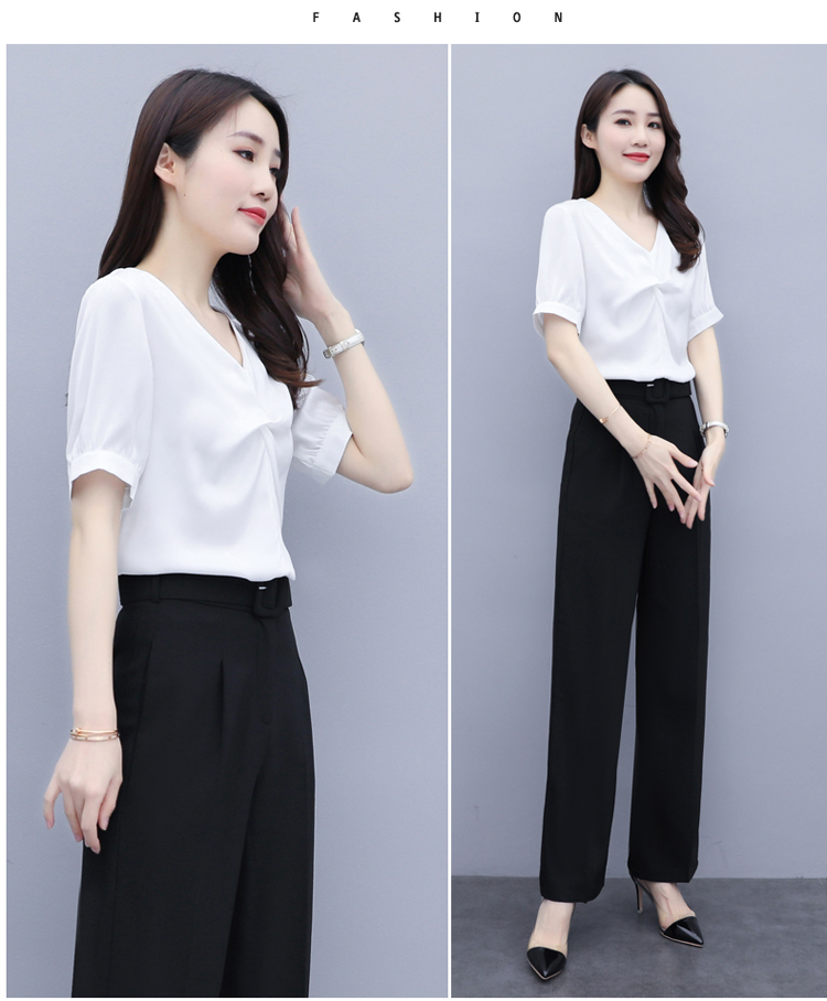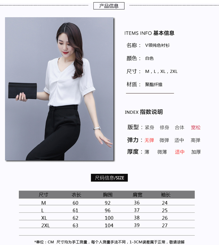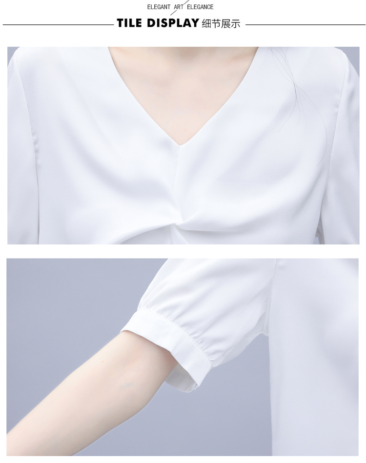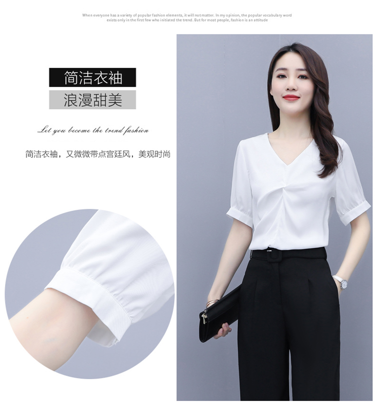 WZNH-XYFS6876夏装新款纯色百搭短袖V领气质白衬衫