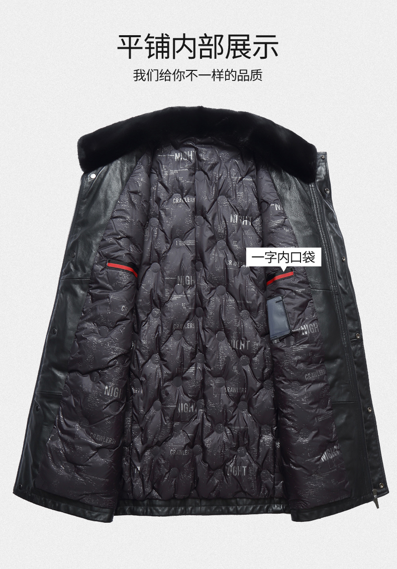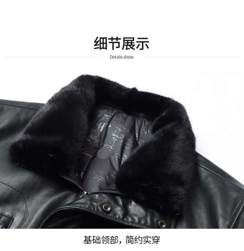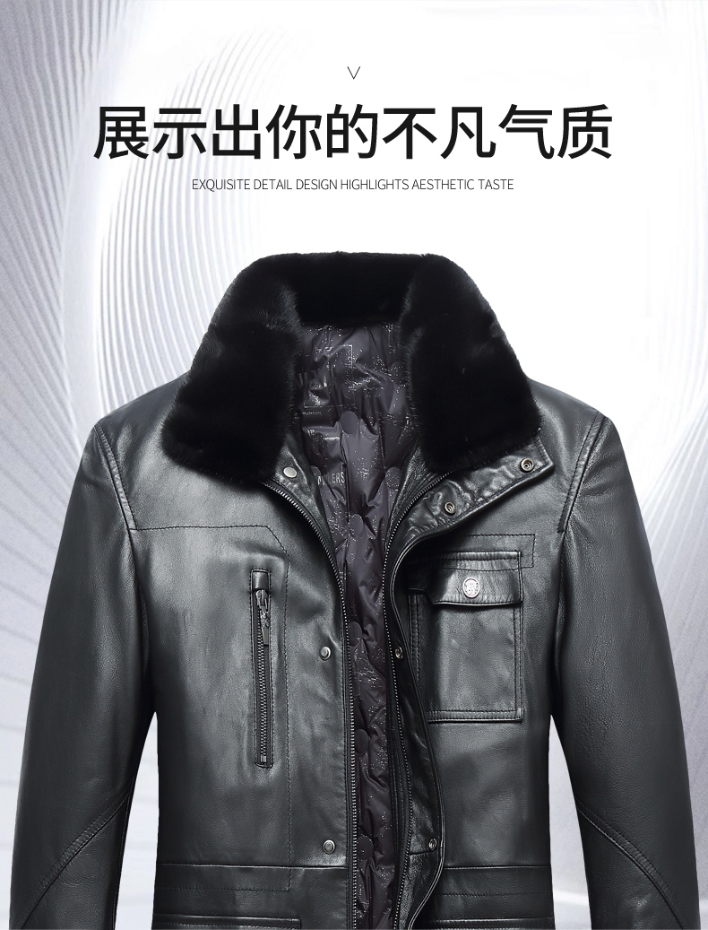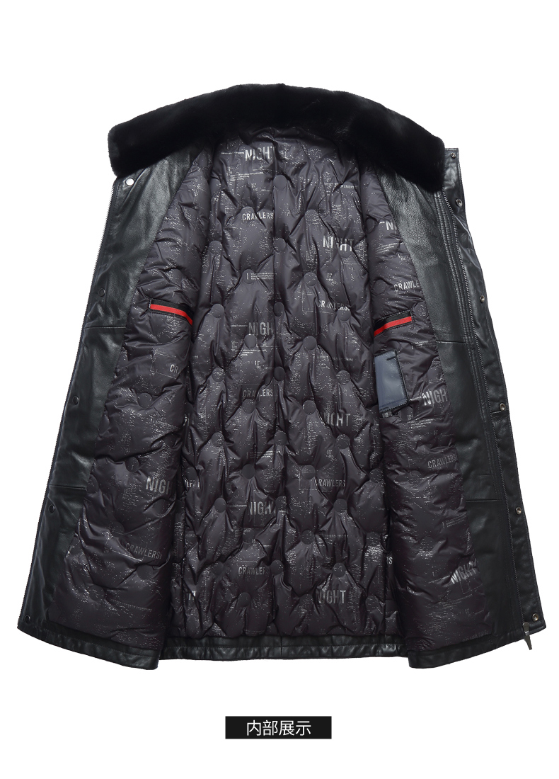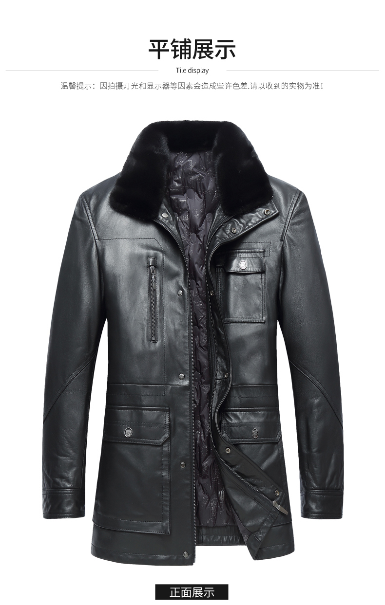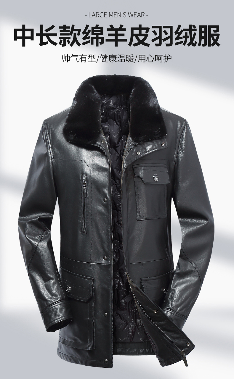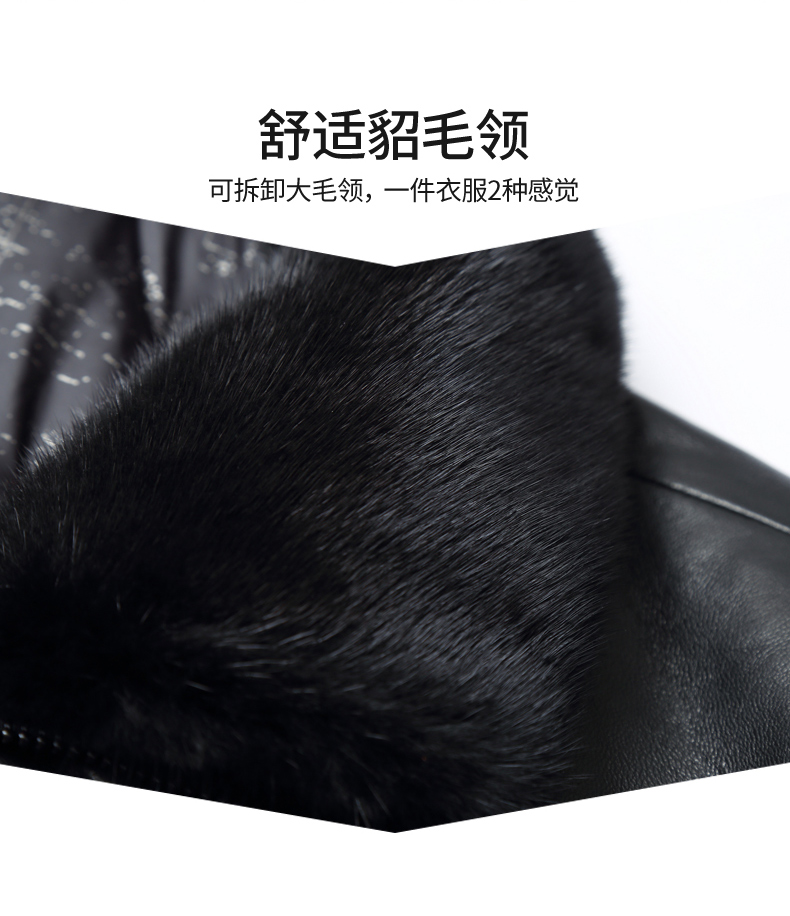 【真皮】大依优型大码中长款貂毛领绵羊皮羽绒服夹克外套休闲简约大号皮夹克真皮皮草加肥加大