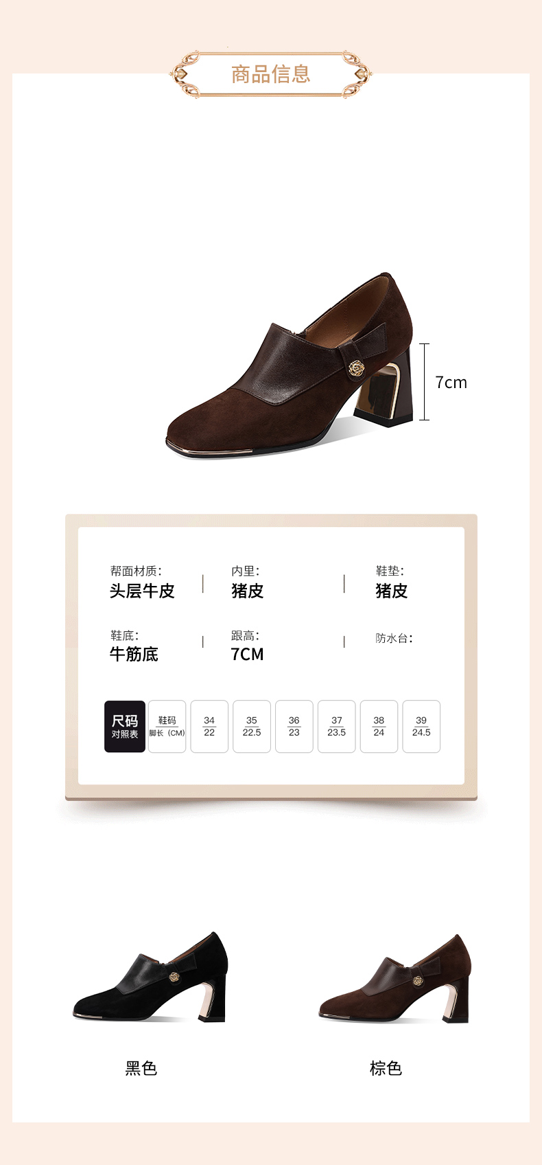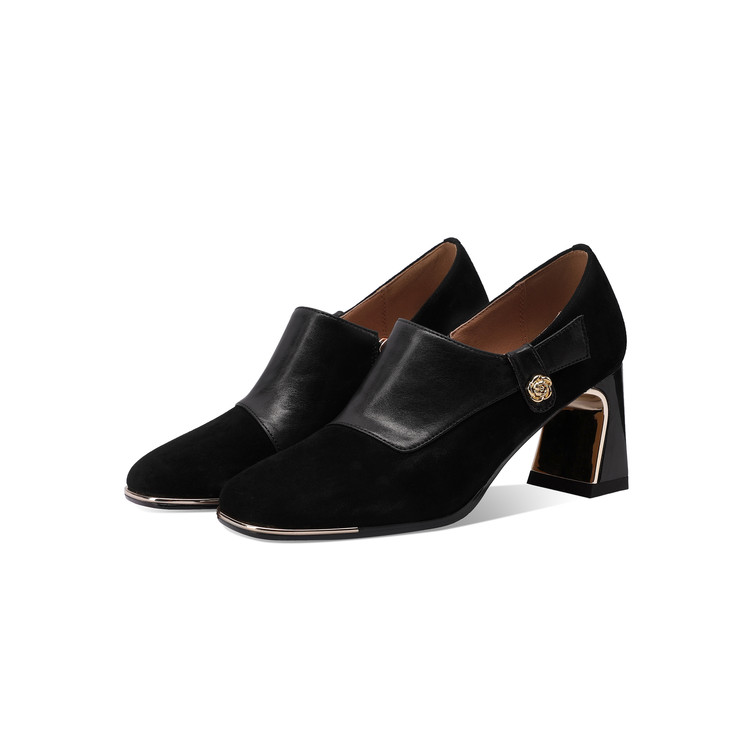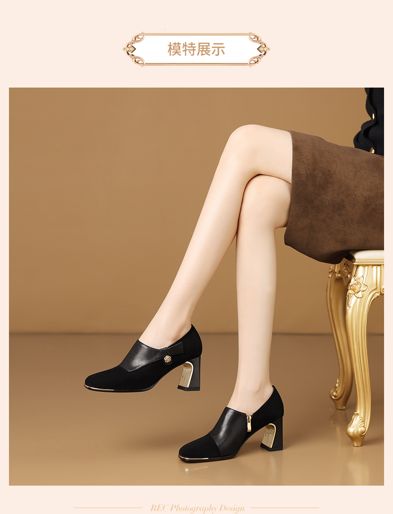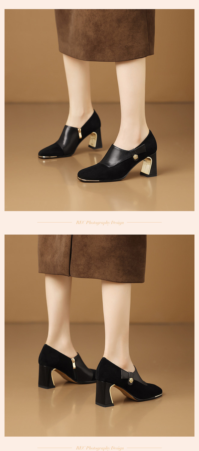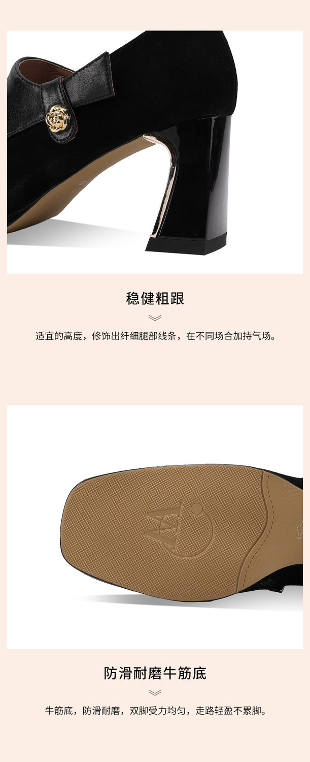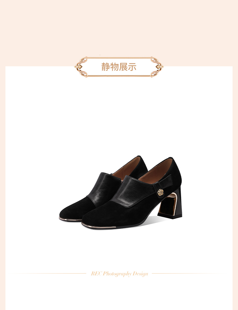 【预售5天】秋季新款百搭舒适粗跟磨砂拼接深口单鞋气质通勤小皮鞋HY&H3720
