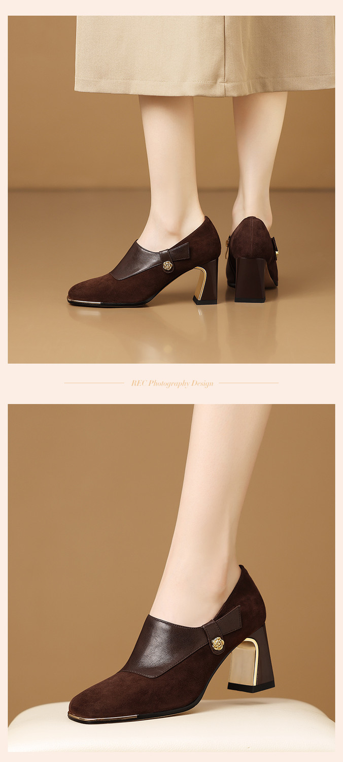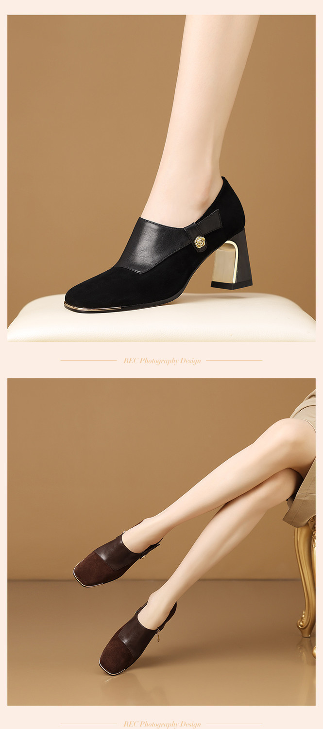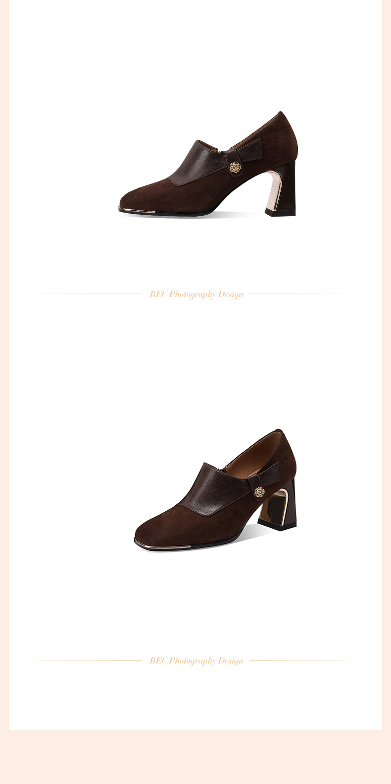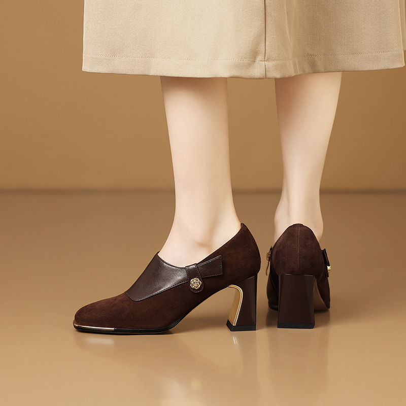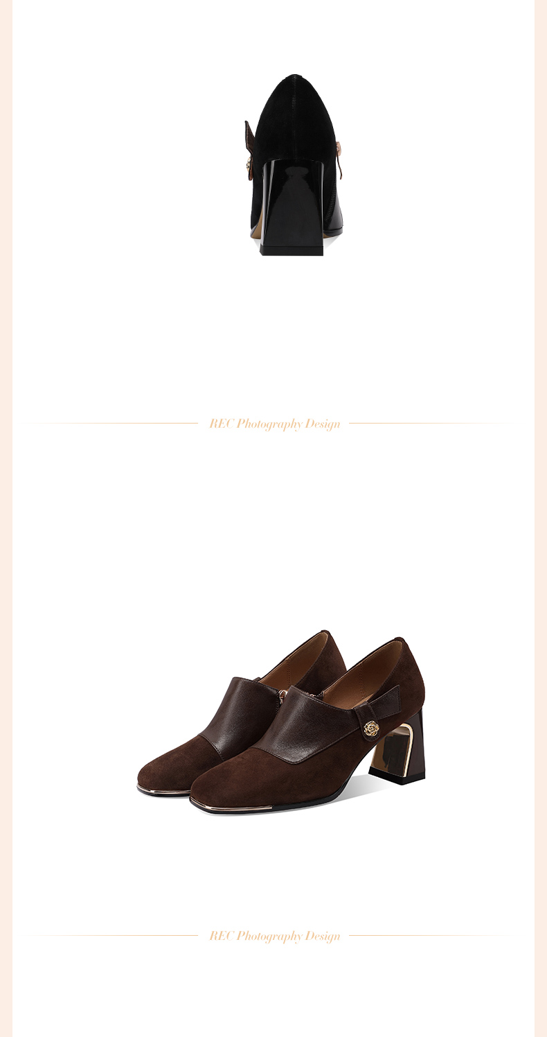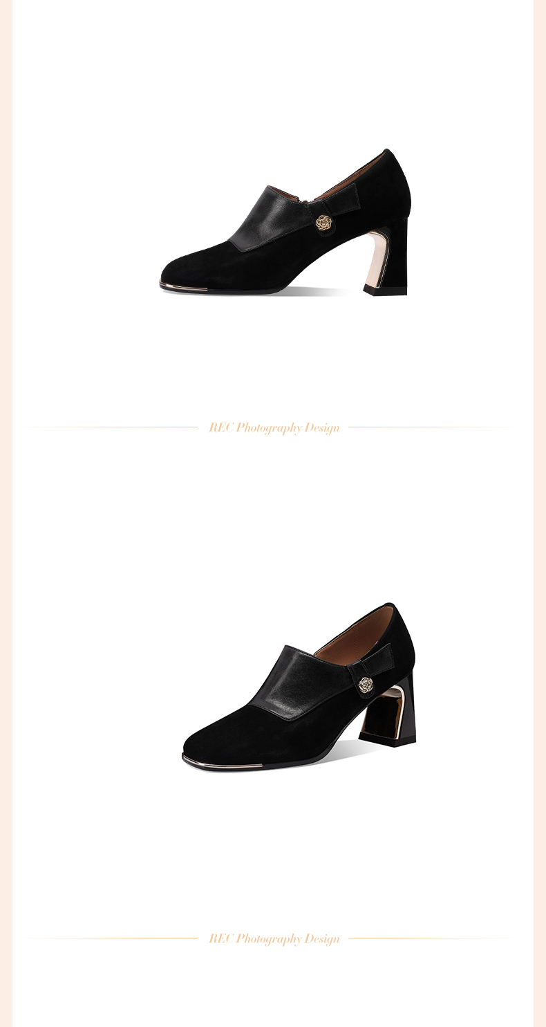 【预售5天】秋季新款百搭舒适粗跟磨砂拼接深口单鞋气质通勤小皮鞋HY&H3720
