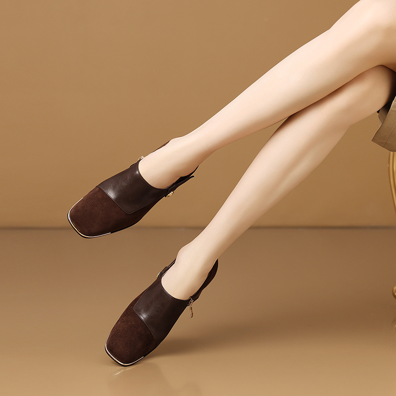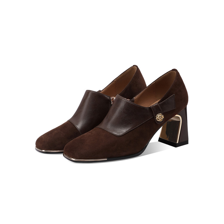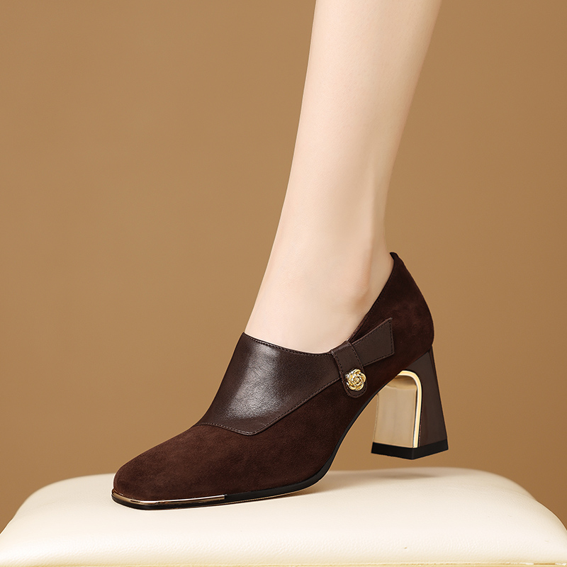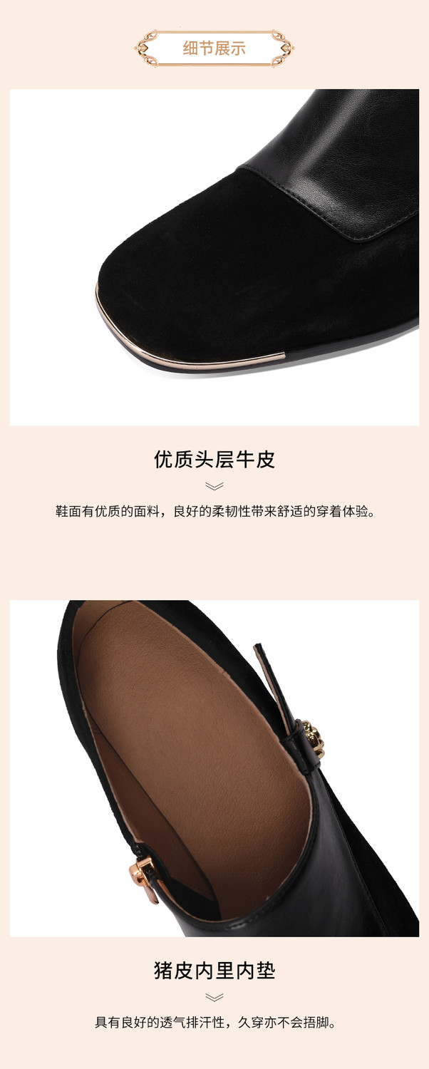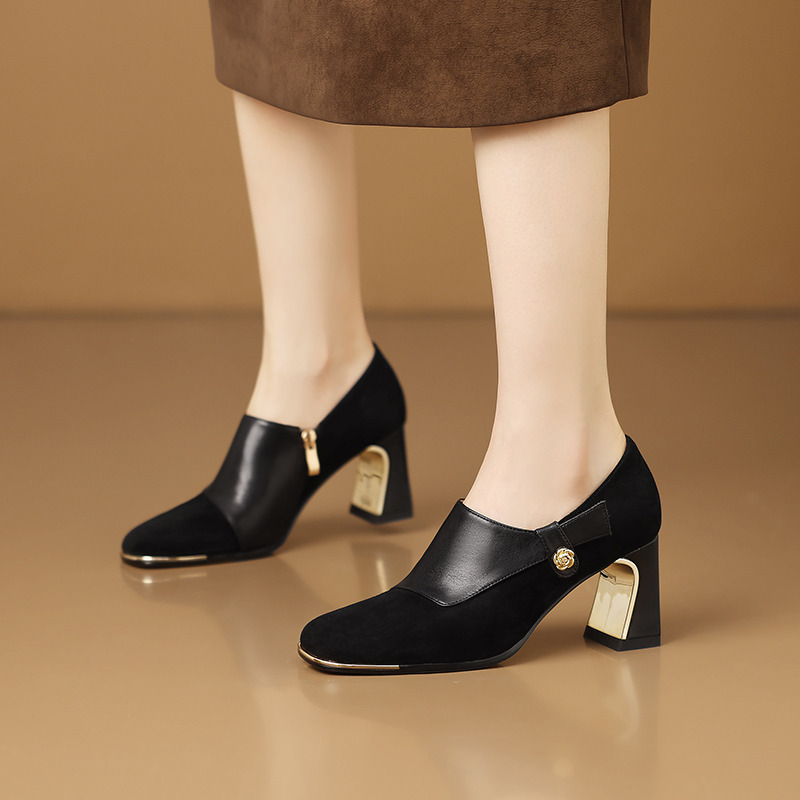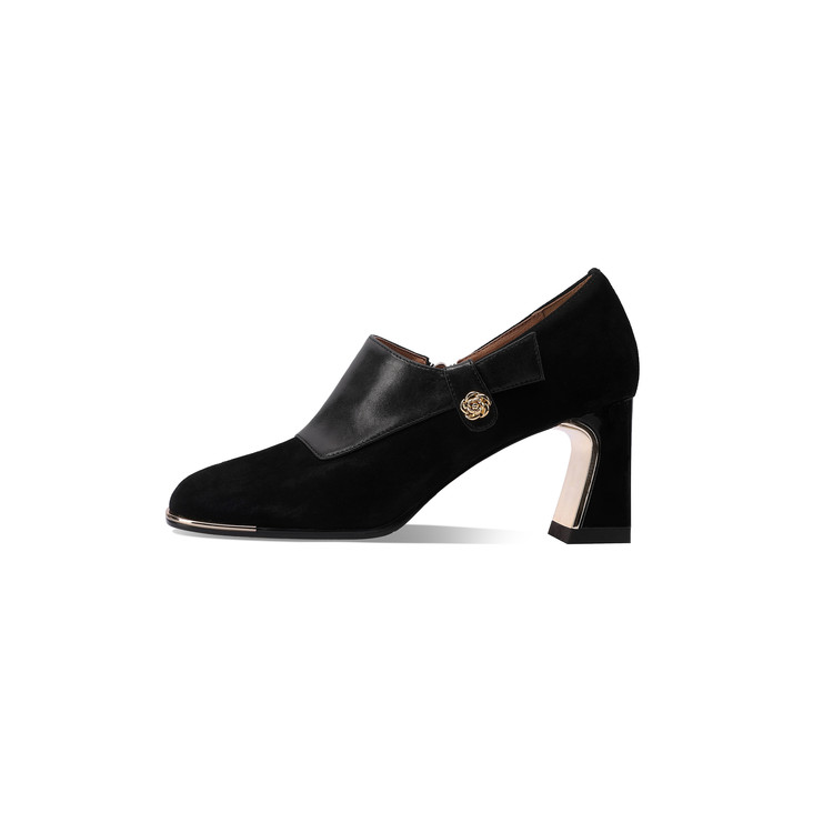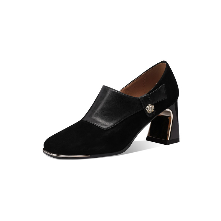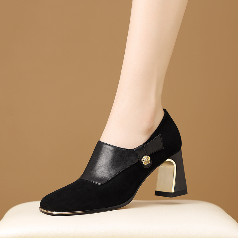【预售5天】秋季新款百搭舒适粗跟磨砂拼接深口单鞋气质通勤小皮鞋HY&H3720