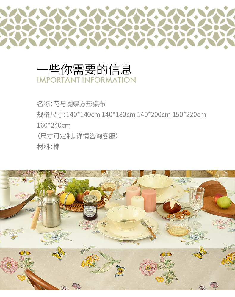 蝴蝶与兰花简约小清新餐厅桌布