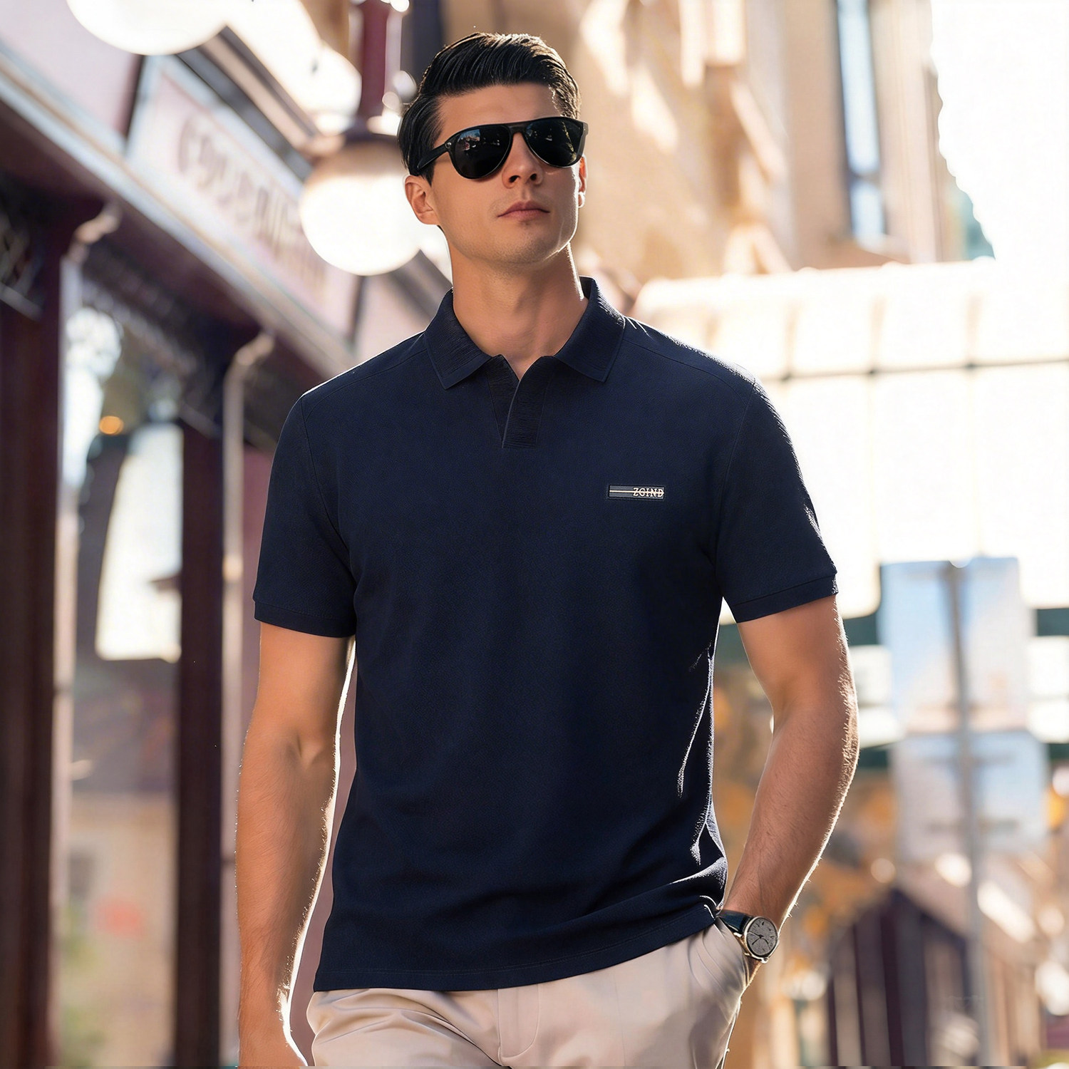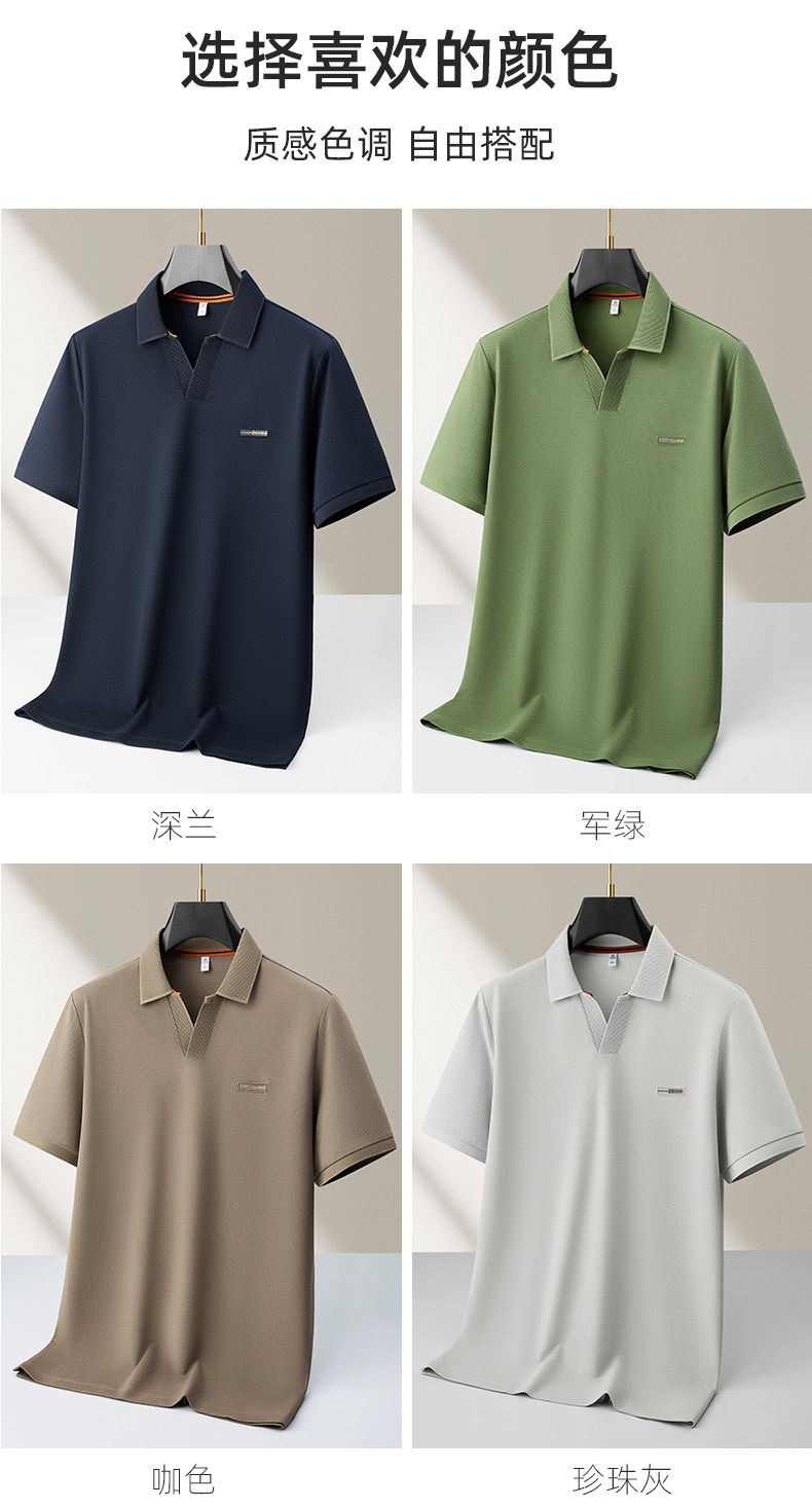 【DKP】大依优型大码男装夏季小V领翻领短袖POLO衫商务休闲棉质上衣T恤