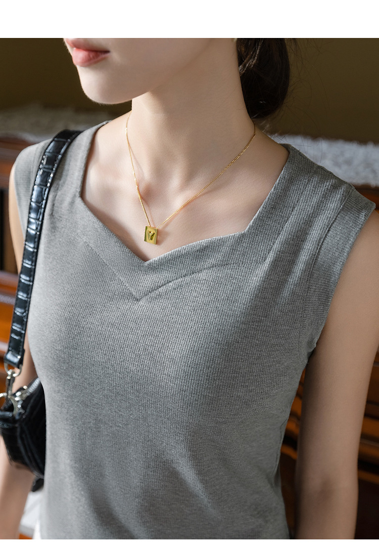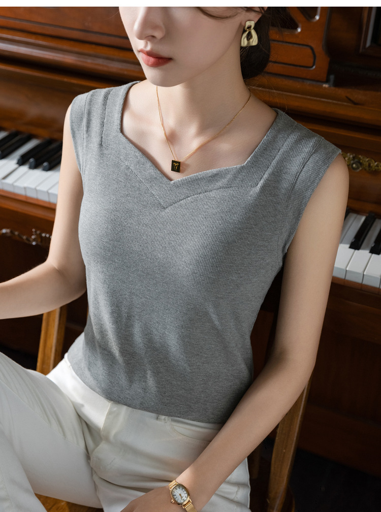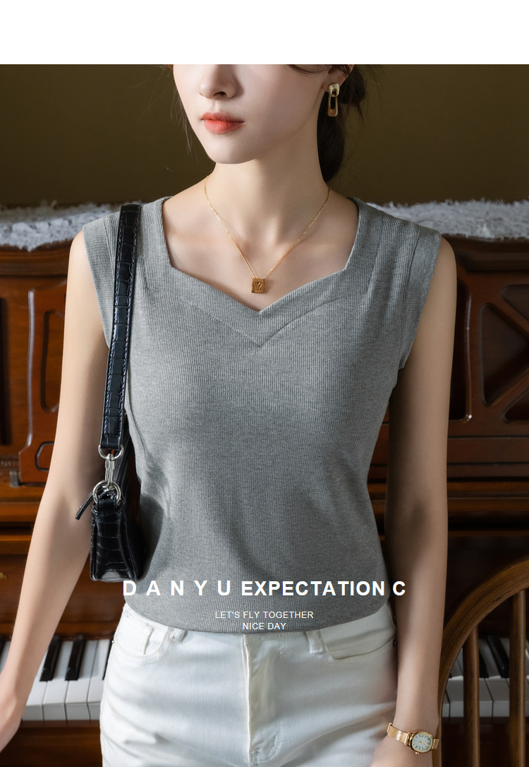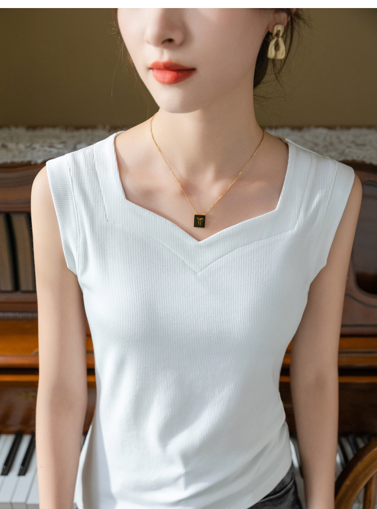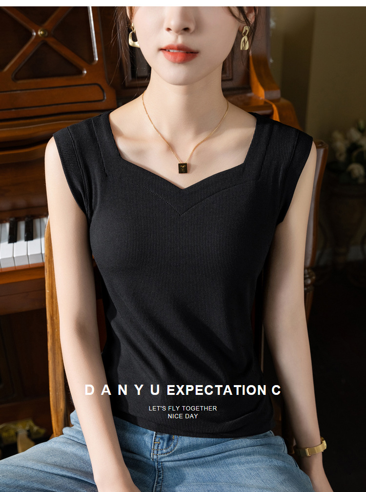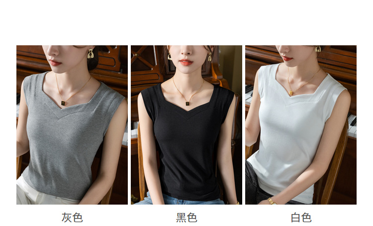 螺纹无袖t恤女夏新款,女装复领纯色背心气质收腰弹力上衣SG-X3X0413-LXL