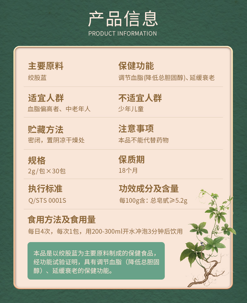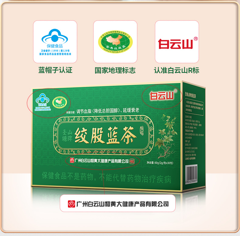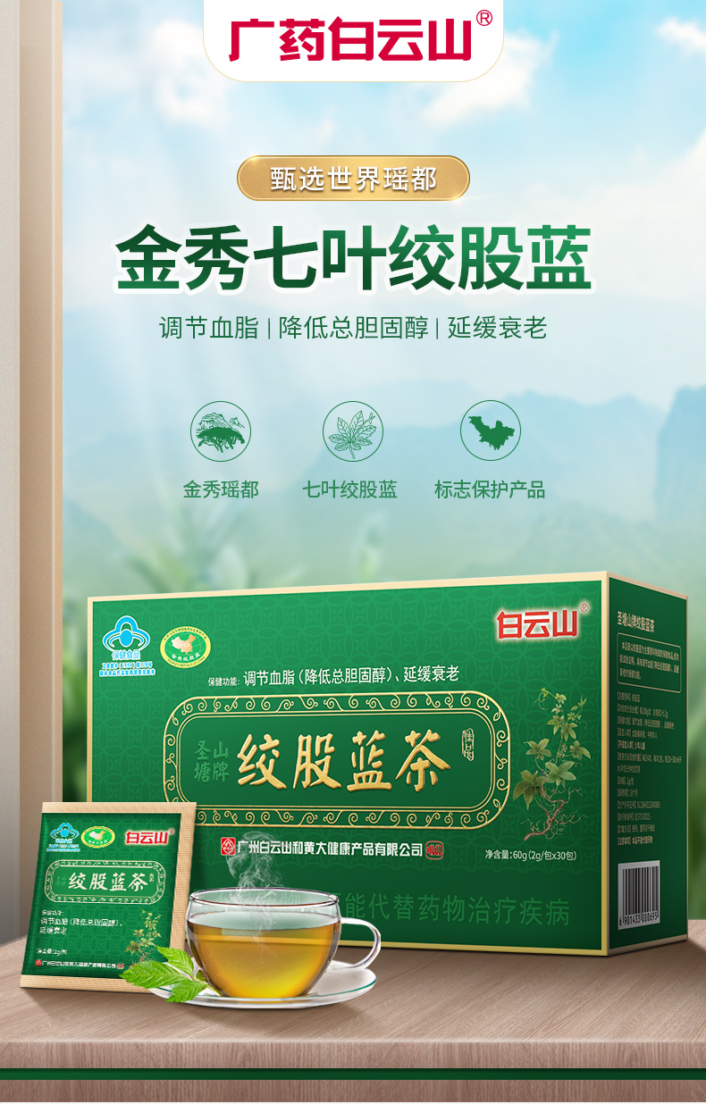 【买2送1】广药白云山绞股蓝茶 30包/盒 蓝帽认证 辅助调节血脂(降低总胆固醇) 延缓衰老