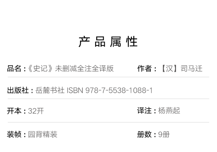 看中它未删减的、内容齐全外,有60年研究《史记》的北师大历史学教授杨燕起助威,加以岳麓书社的加持,权威性不必多说。