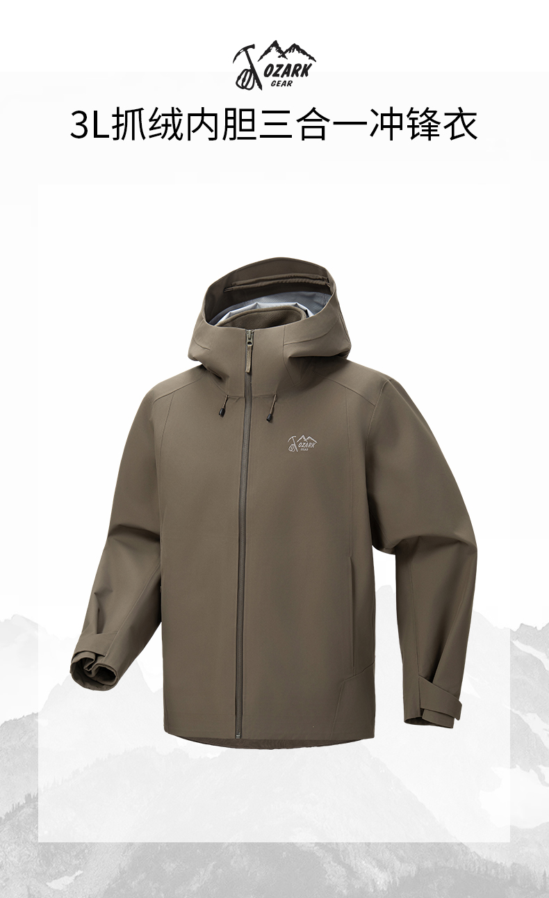 OZARK奥索卡男款3L抓绒内胆三合一冲锋衣保暖百搭25年新款OAGMT530202