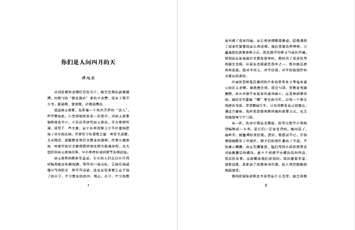 谭旭东,湖南安仁人,著名儿童文学作家,评论家,现就职于上海大学,著有《一颗甜甜的巧克力》等80多本儿童文学作品集和10多部文学理论著作,荣获冰心儿童文学新作奖、冰心图书奖、中国童书金奖、鲁迅文学奖等10多个奖项。庄丽如,笔名追小忆,广东潮州人,东莞市东华小学语文老师,出版诗集《梅花爱》。